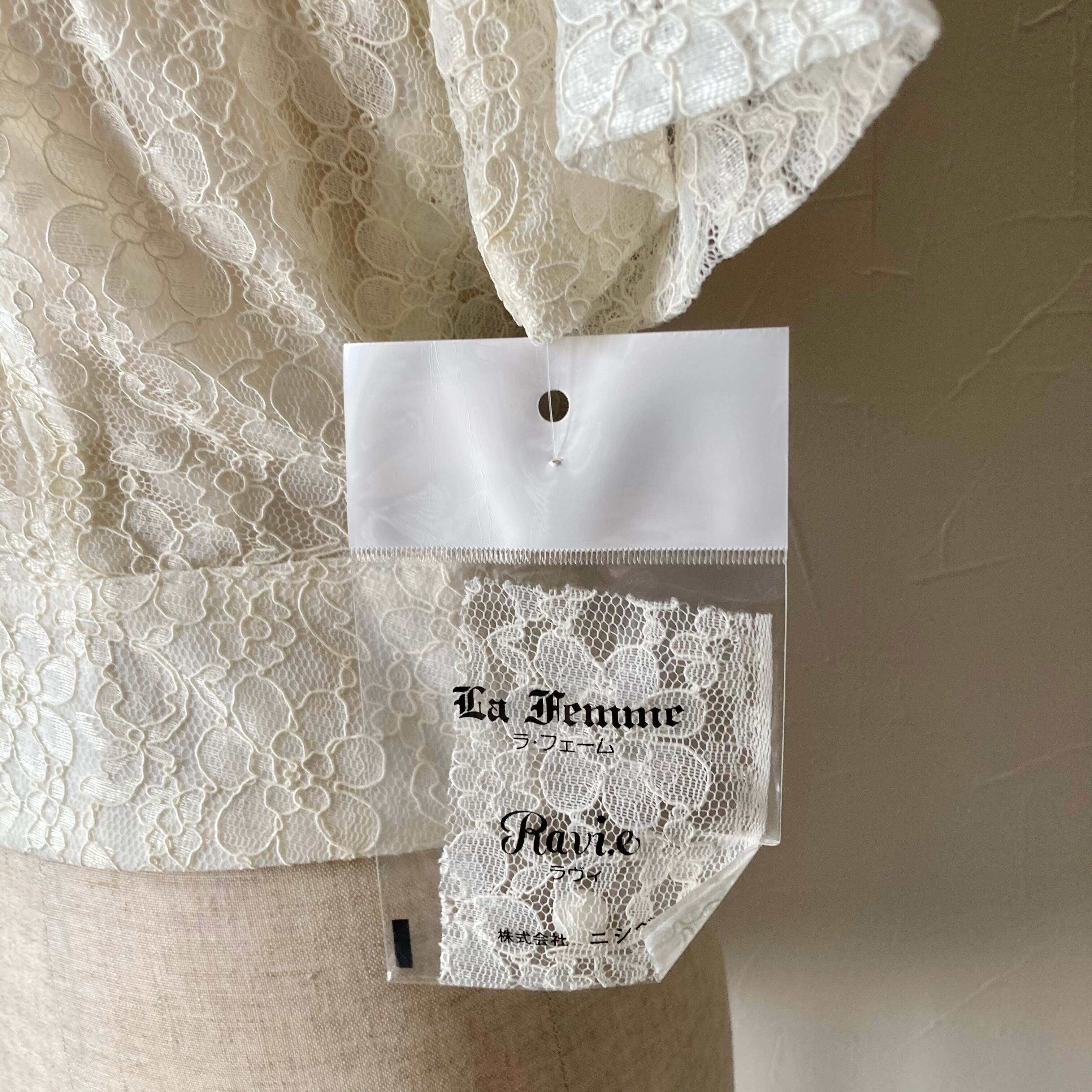 ◯未使用品◯ホワイト花レーストップス 昭和レトロ 古着 used