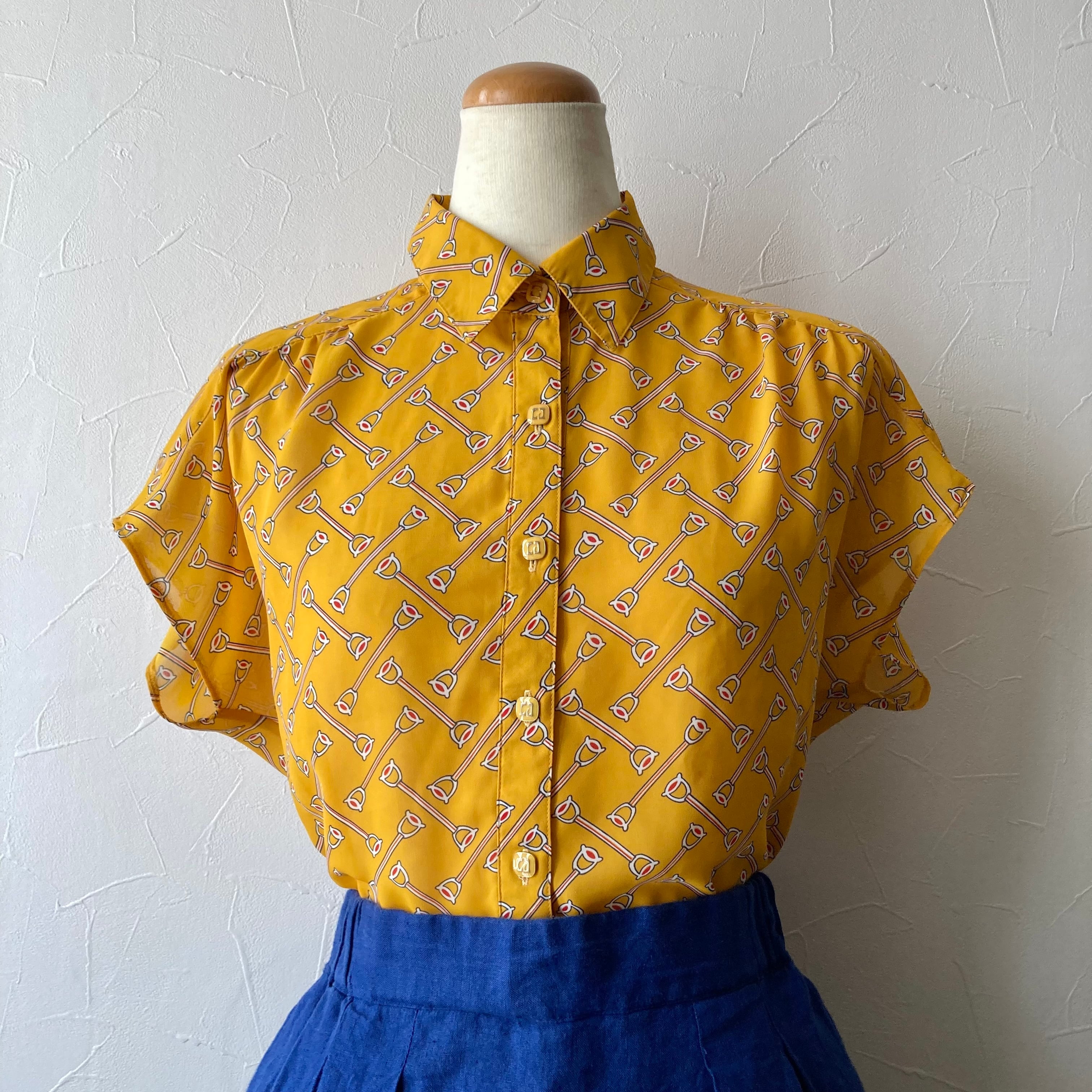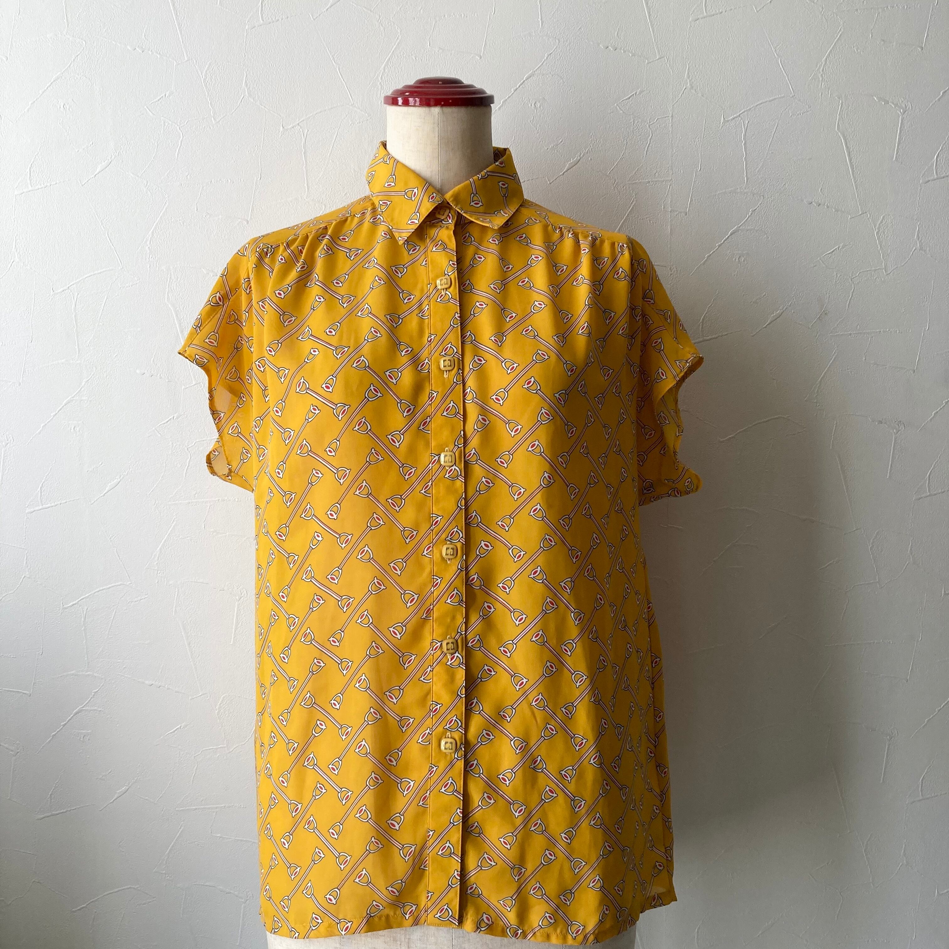 イエローフレンチスリーブブラウス 昭和レトロ 古着 used