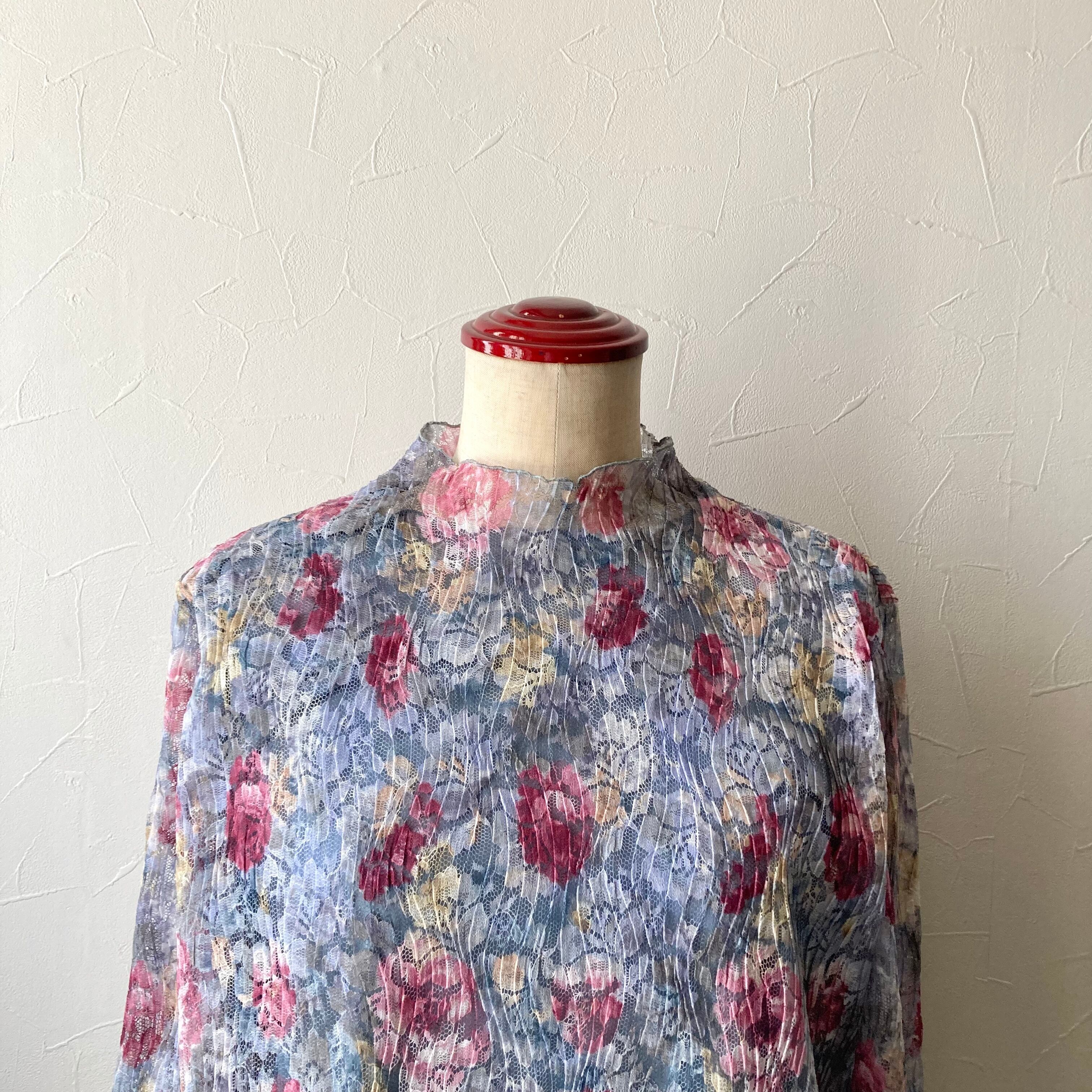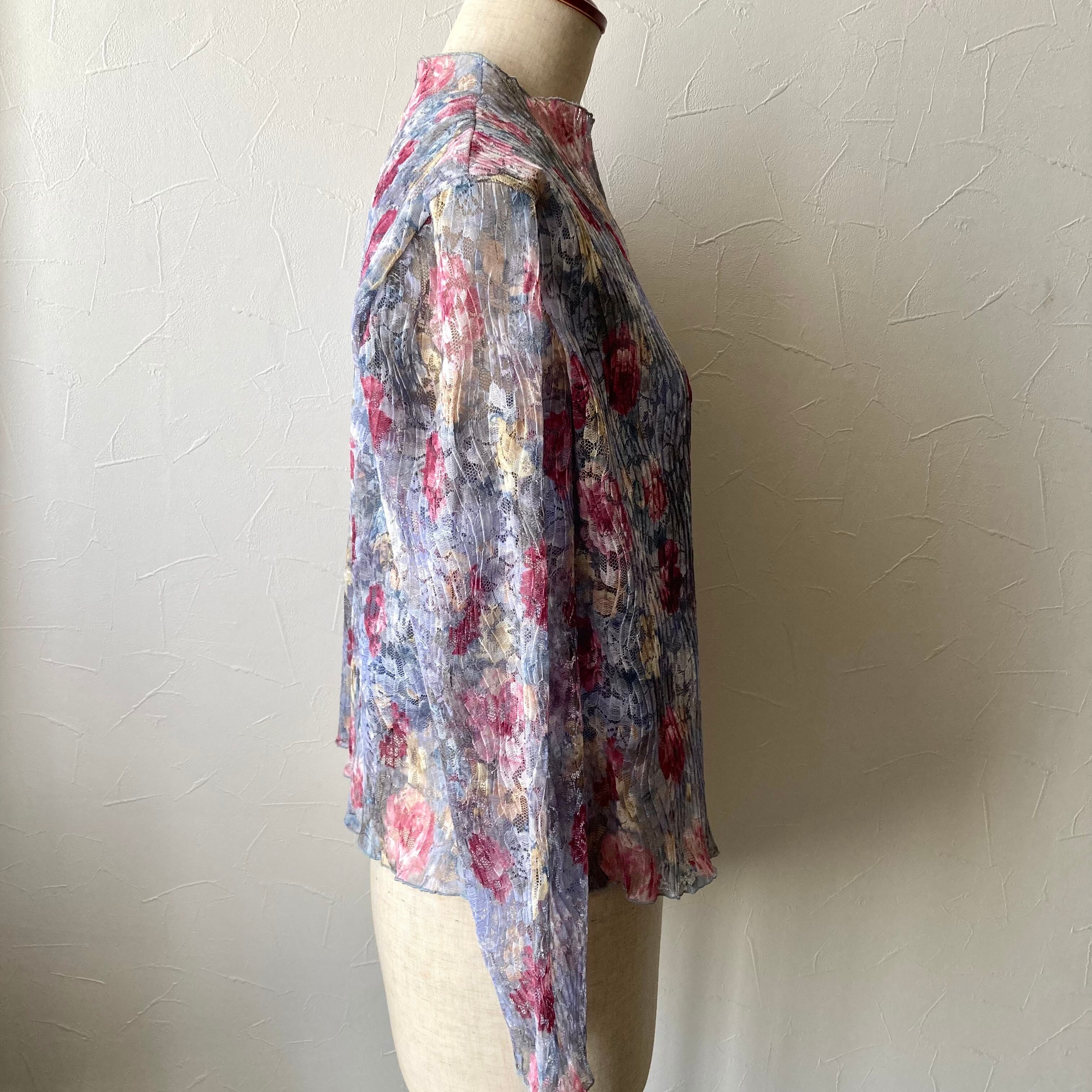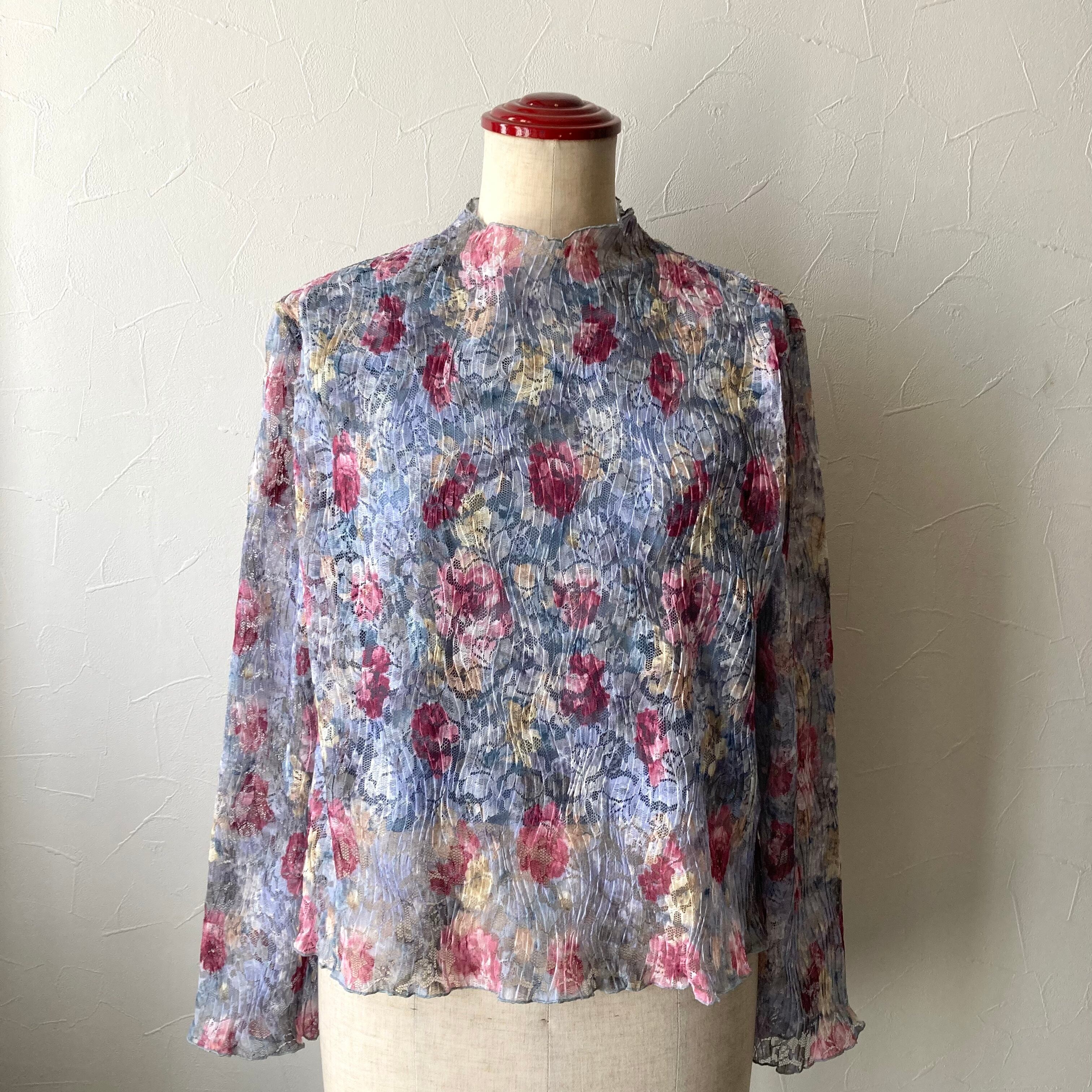 淡い花柄シアートップス 昭和レトロ 古着 used