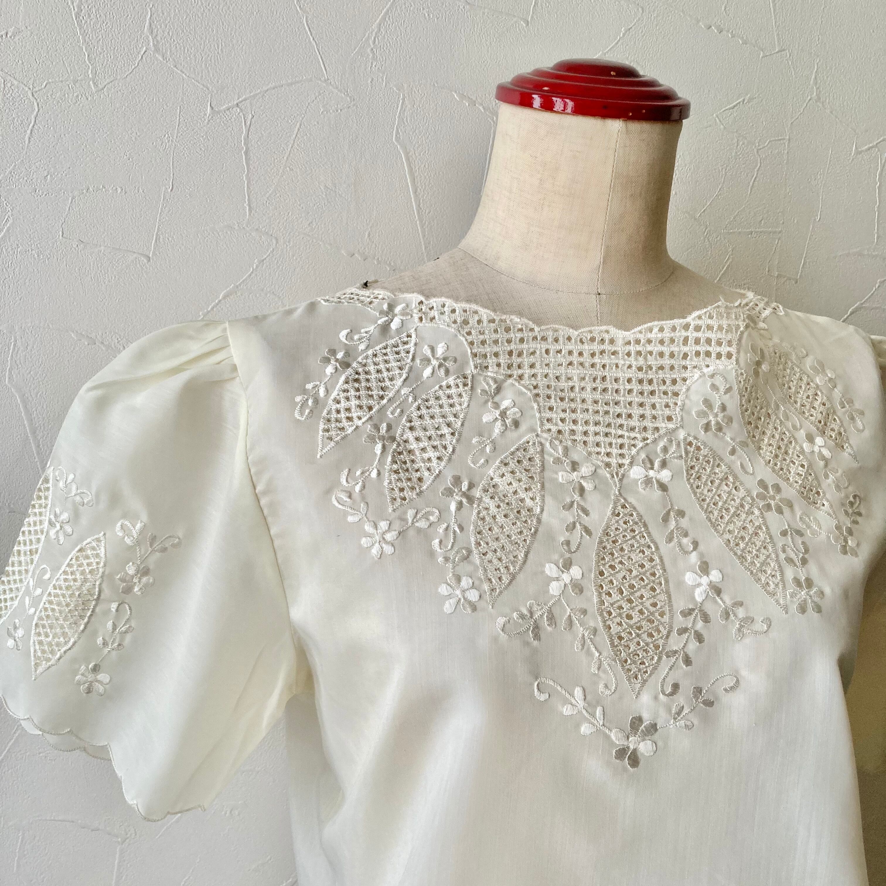 カットワークと花刺繍ブラウス 昭和レトロ 古着 used vintage