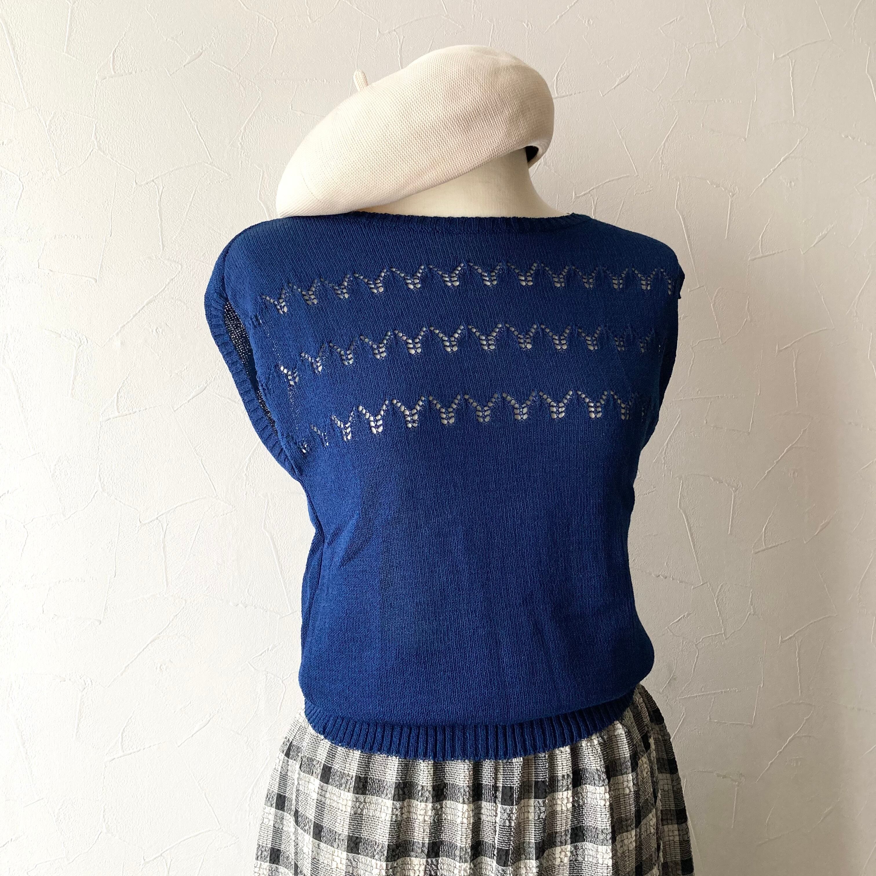 ネイビーニットトップス 昭和レトロ 古着 used vintage