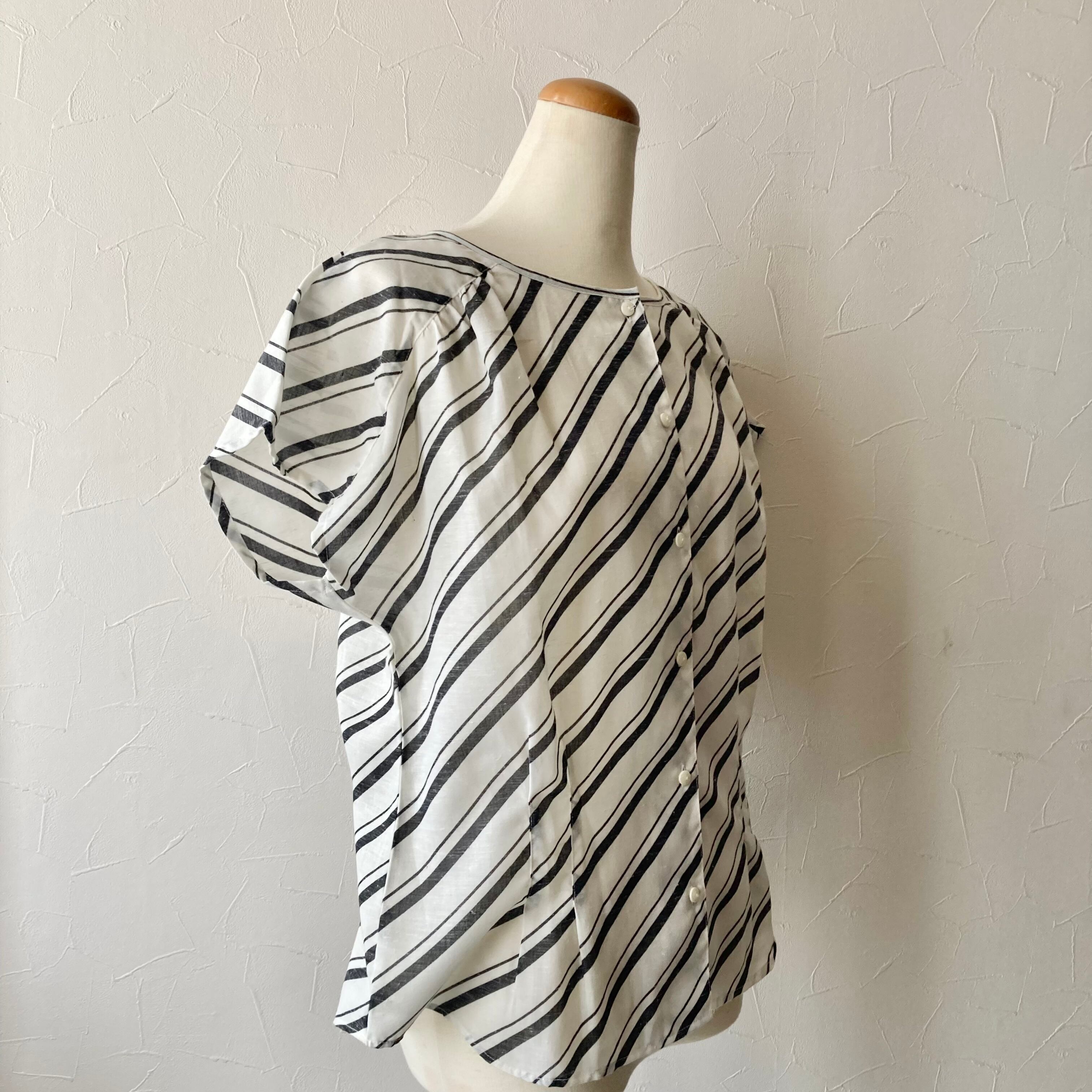 ななめストライプブラウス 昭和レトロ 古着 used