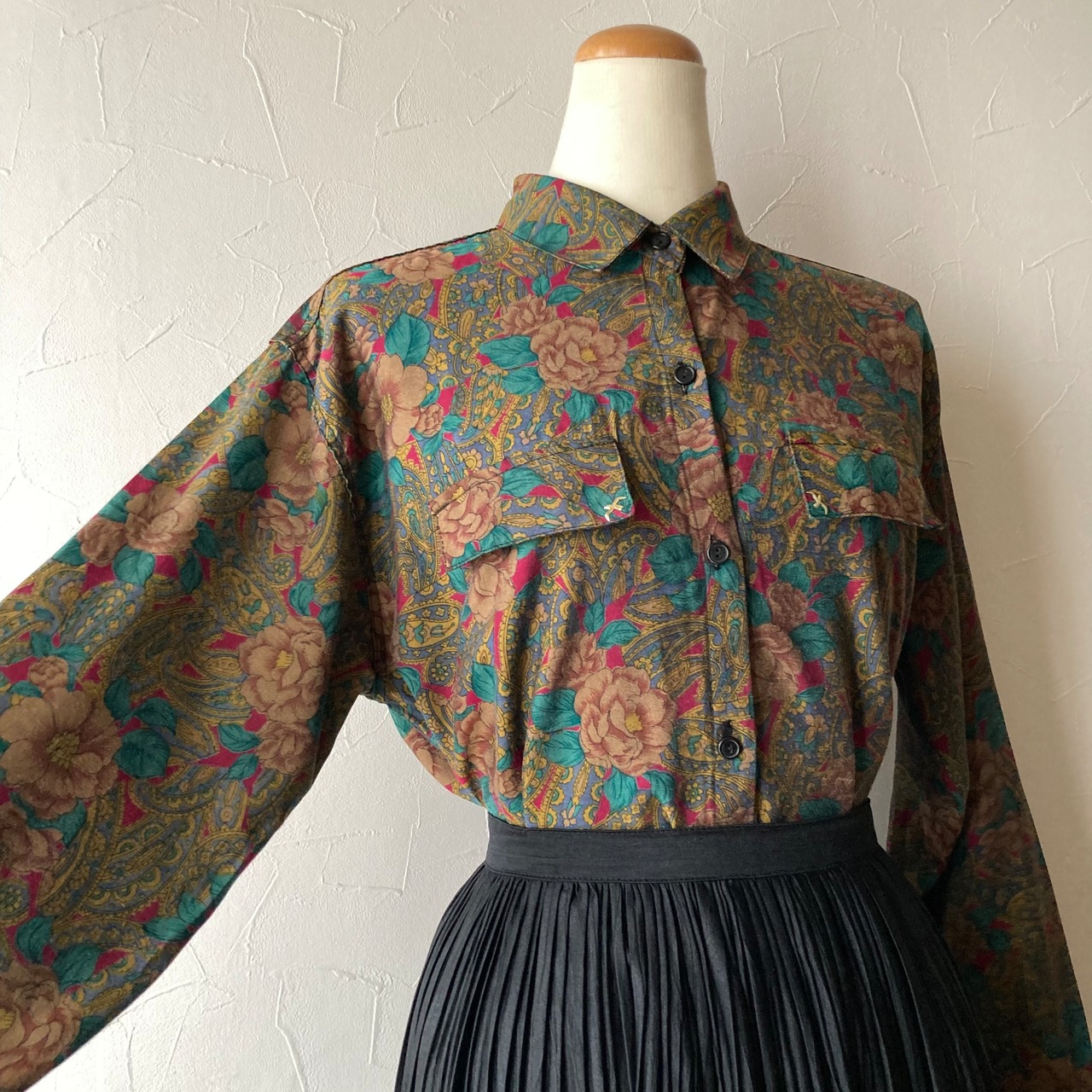 花とペイズリーブラウス 昭和レトロ 古着 used vintage