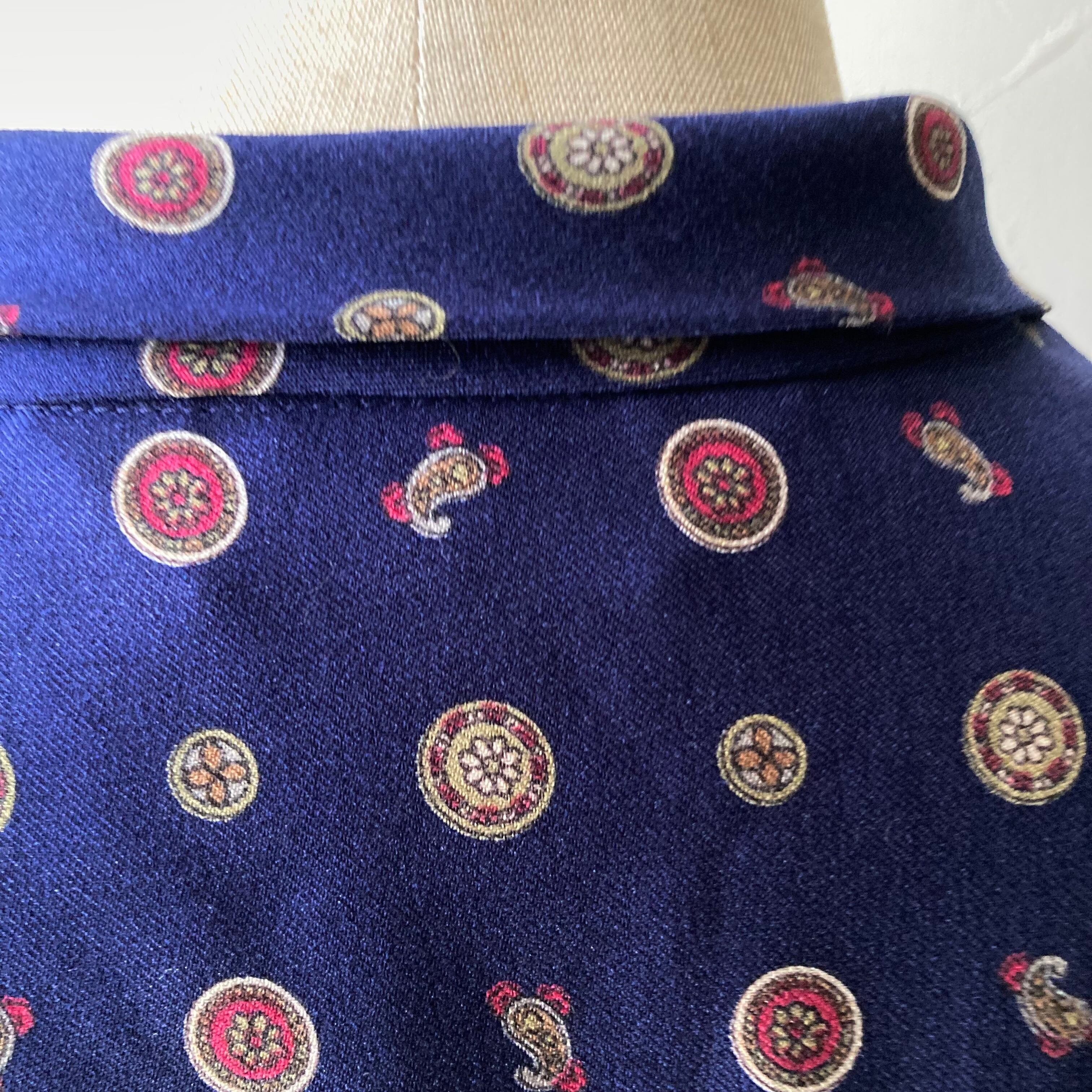 ネイビーリボン柄ブラウス 昭和レトロ 古着 used