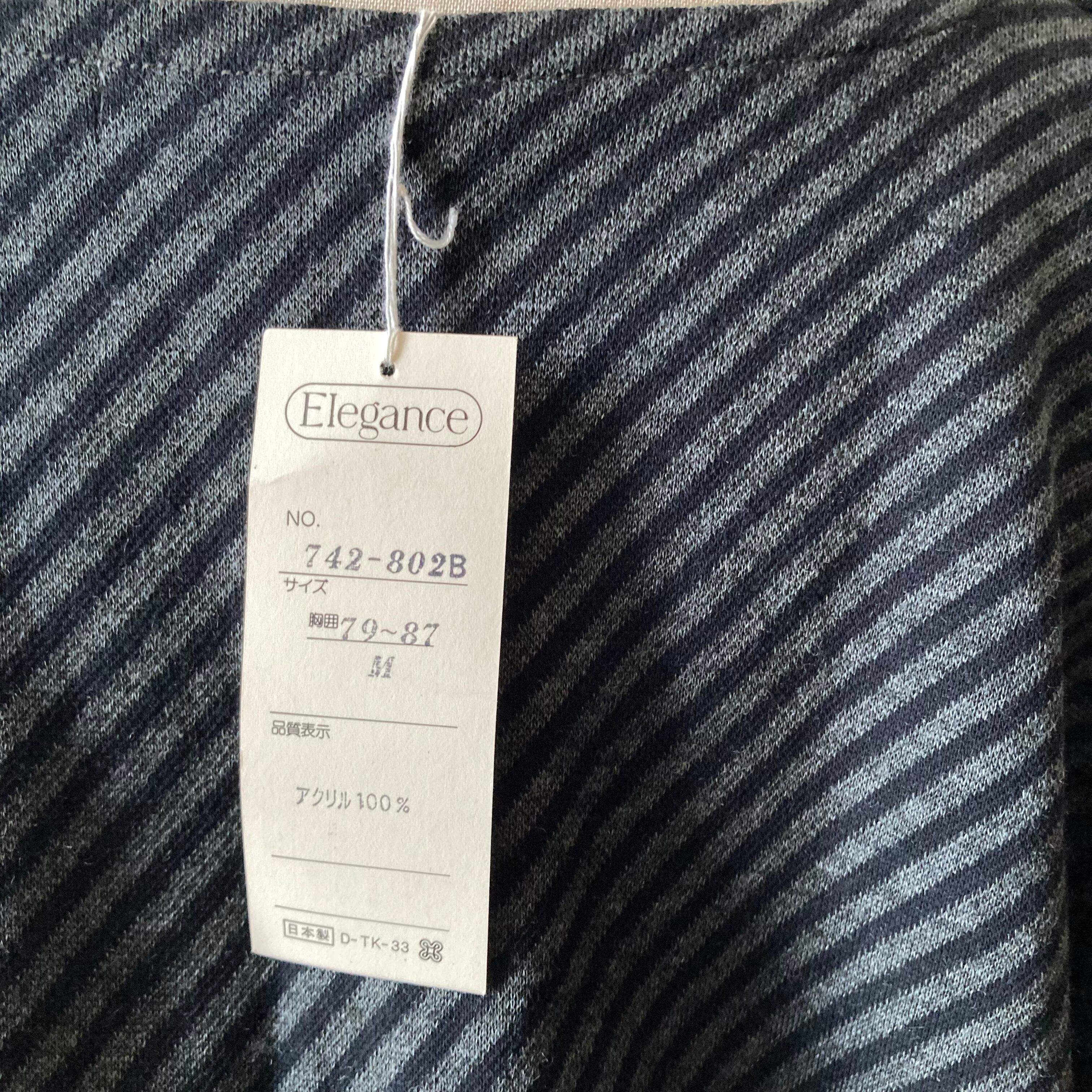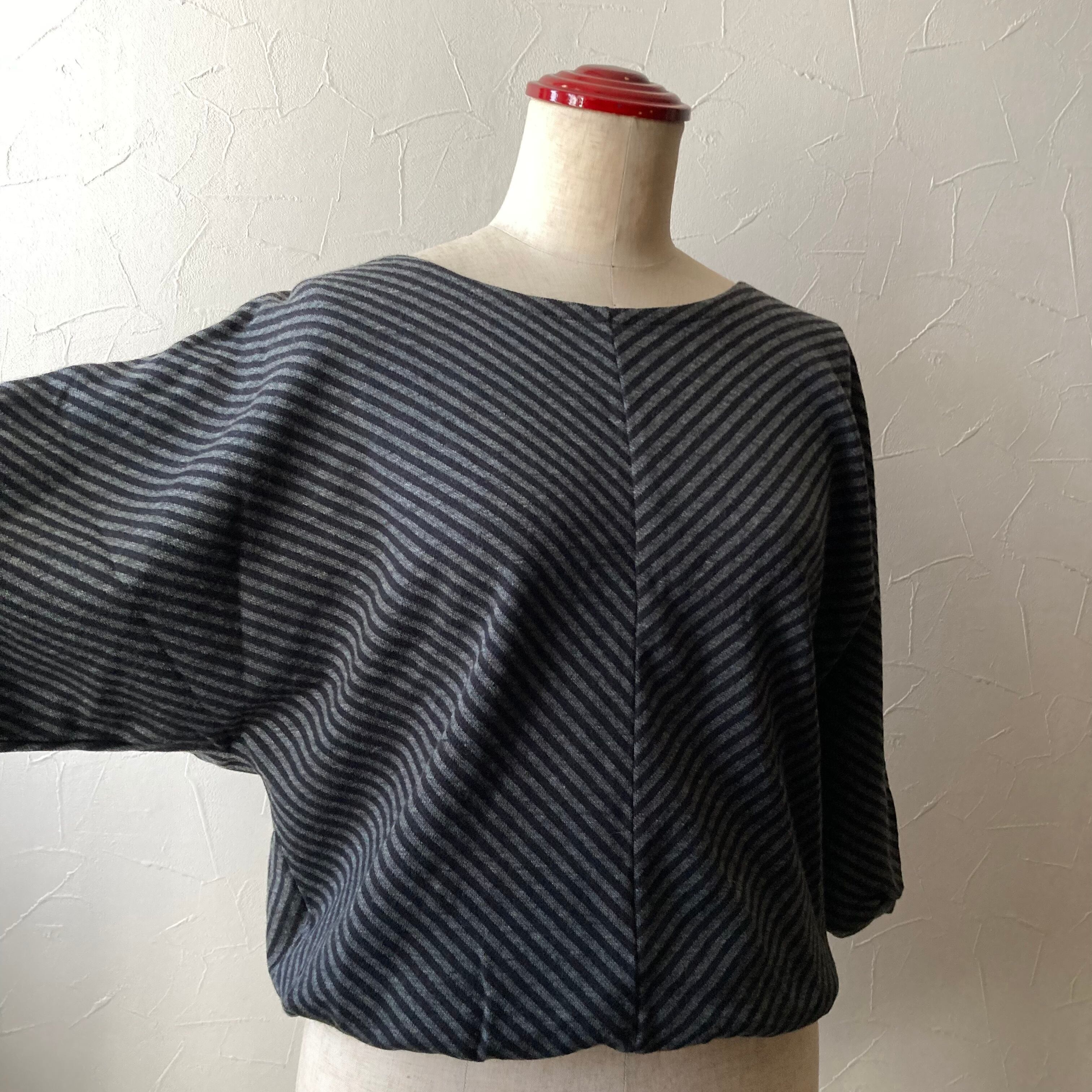 黒とグレーのVの古着らしいデザインがステキなデッドストックの五部袖カットソーです。ドルマンスリーブも可愛いです。これからの時期に丁度いい素材で、カジュアルにもオシャレにも着ていただけます。