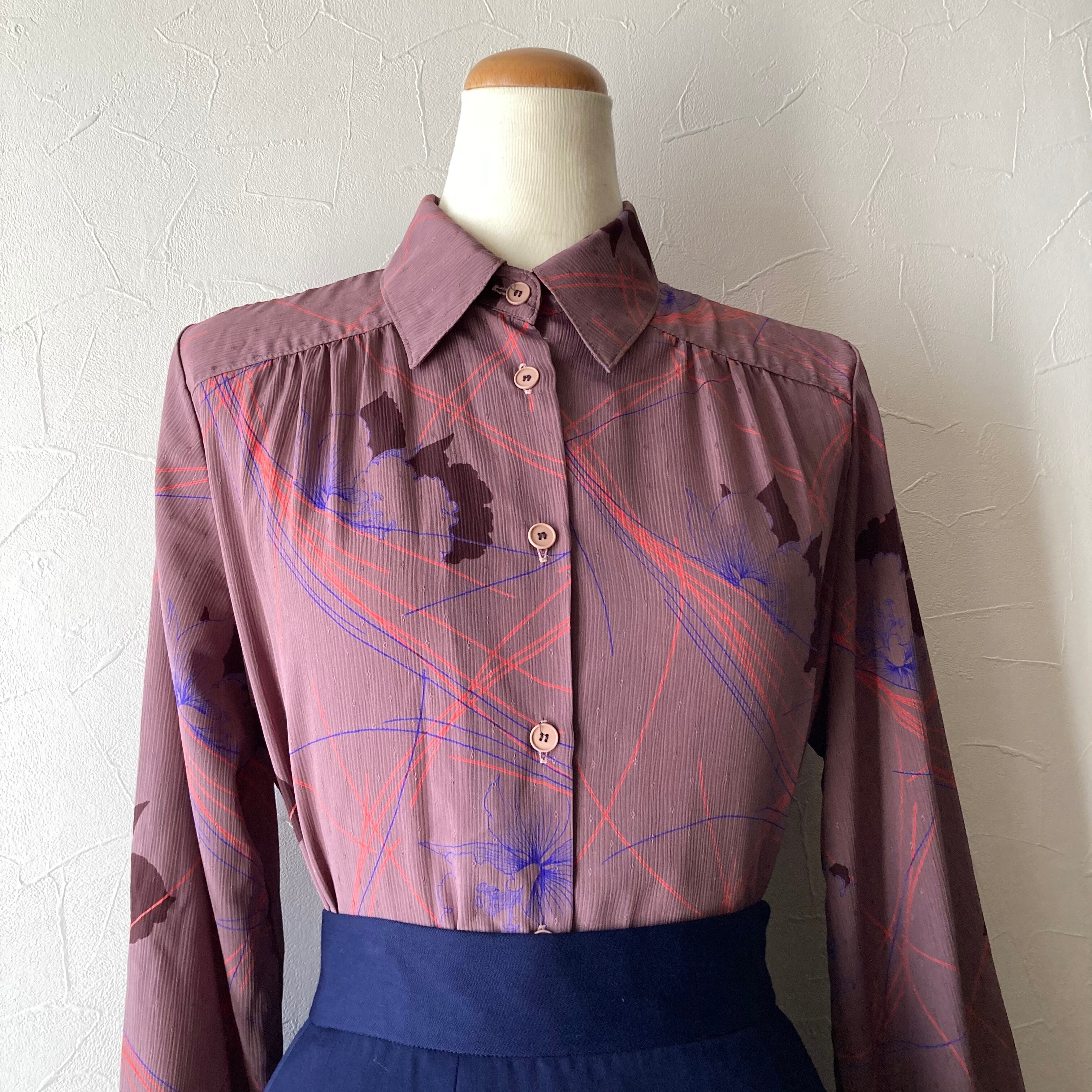 くすみパープル柄ブラウス 昭和レトロ 古着 used