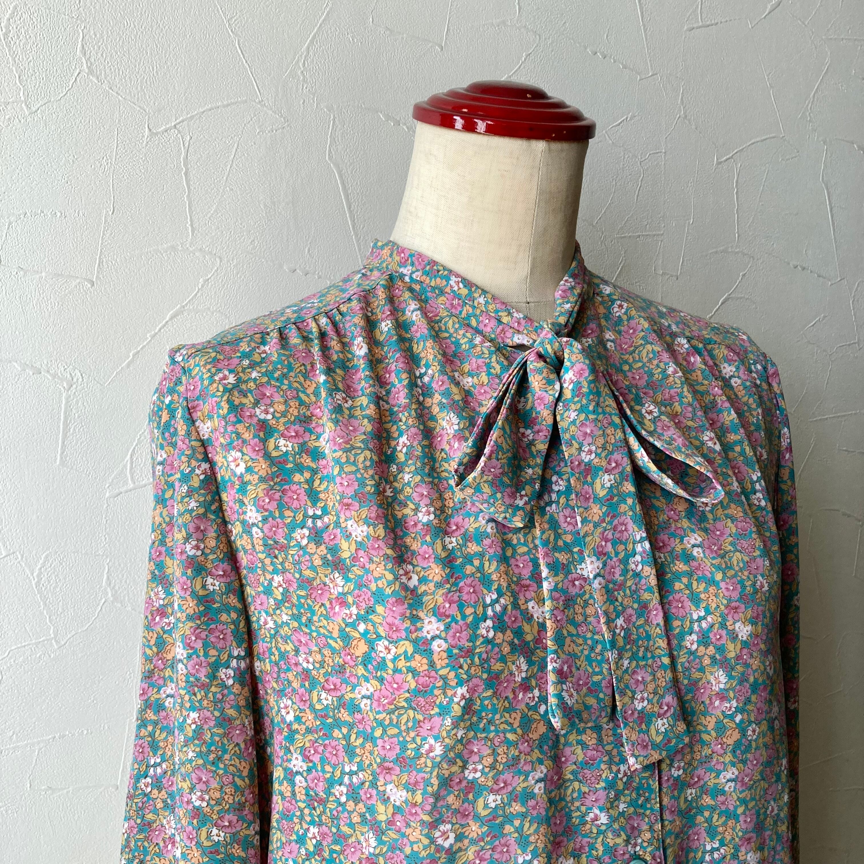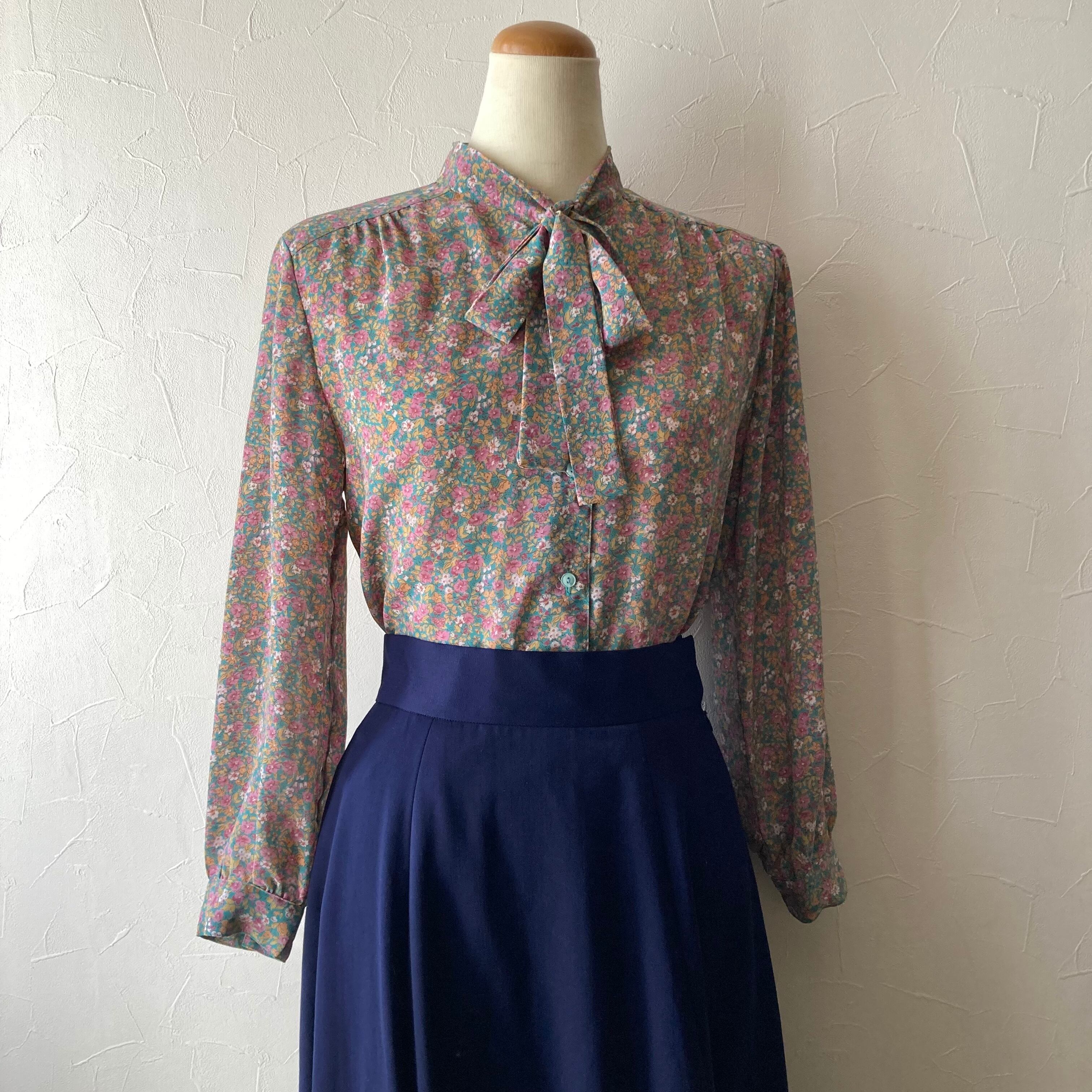 淡い小花柄ボウタイブラウス 昭和レトロ 古着 used vintage