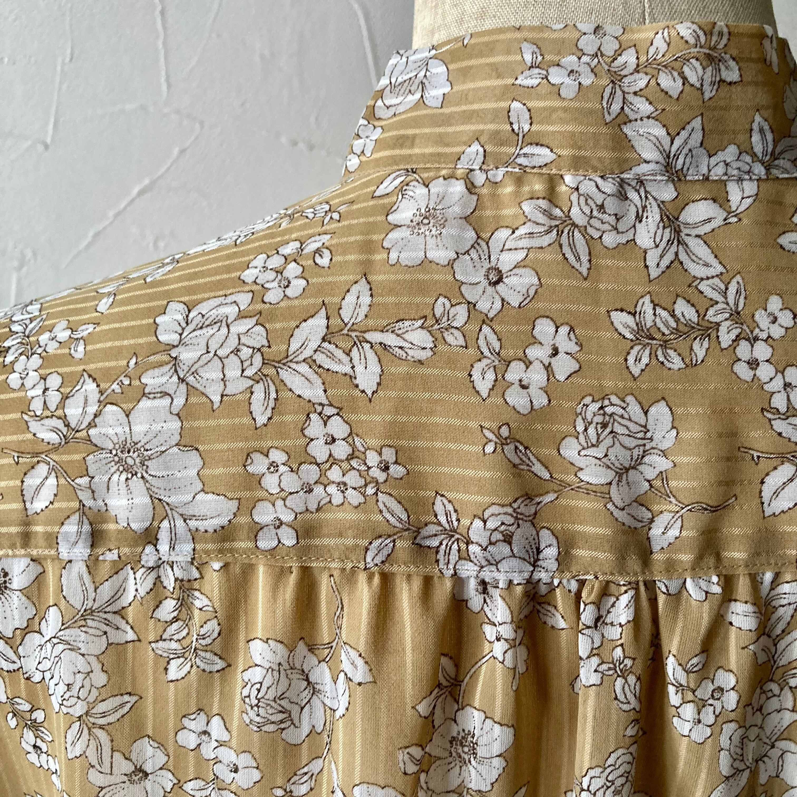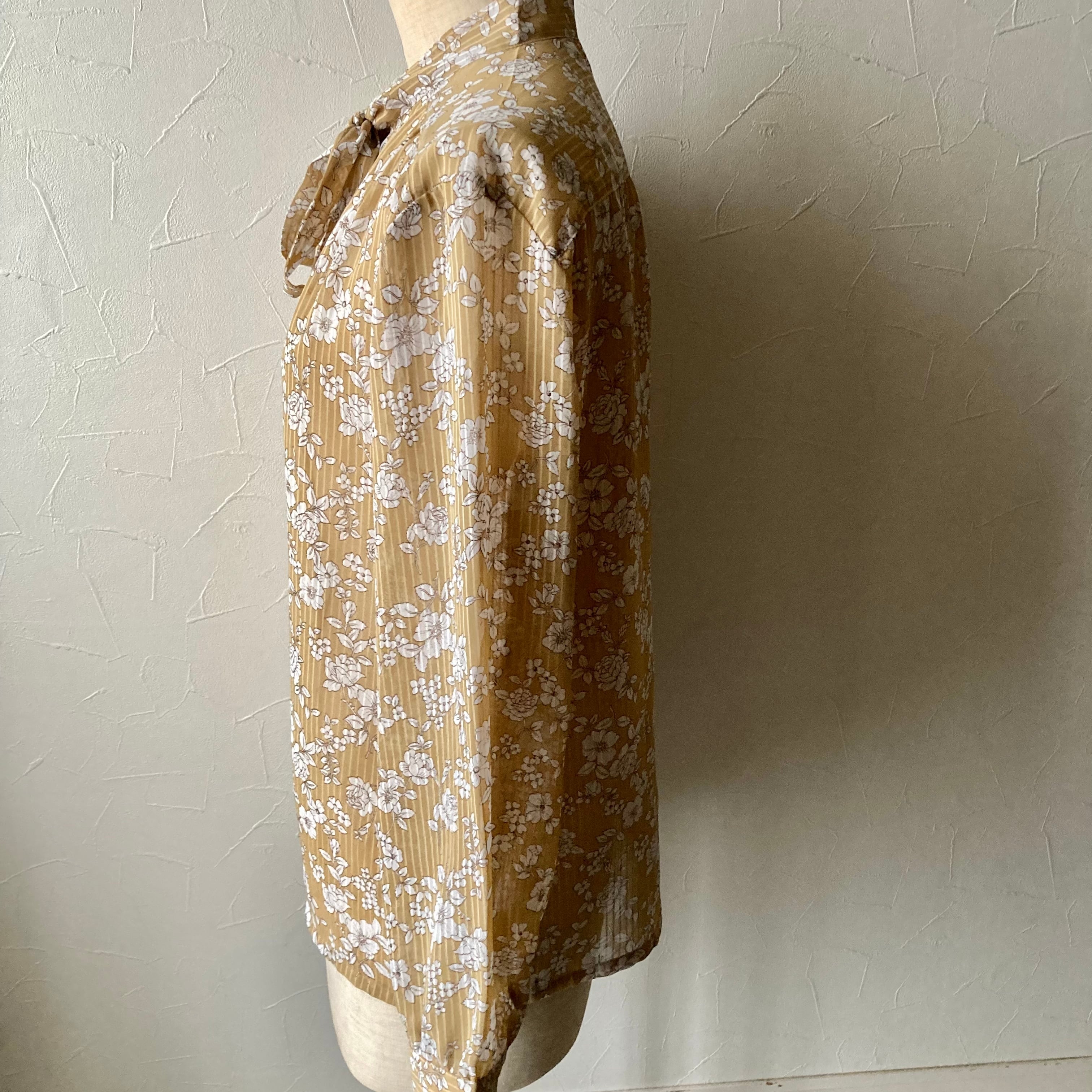 白い花柄ベージュボウタイブラウス 昭和レトロ 古着 used