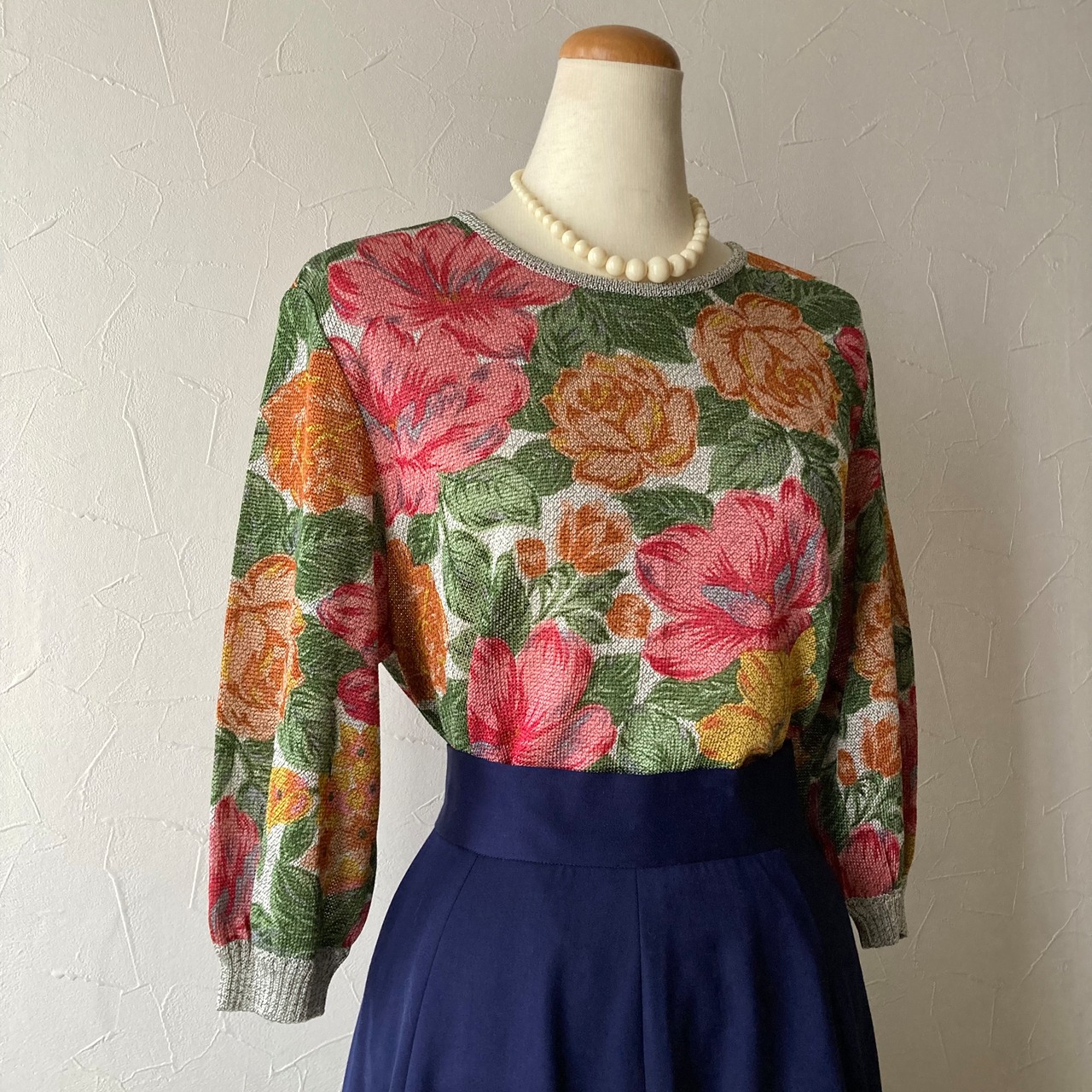 華やかな大柄の花柄が素敵な六部袖くらいのニットです◯