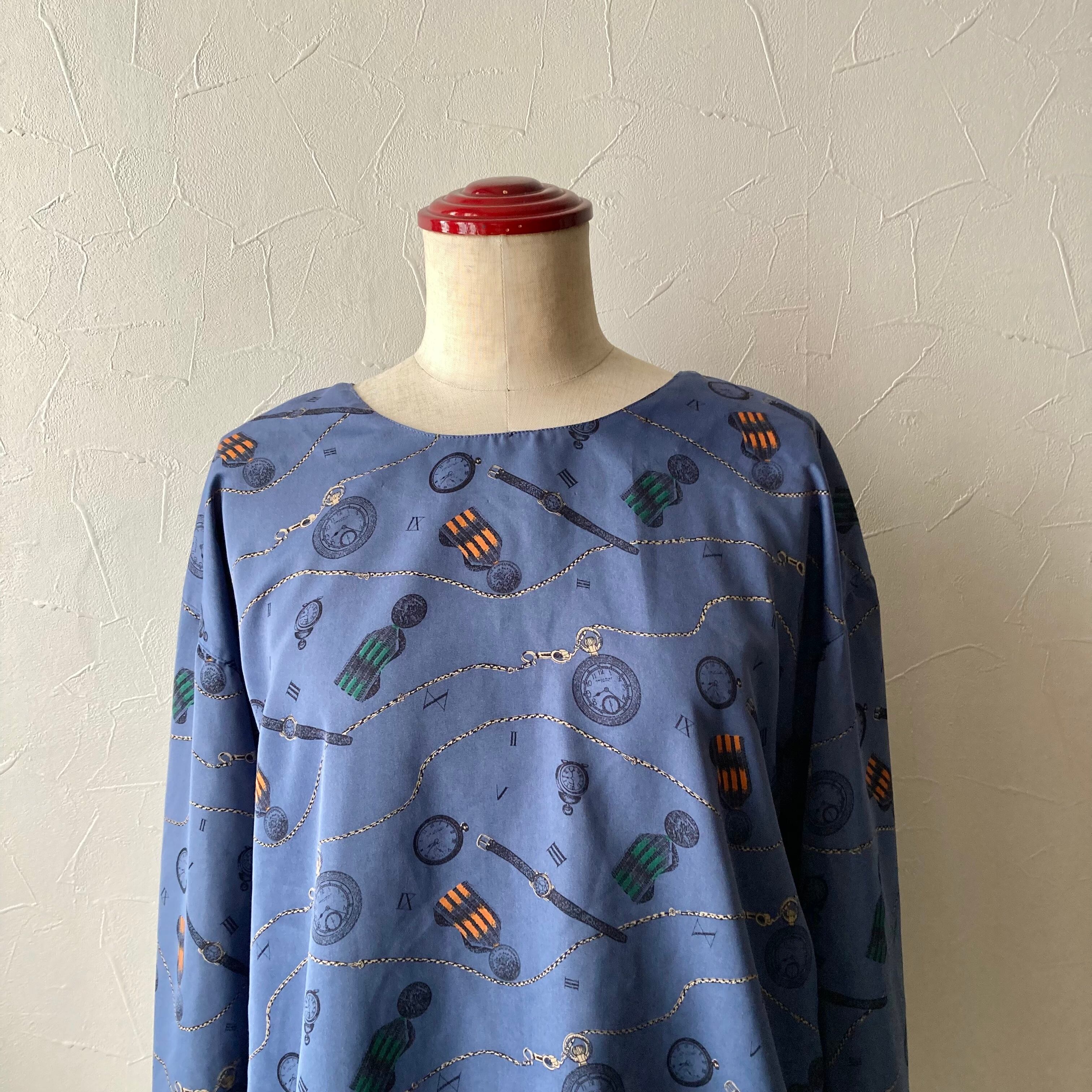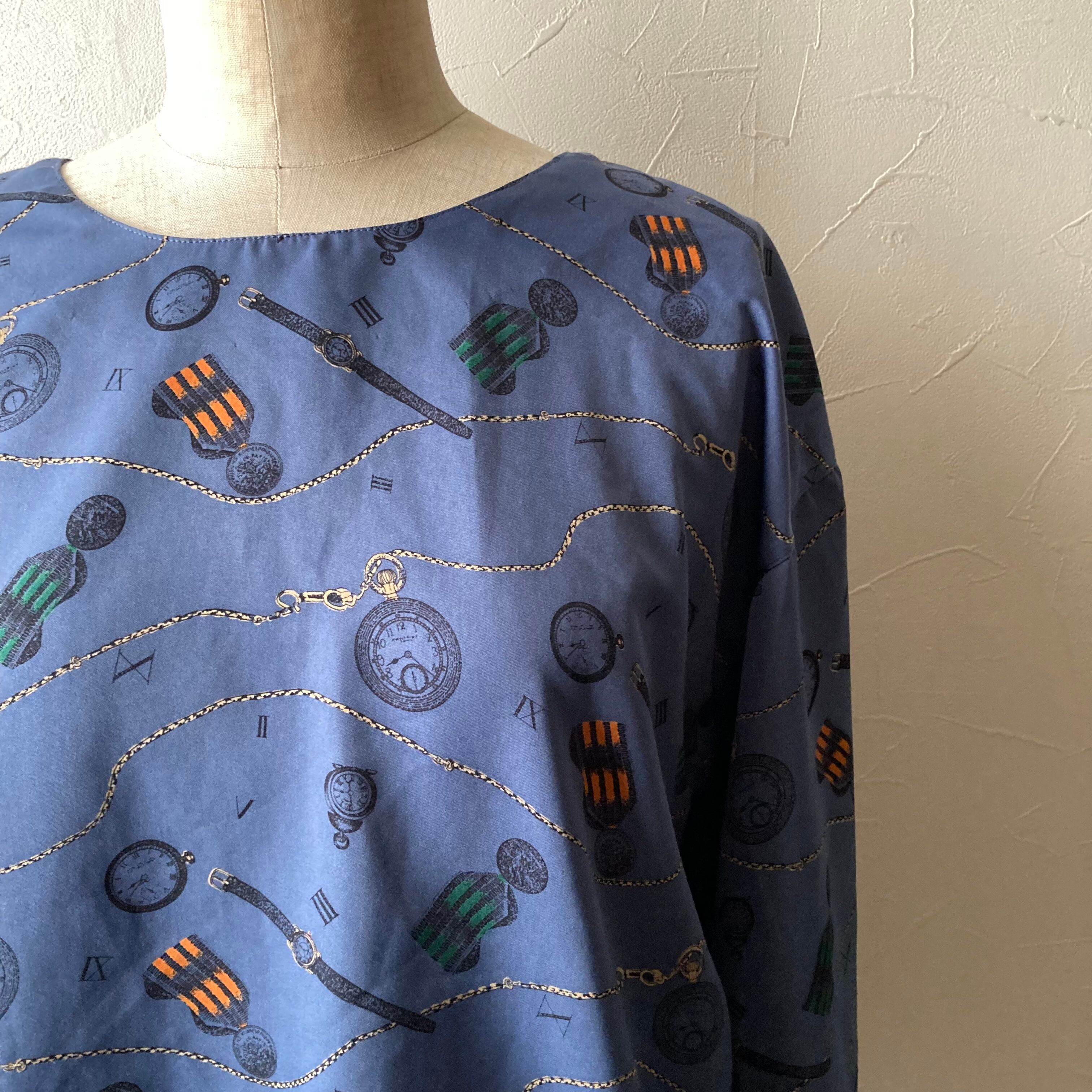 時計やエンブレムやアンティークな雰囲気のイラストがお洒落なブラウス◯