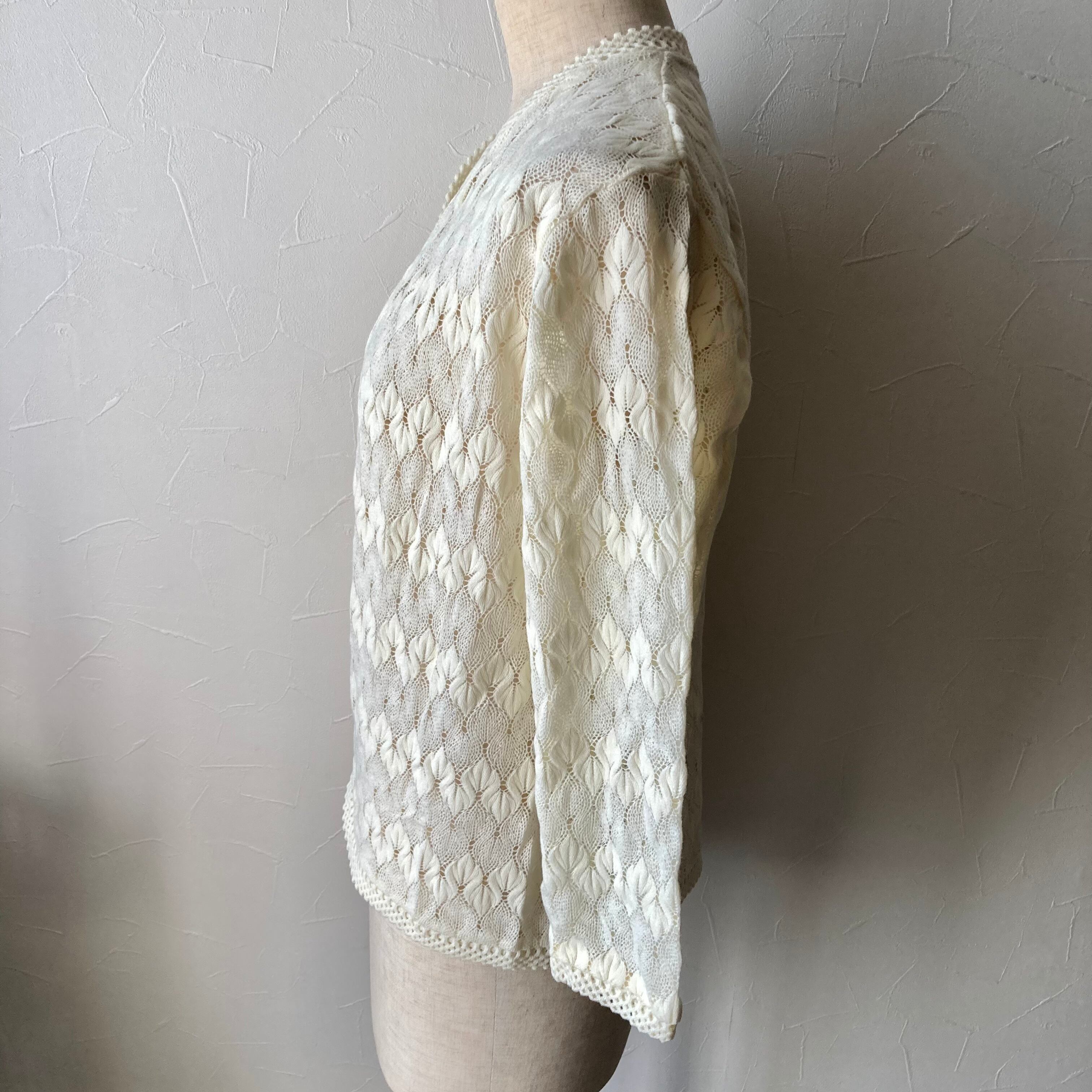 アイボリーに編み方がとっても可愛いレトロなカーディガンまで