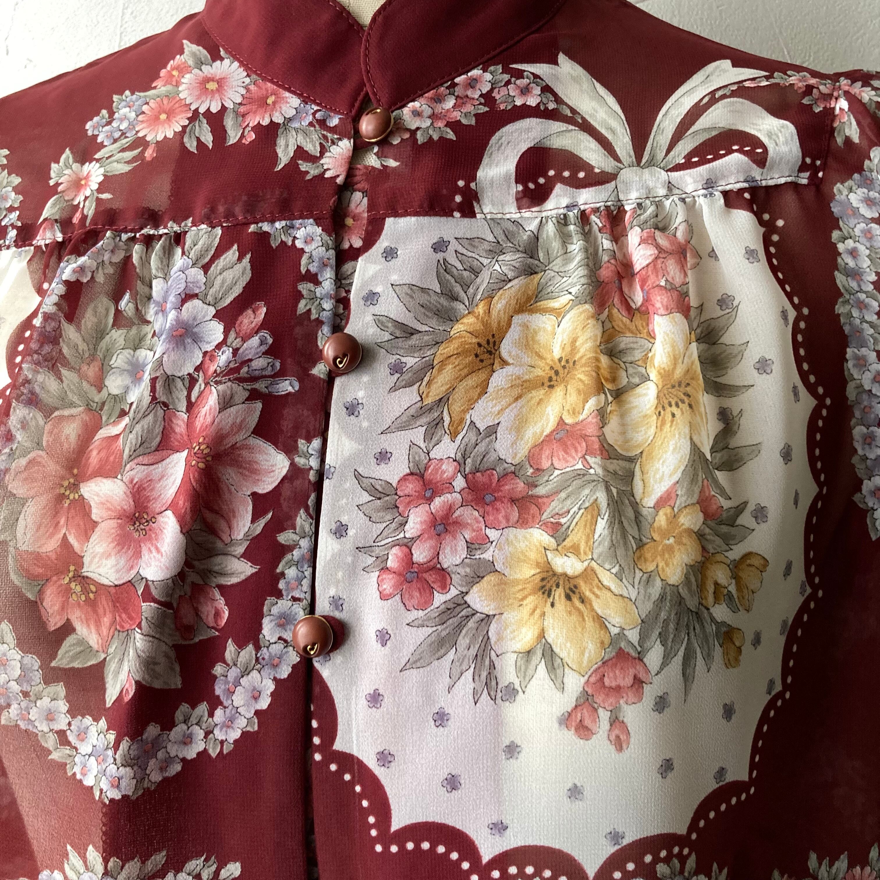 ブーケリボン柄ブラウス 昭和レトロ 古着 used vintage