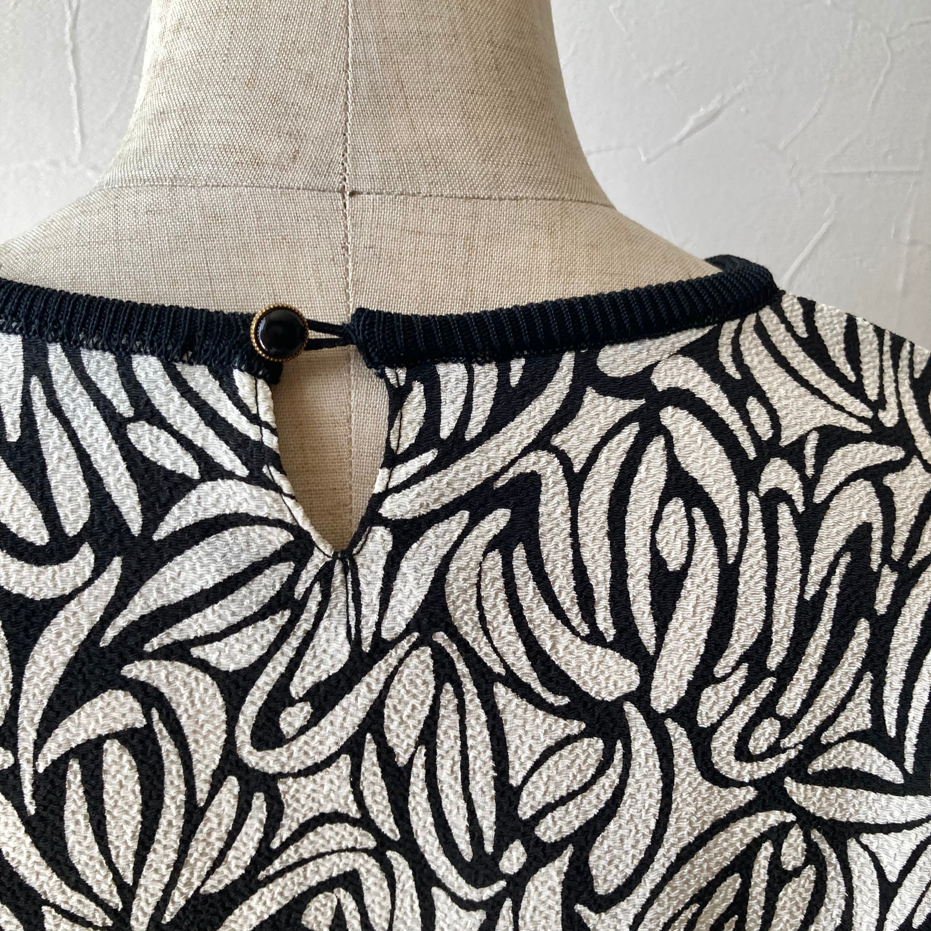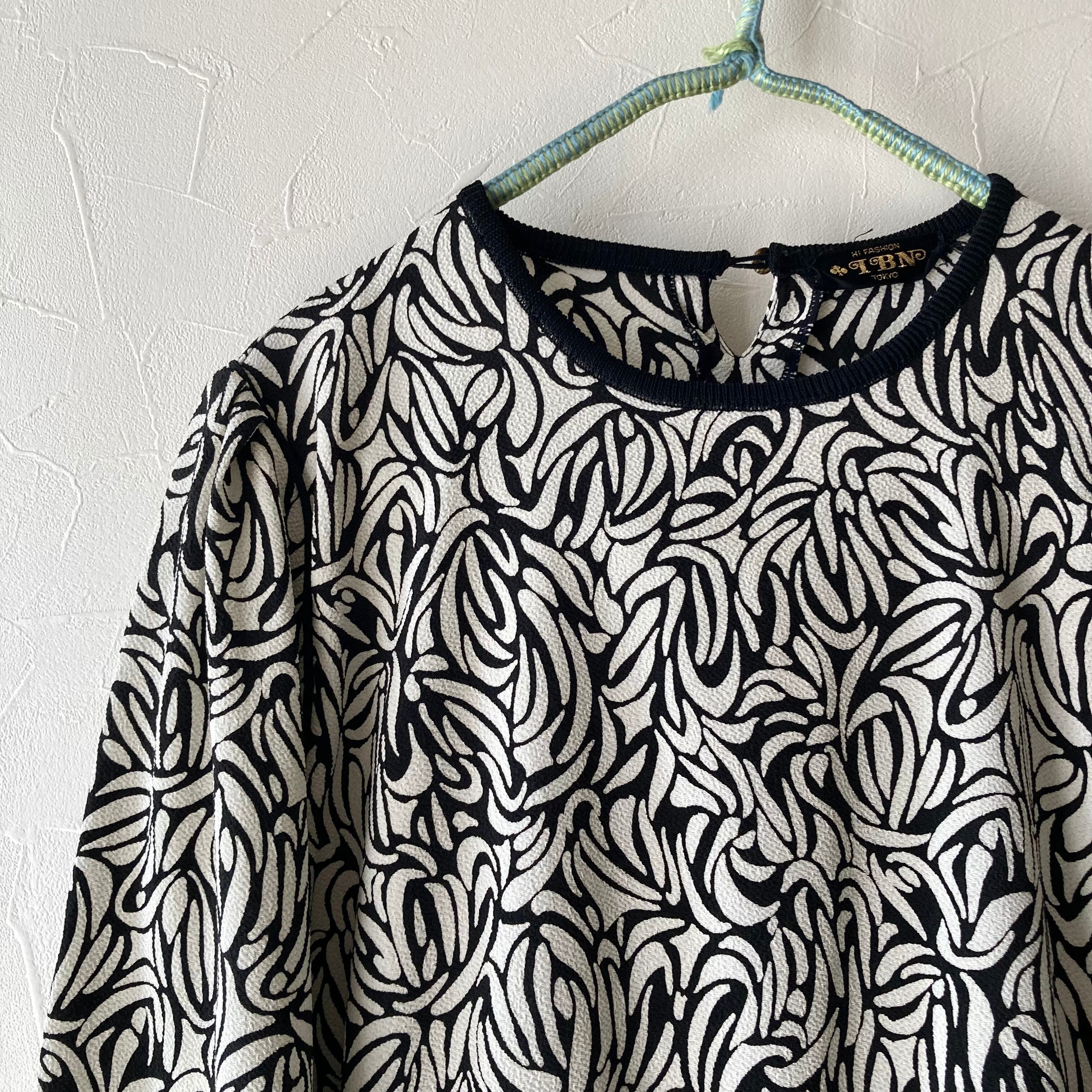 うねうね黒白トップス 昭和レトロ 古着 used