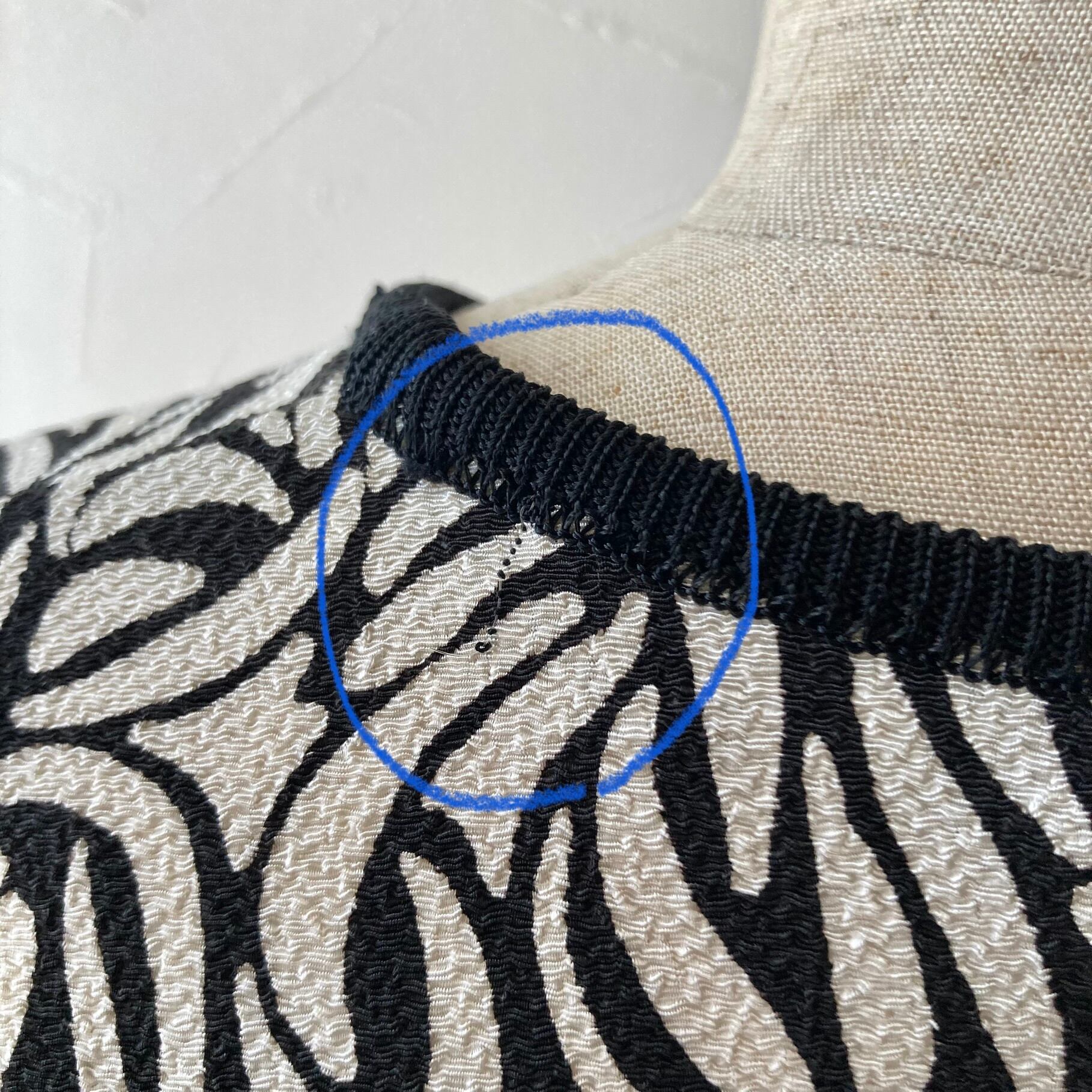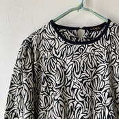 黒白のうねうね模様がレトロで目を惹くステキなトップス◯ 六部袖くらいの丈でまだ暑さも残る昼間にもちょうど良いです♪