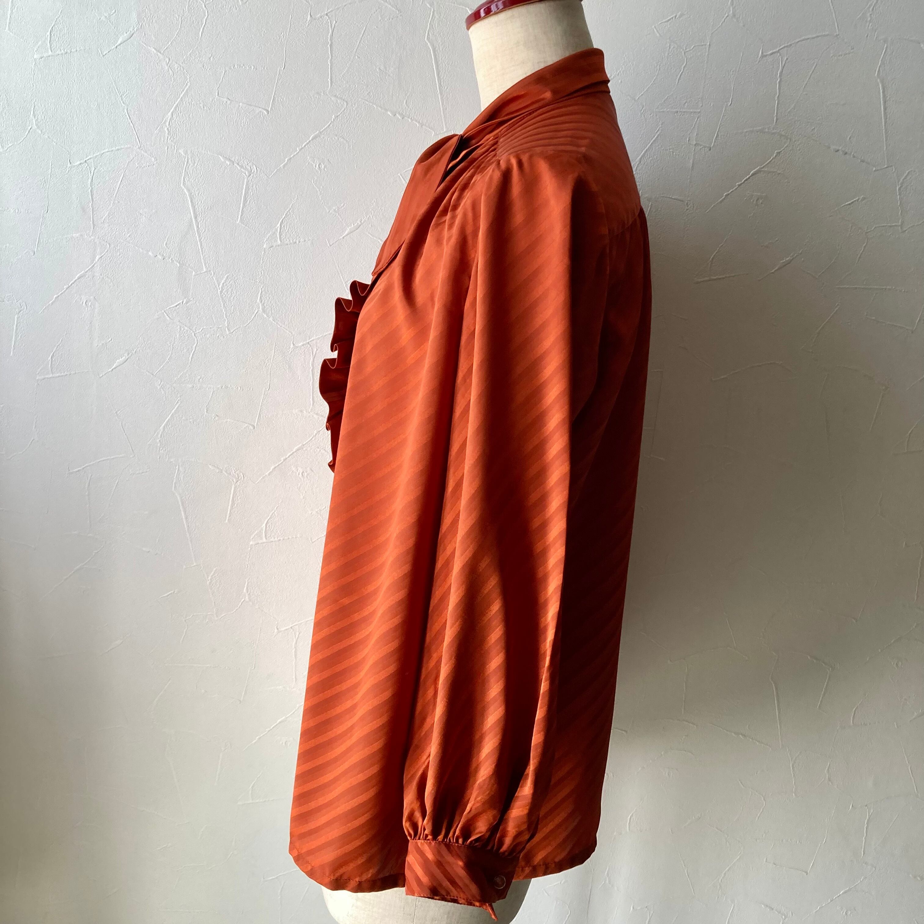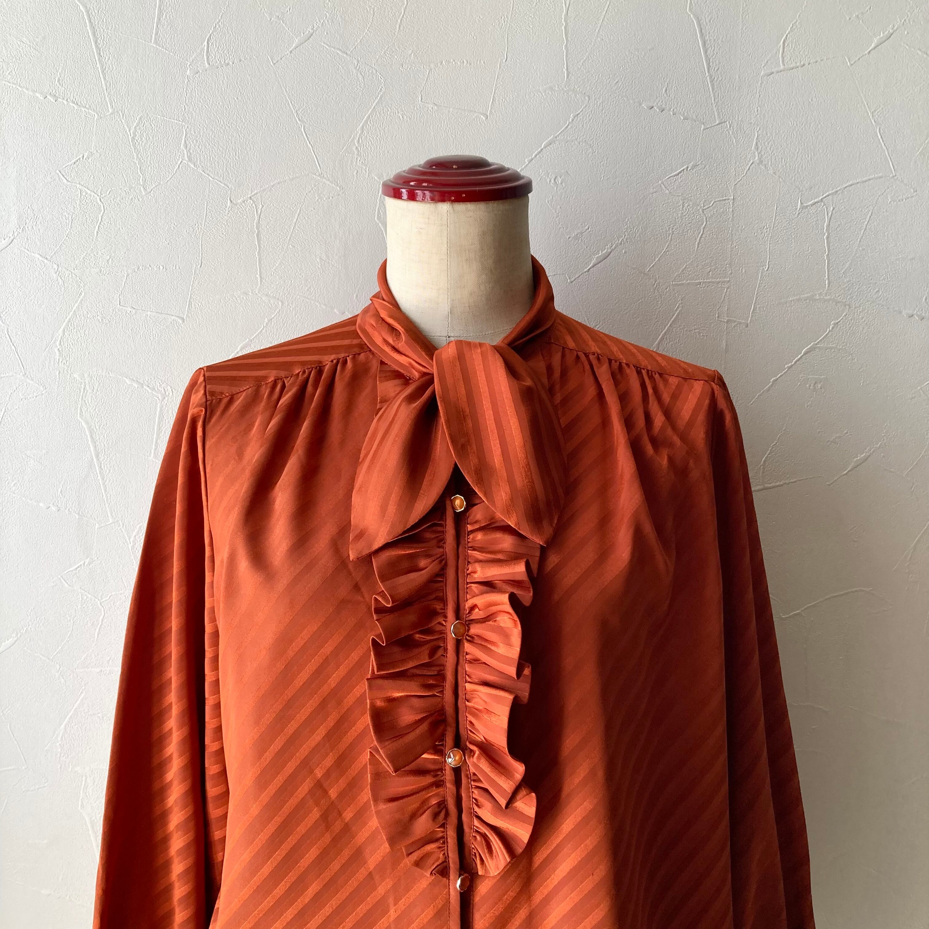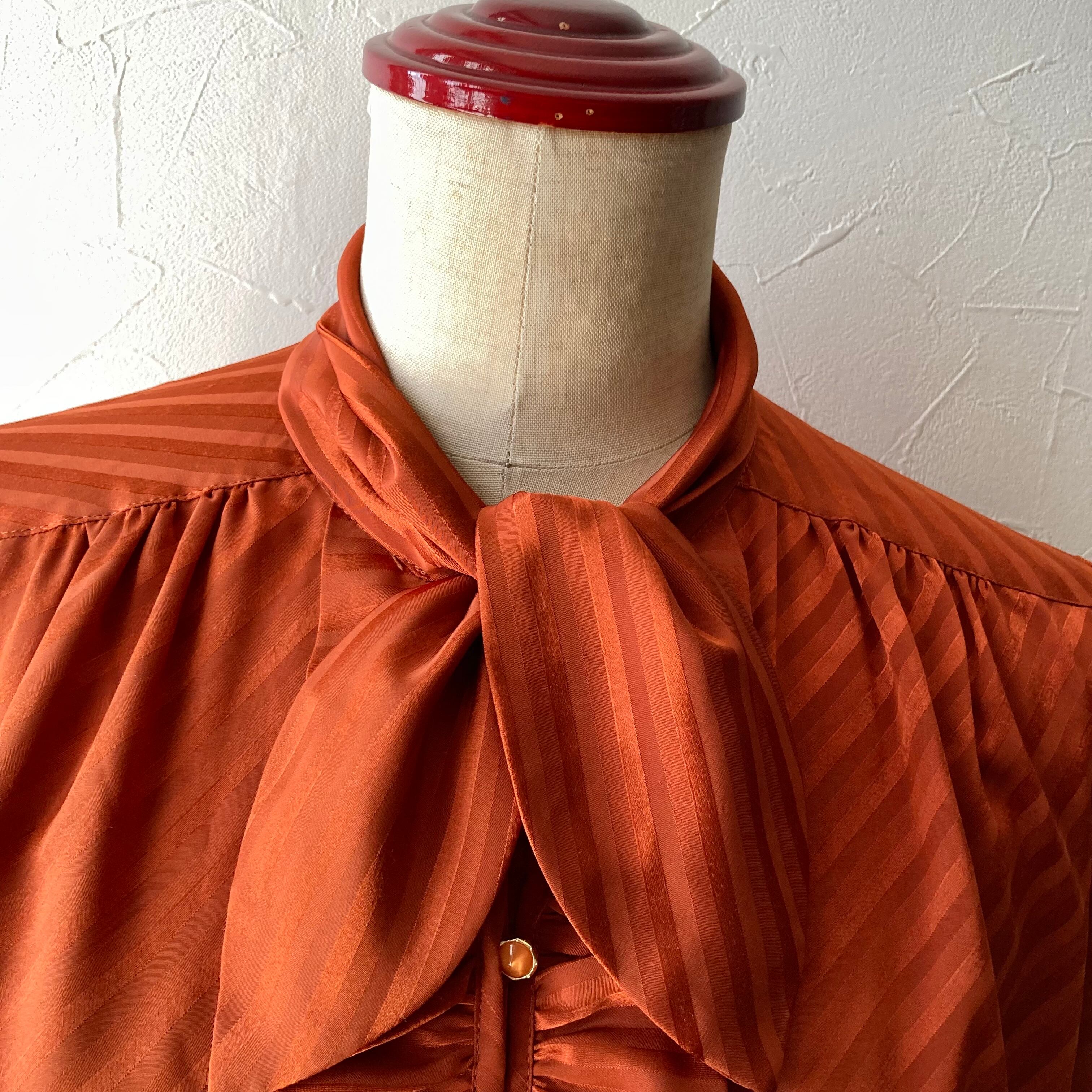 ななめストライプリボンブラウス 昭和レトロ 古着 used vintage