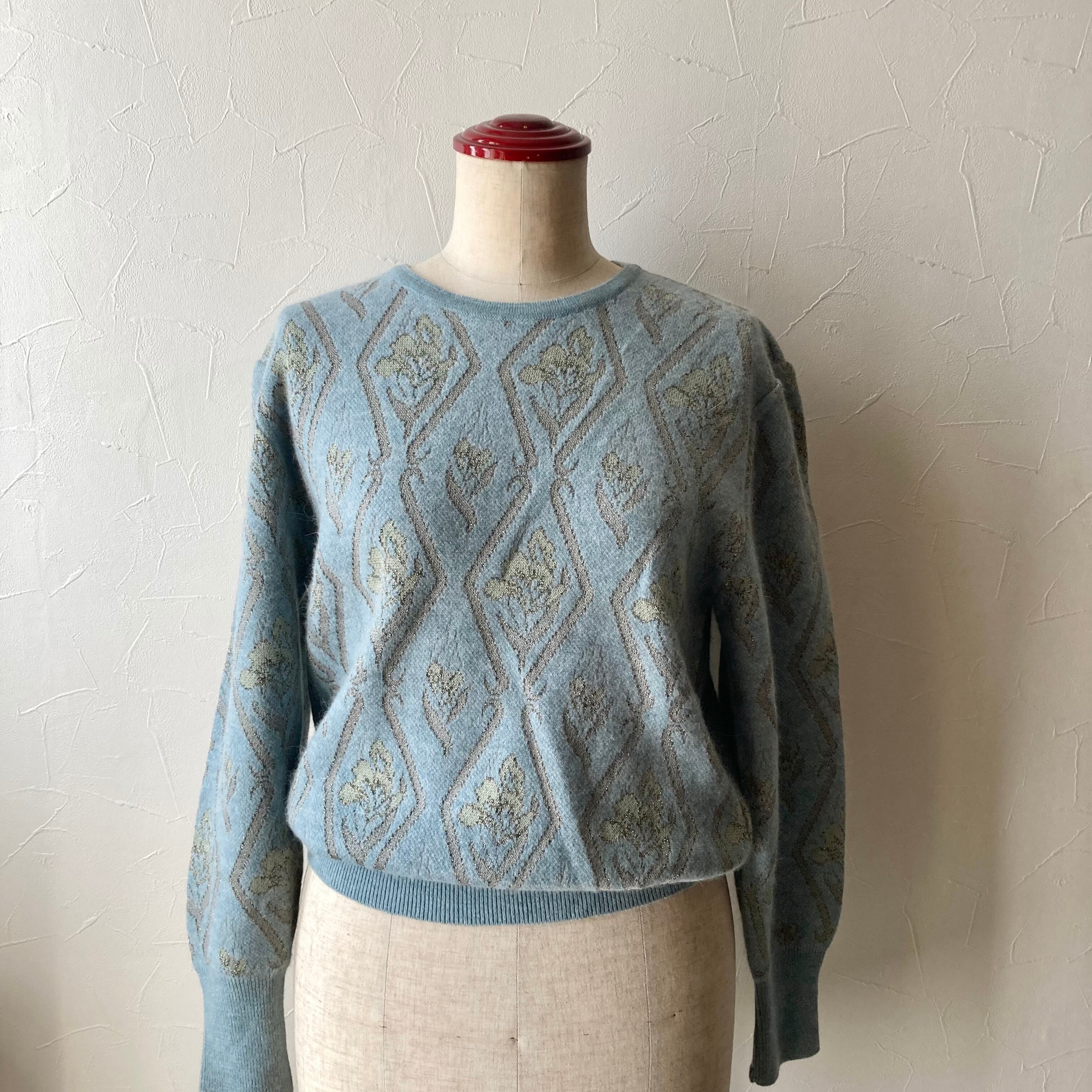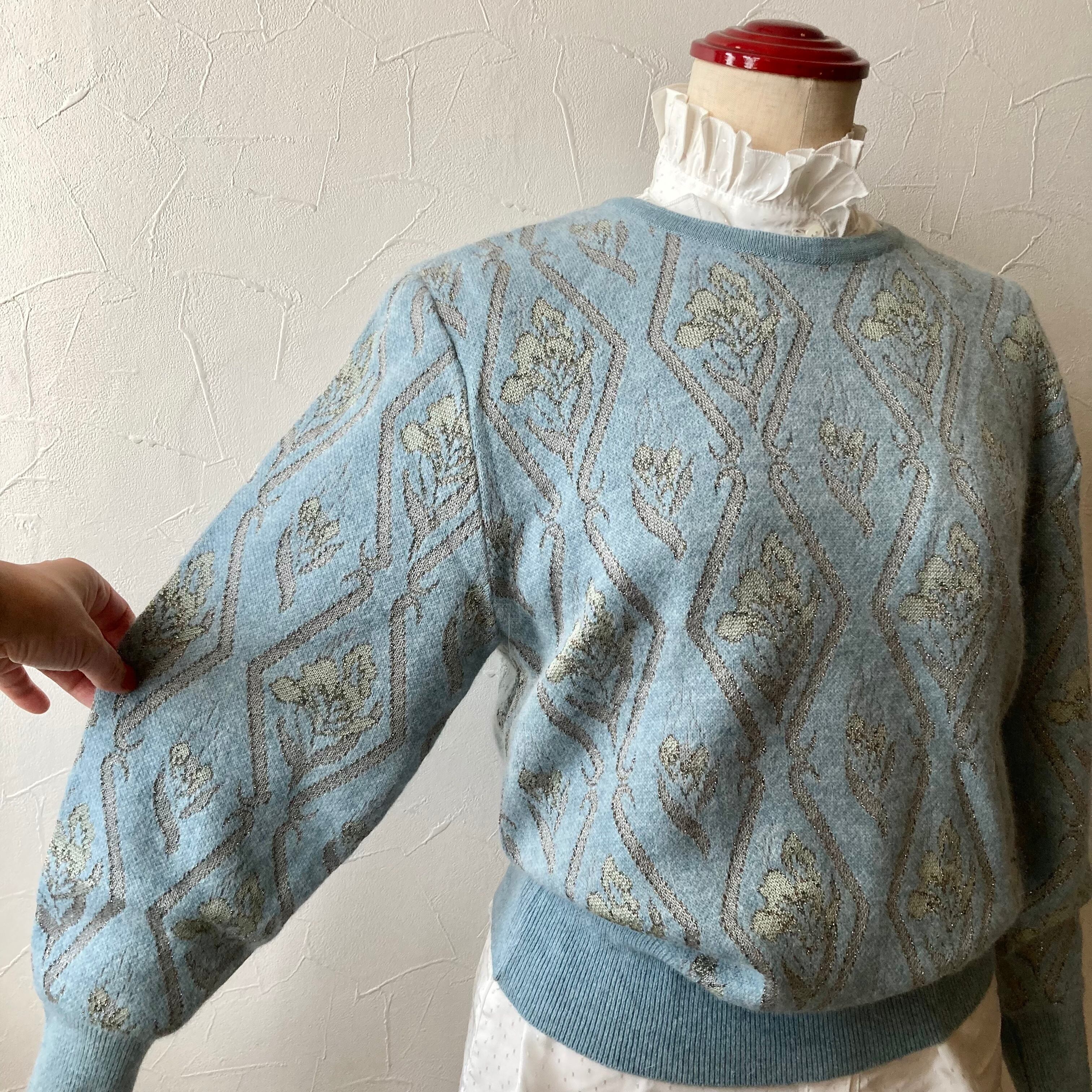 ◯未使用品◯アンゴラ混水色ラメニット 昭和レトロ 古着 used