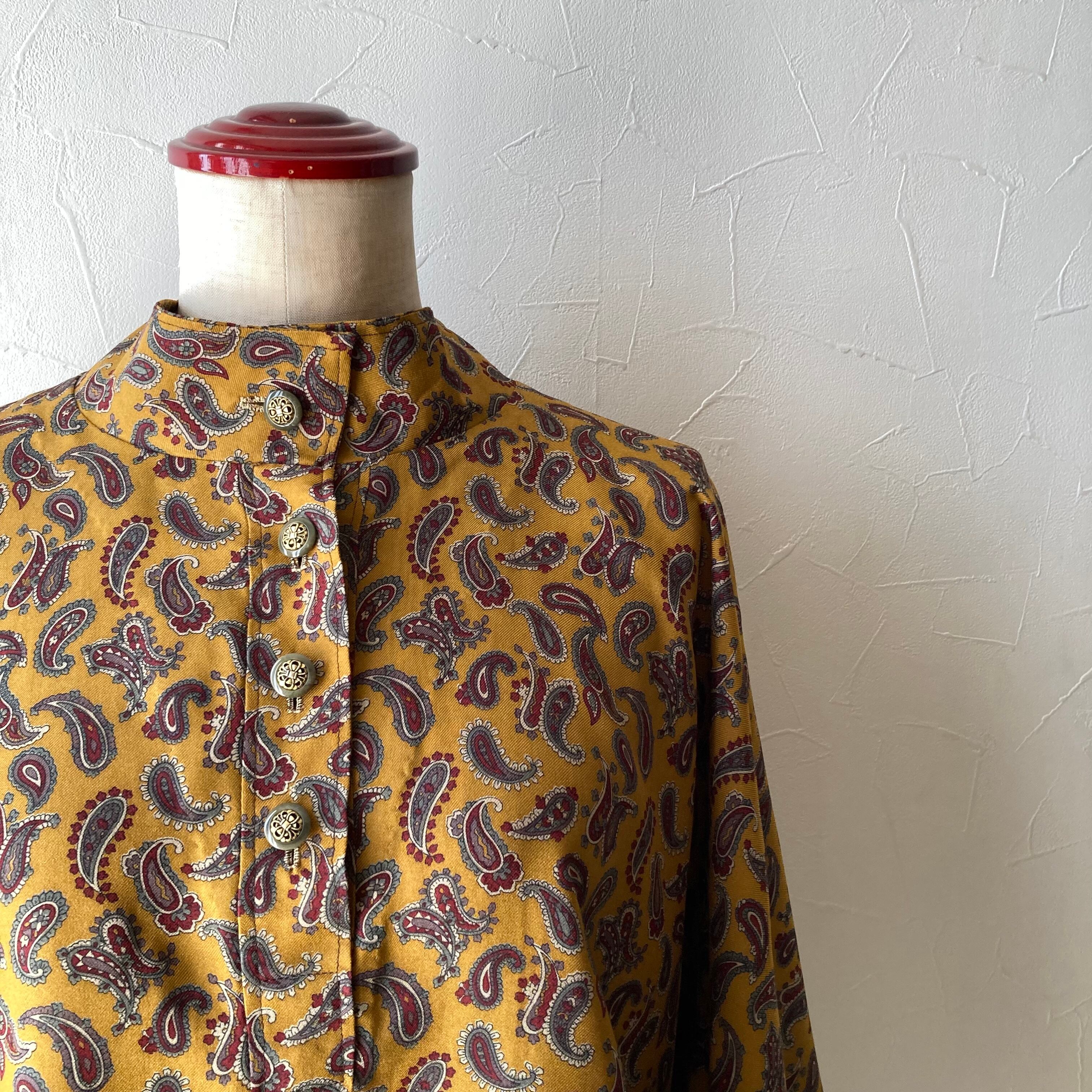 マスタードペイズリードルマンブラウス 昭和レトロ 古着 used vintage