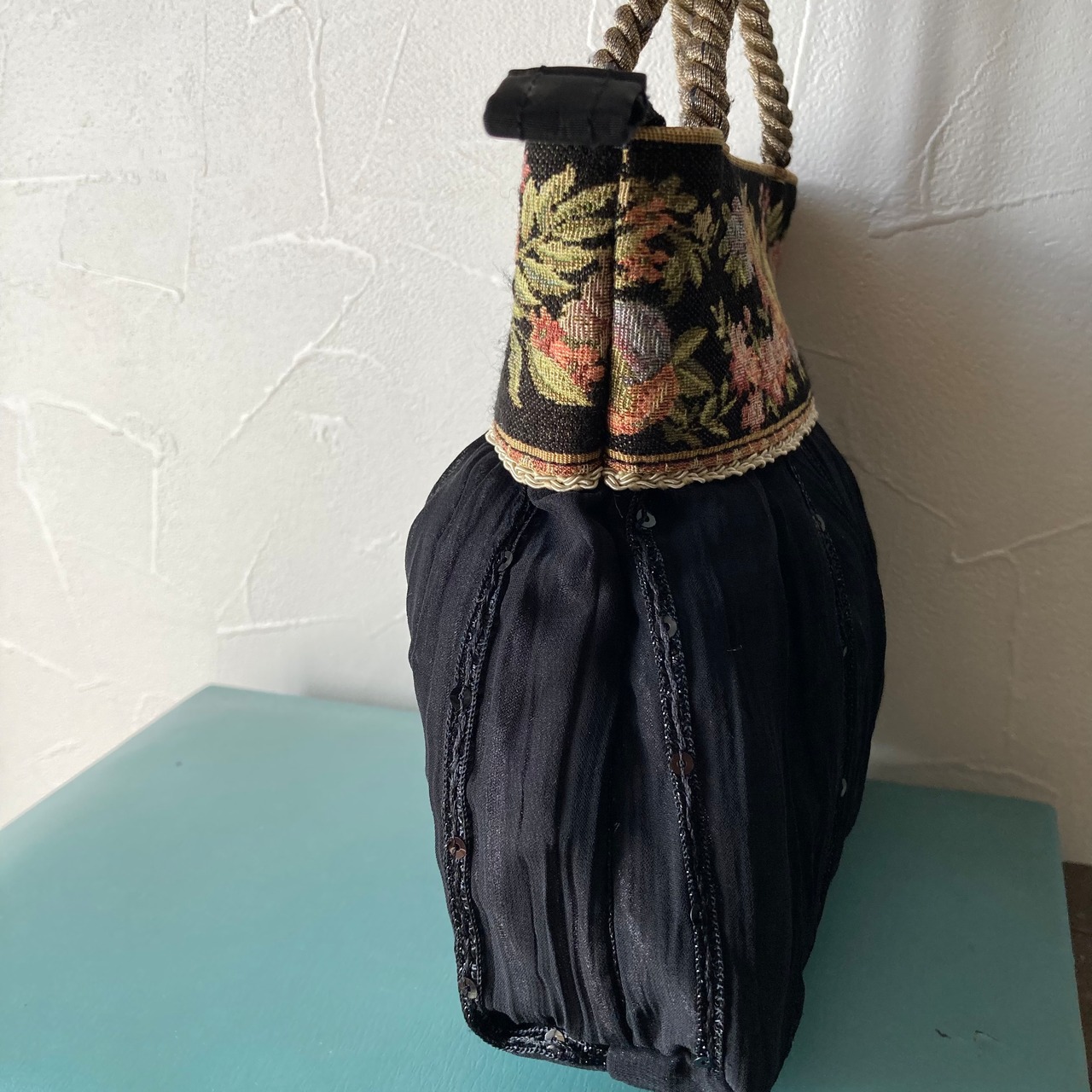 スパンコール刺繍フルーツ花柄バッグ 昭和レトロ used vintage