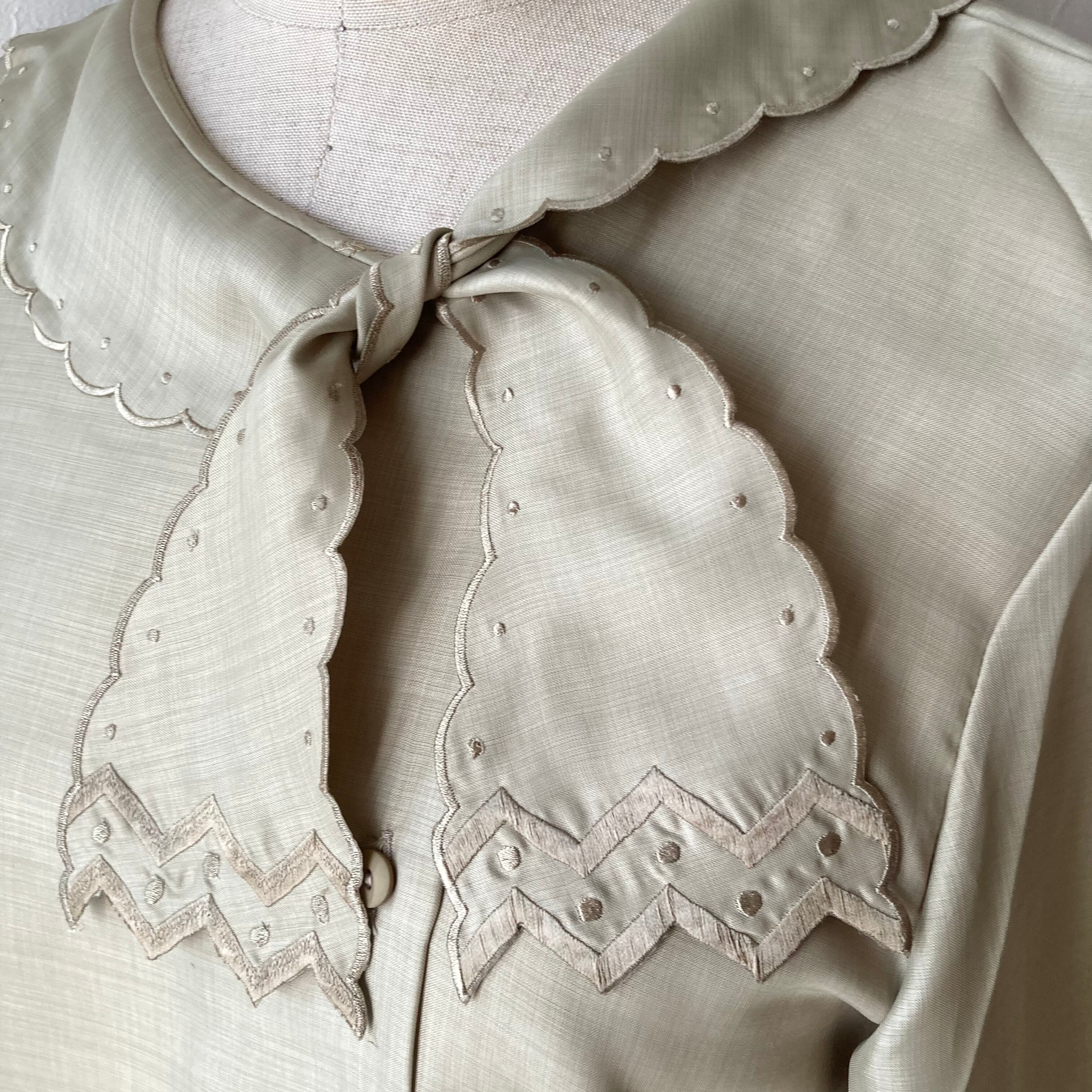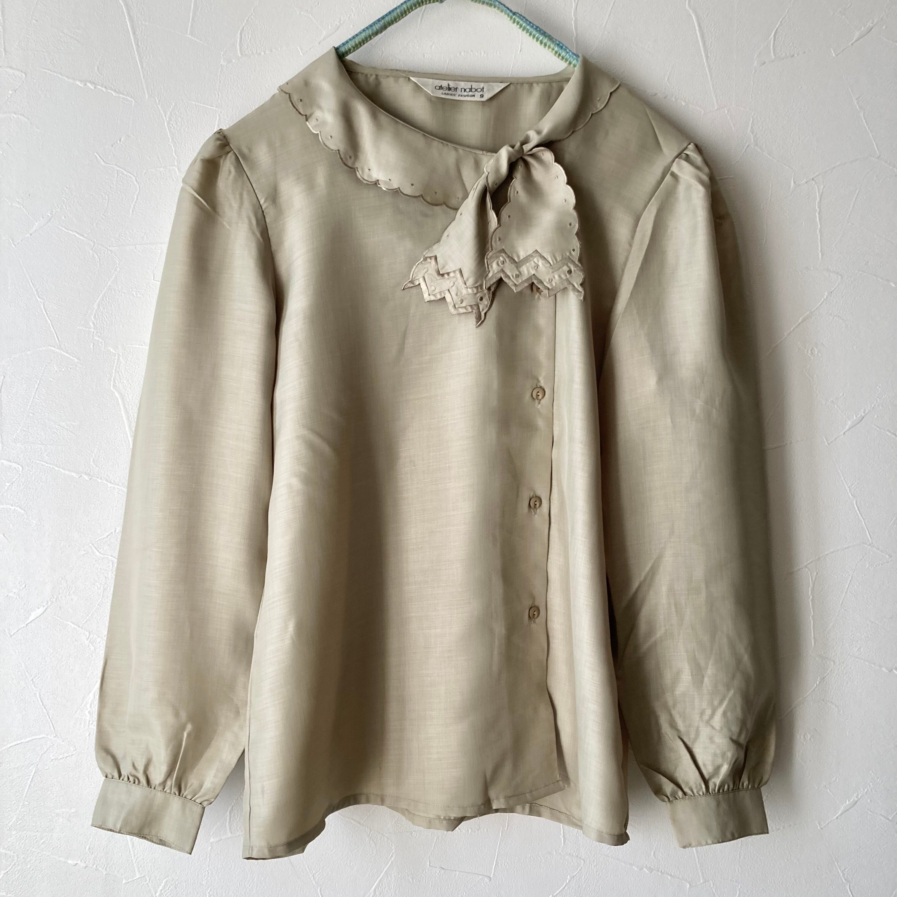 スカラップ襟リボンブラウス 昭和レトロ 古着 used vintage