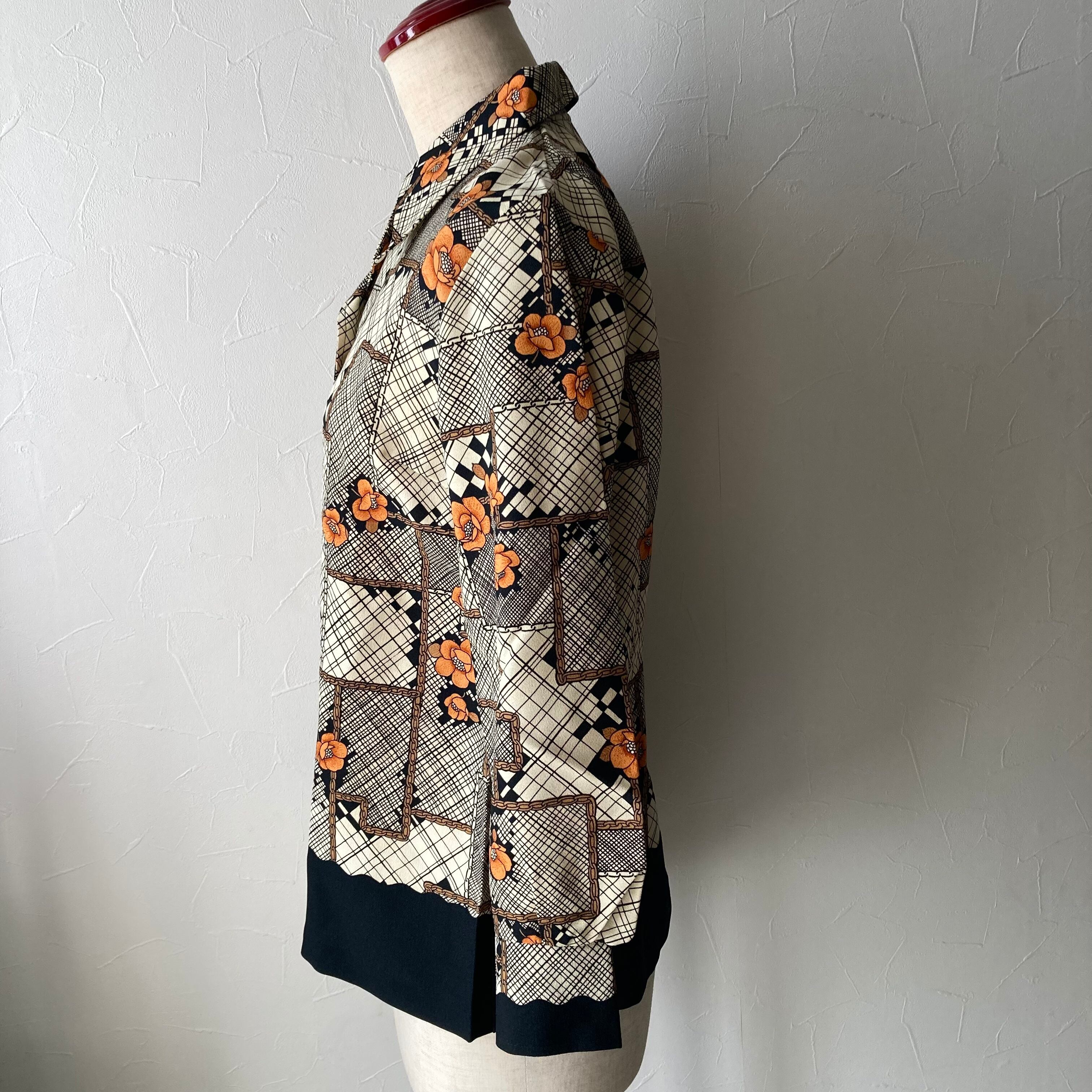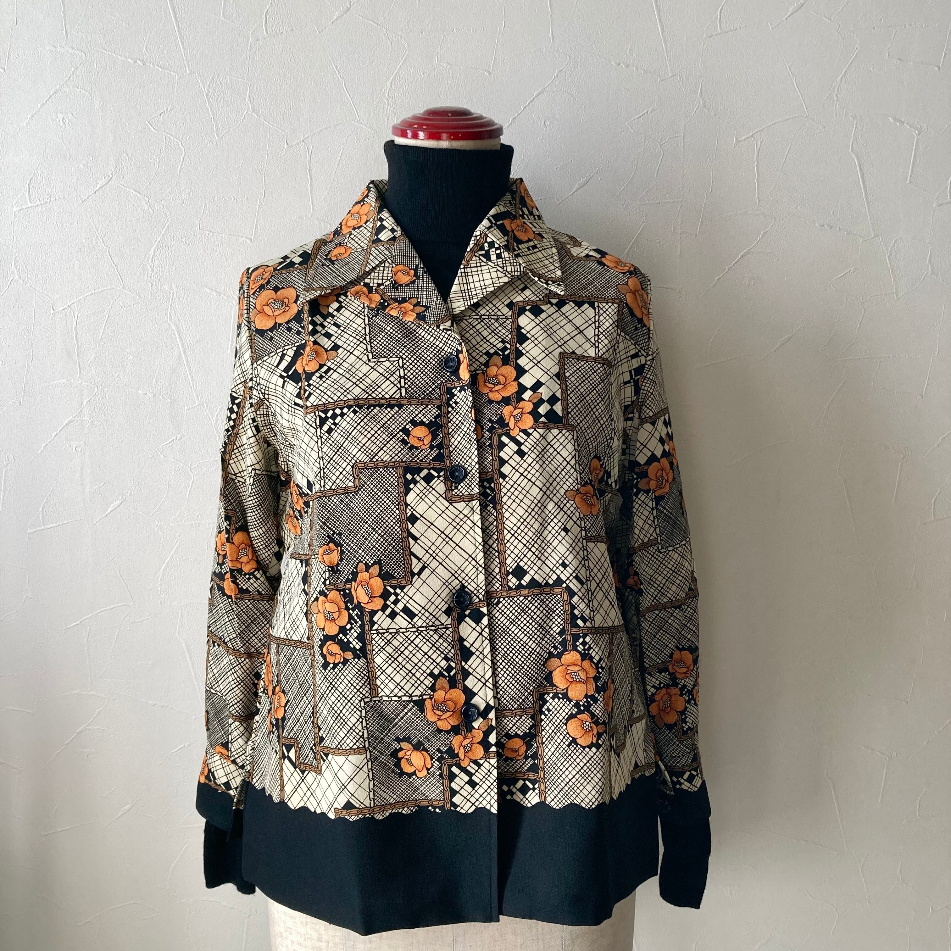 オレンジ花ブラウス 昭和レトロ 古着 used vintage