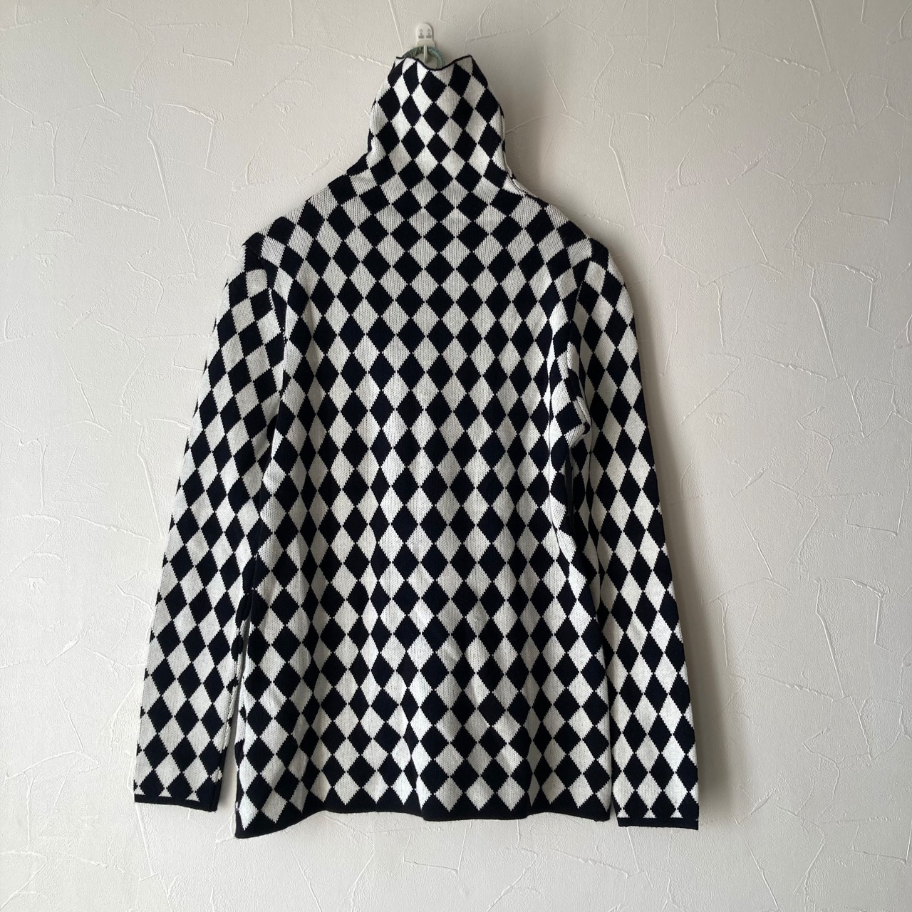 モノトーンのダイヤ柄がレトロでステキなハイネックニット◯