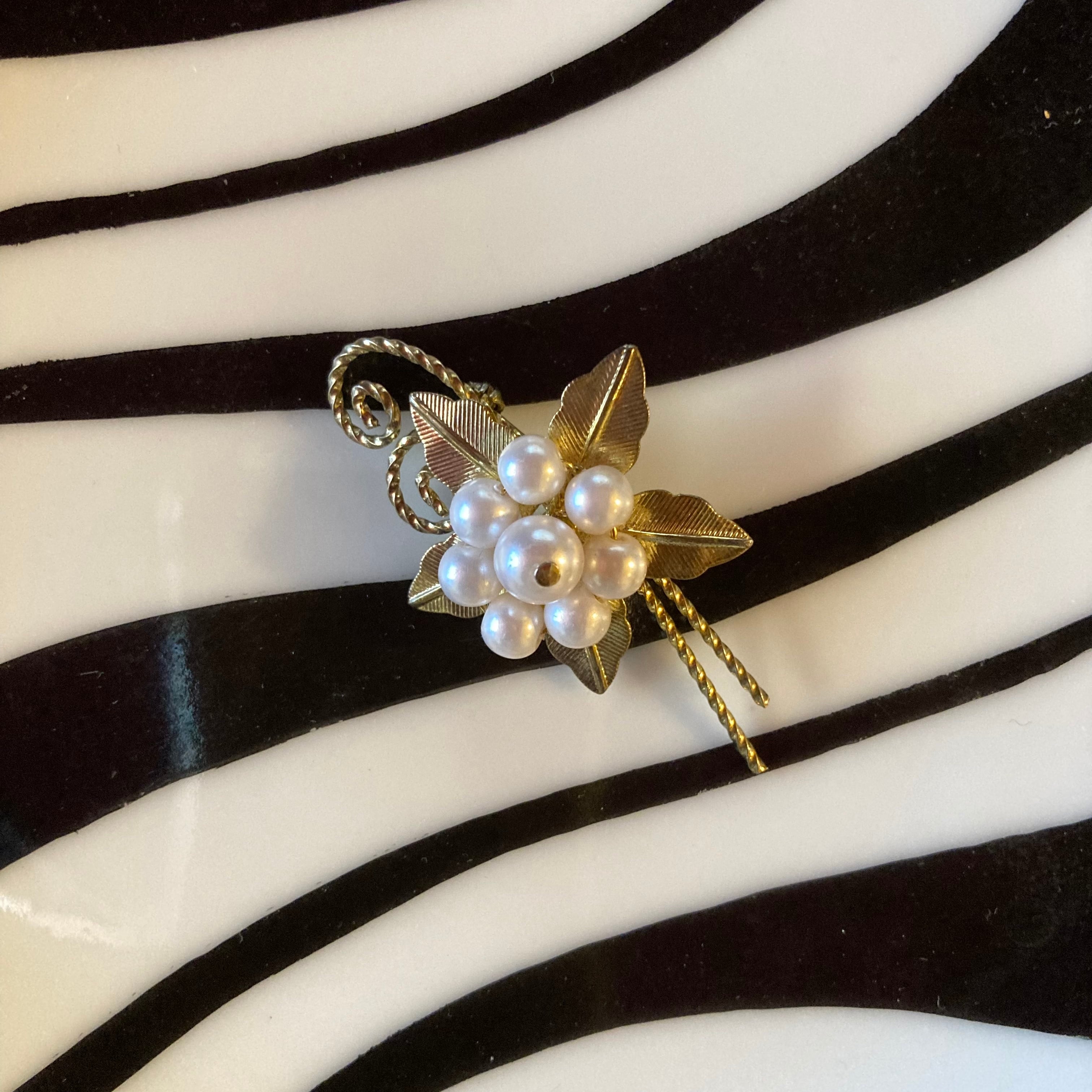 ゴールドの葉っぱに白いパール風のお花がついた可愛いブローチ◯
