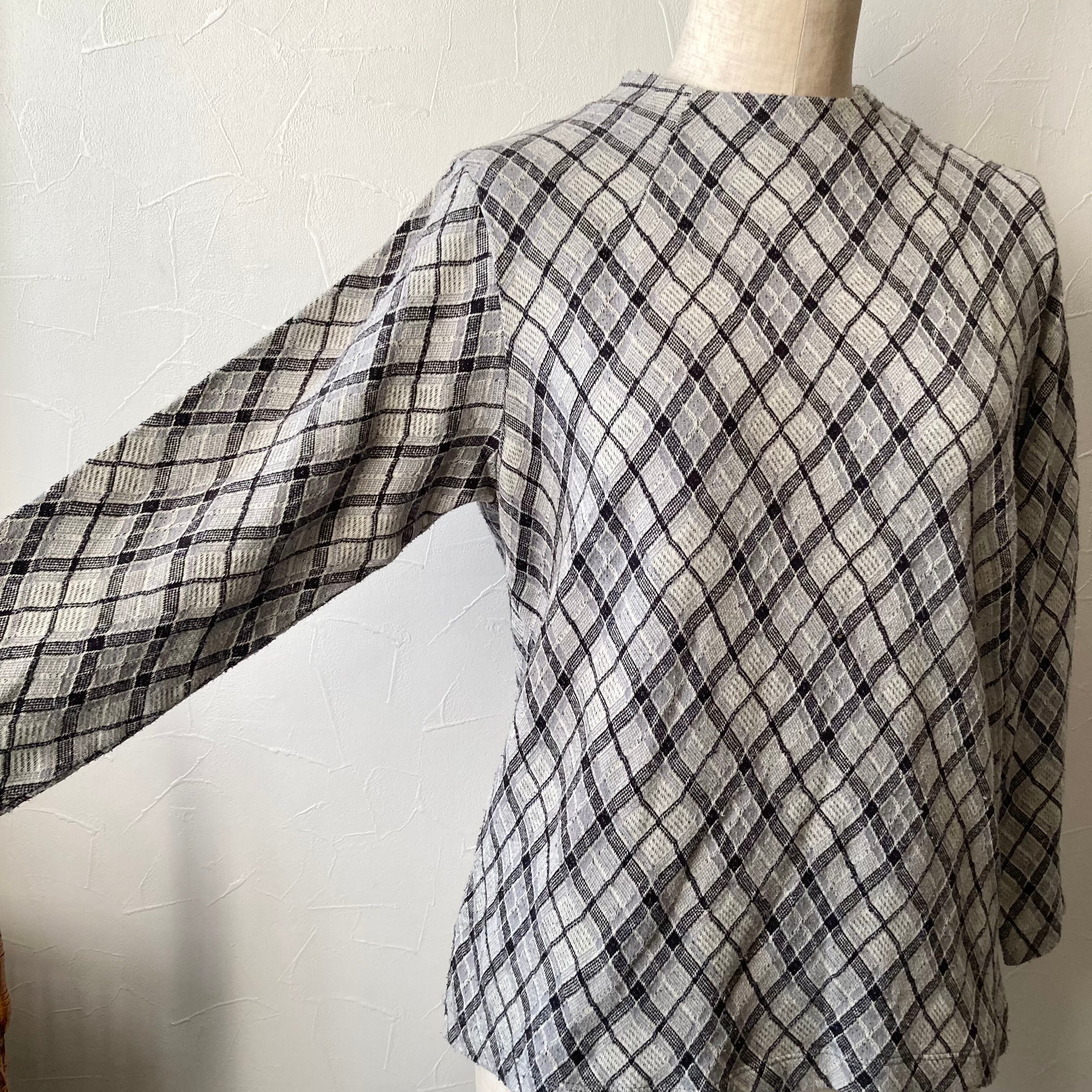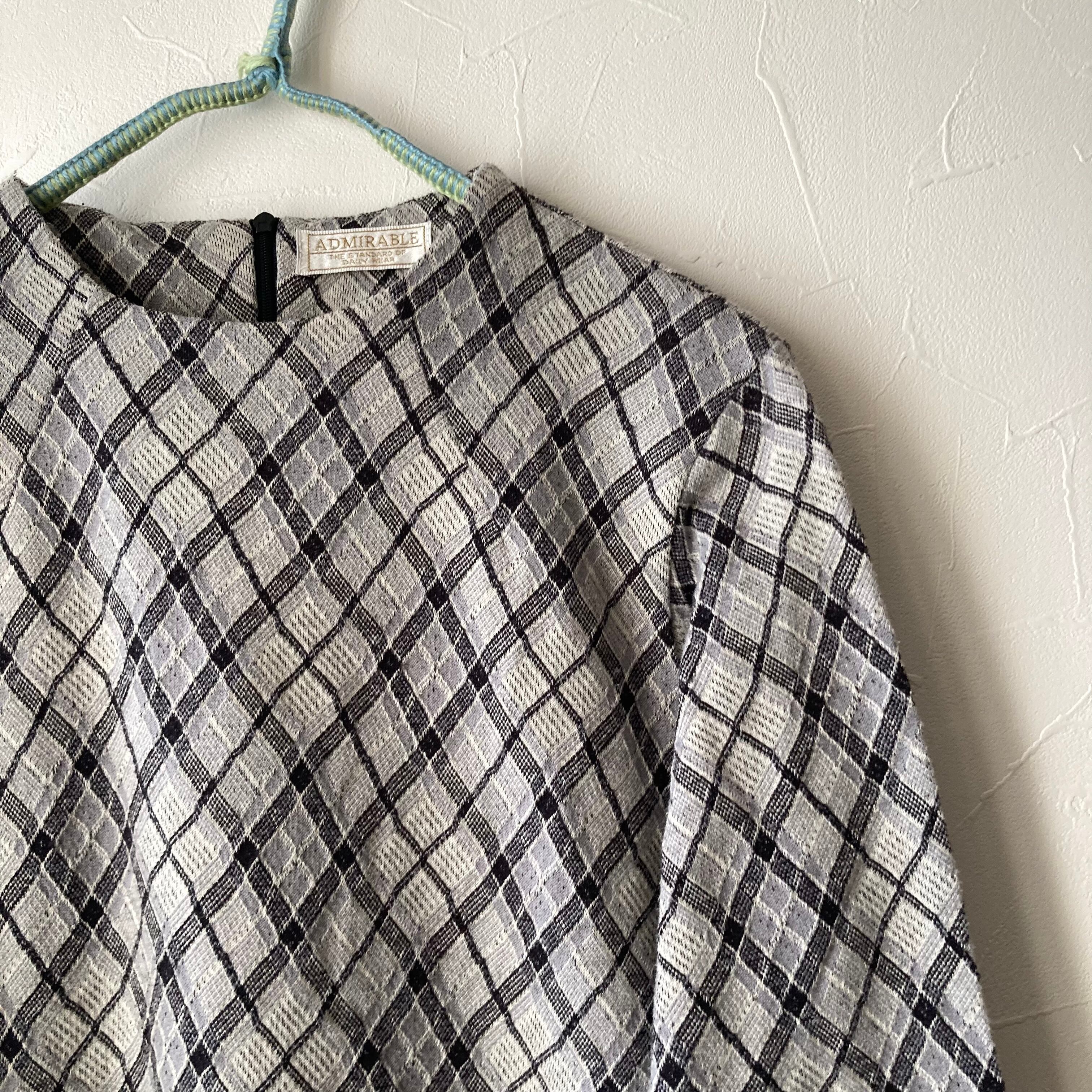 モノトーンチェックトップス 昭和レトロ 古着 used