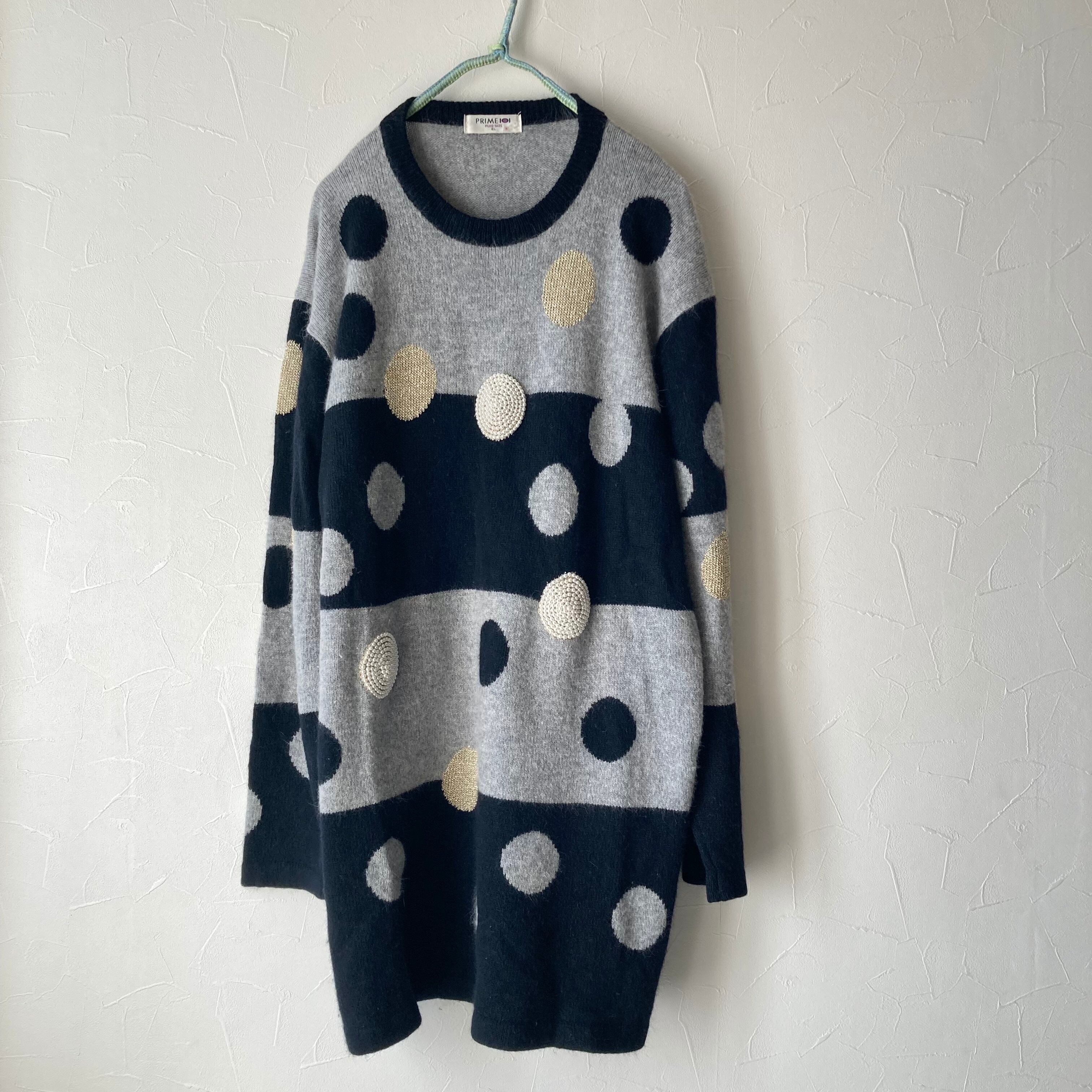 ドットビーズ刺繍ロングニット 昭和レトロ 古着 used