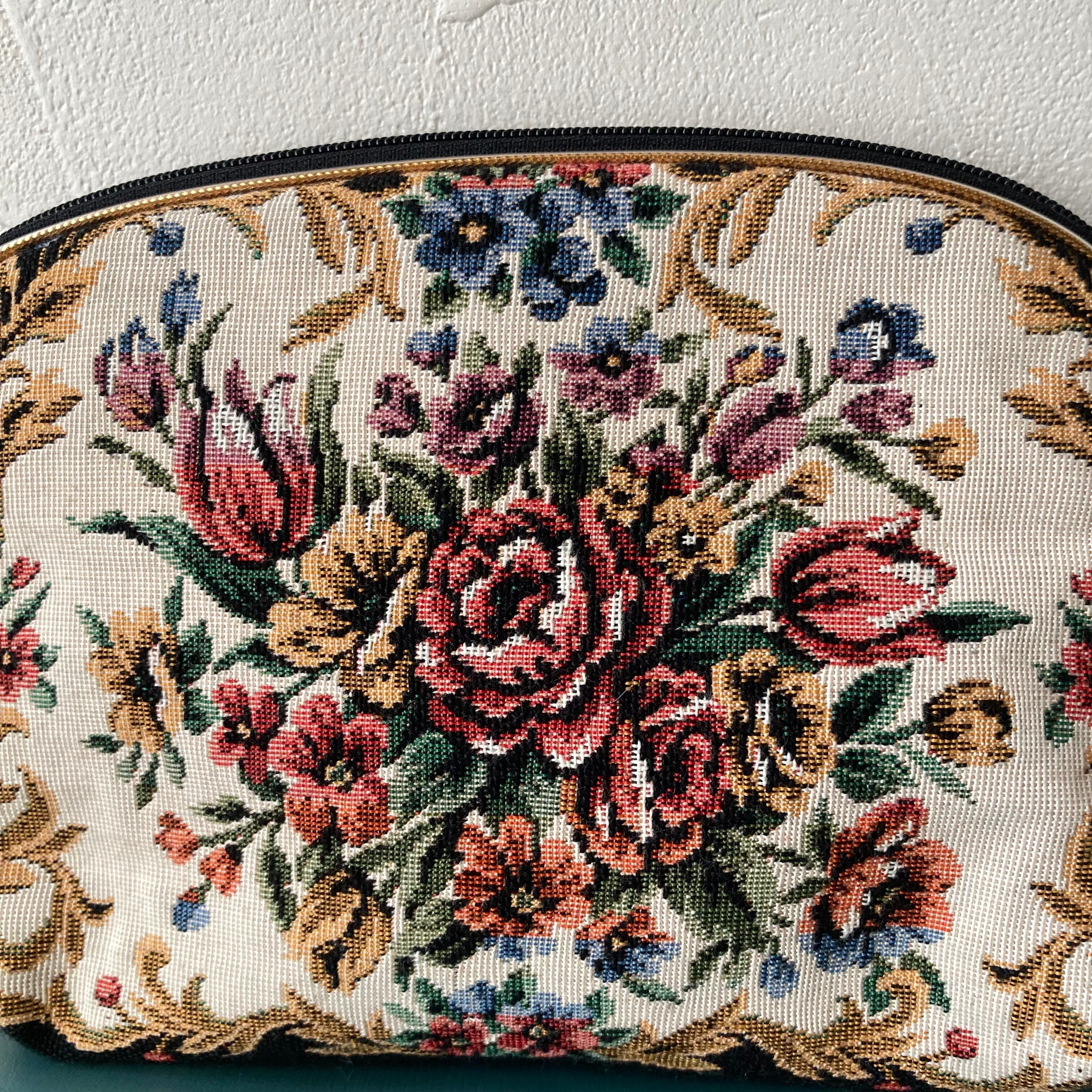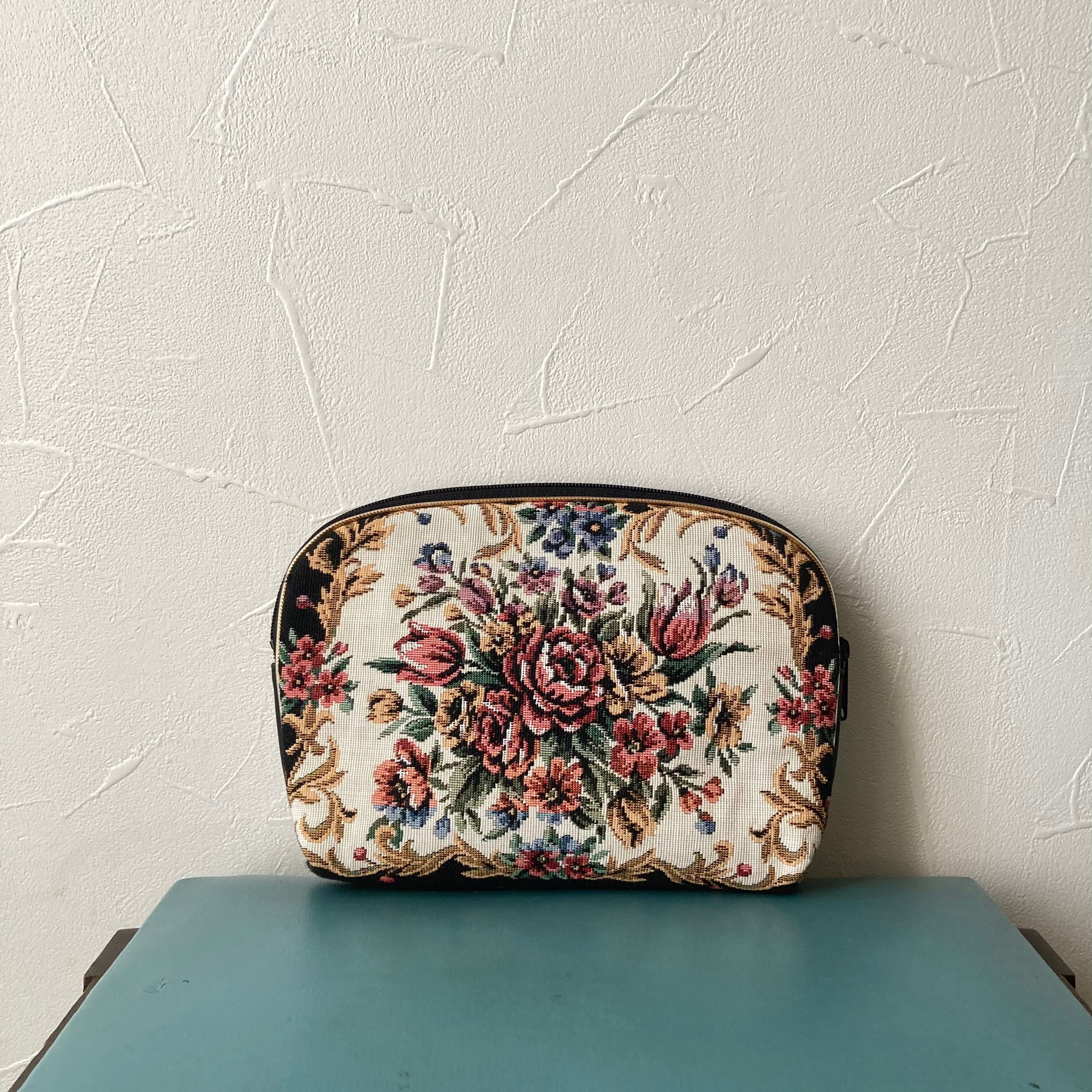 エレガントな花柄ポーチ 昭和レトロ 古着 used vintage