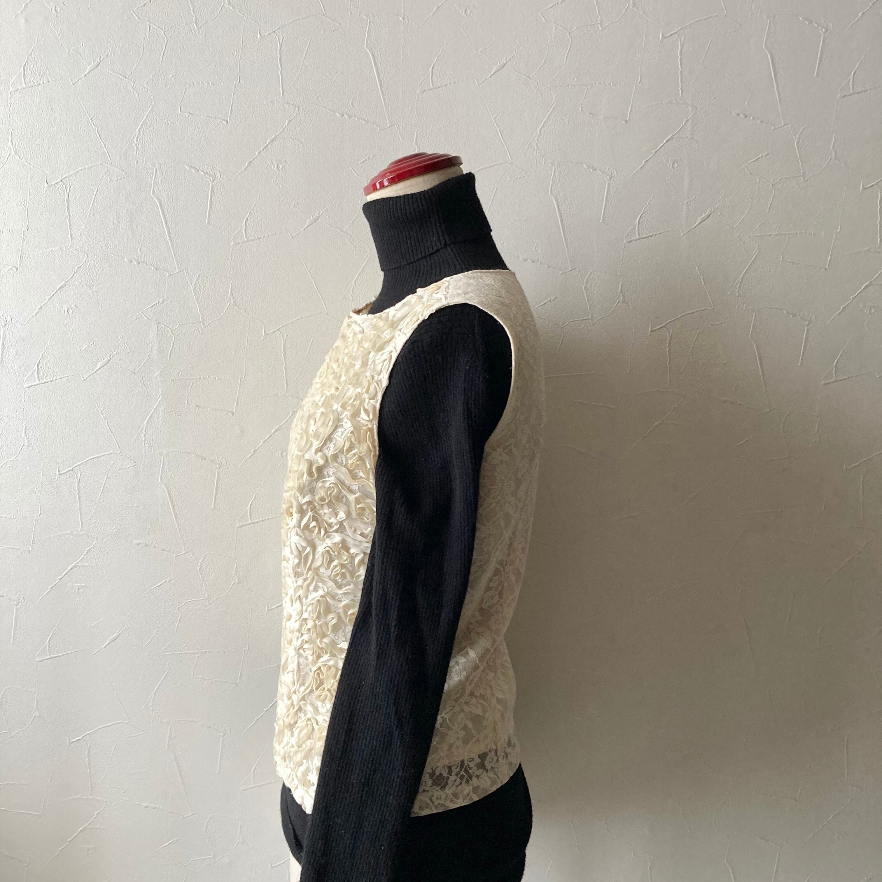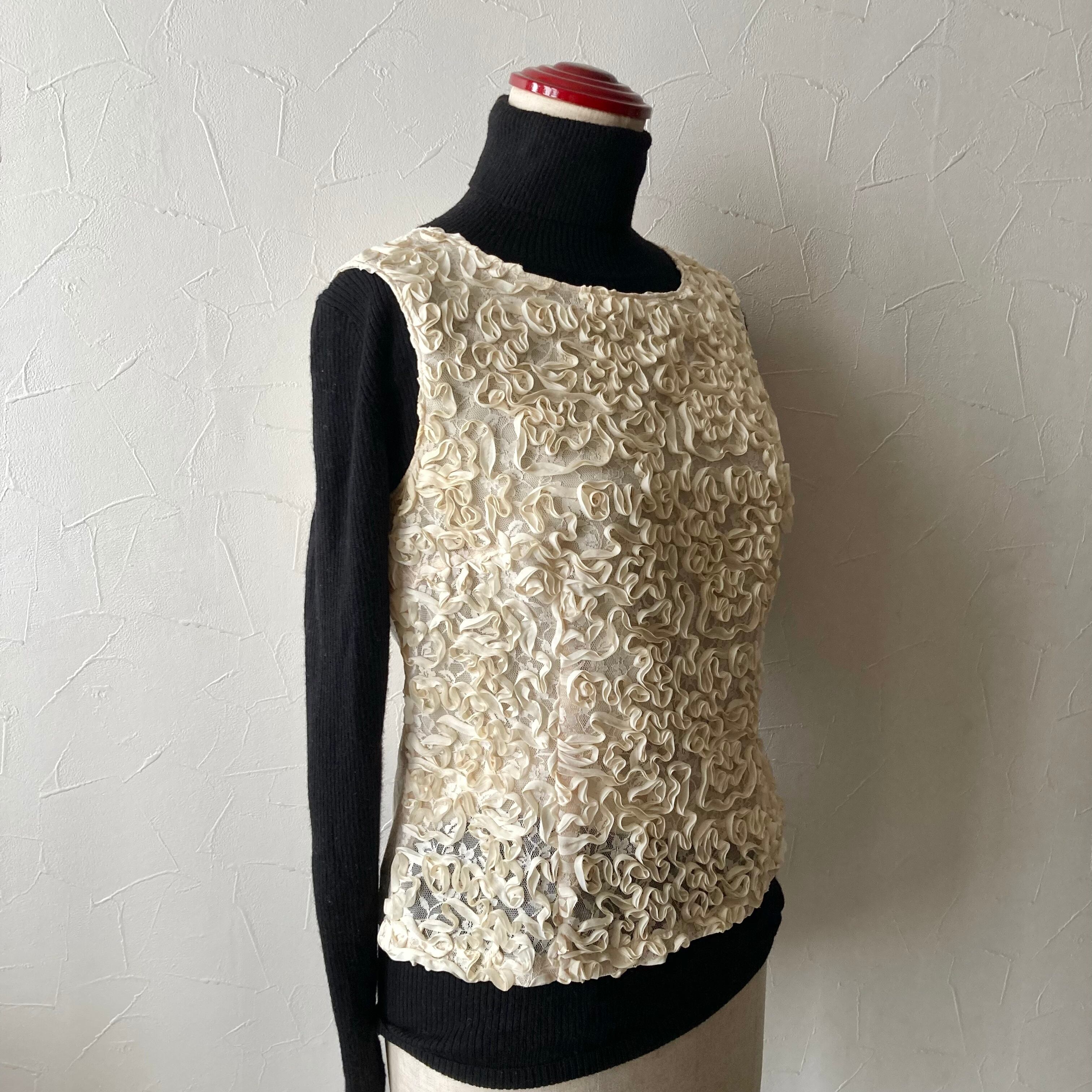 花柄のレースに前はくしゅくしゅと紐のようなレースが施されたステキなデザインのトップス◯