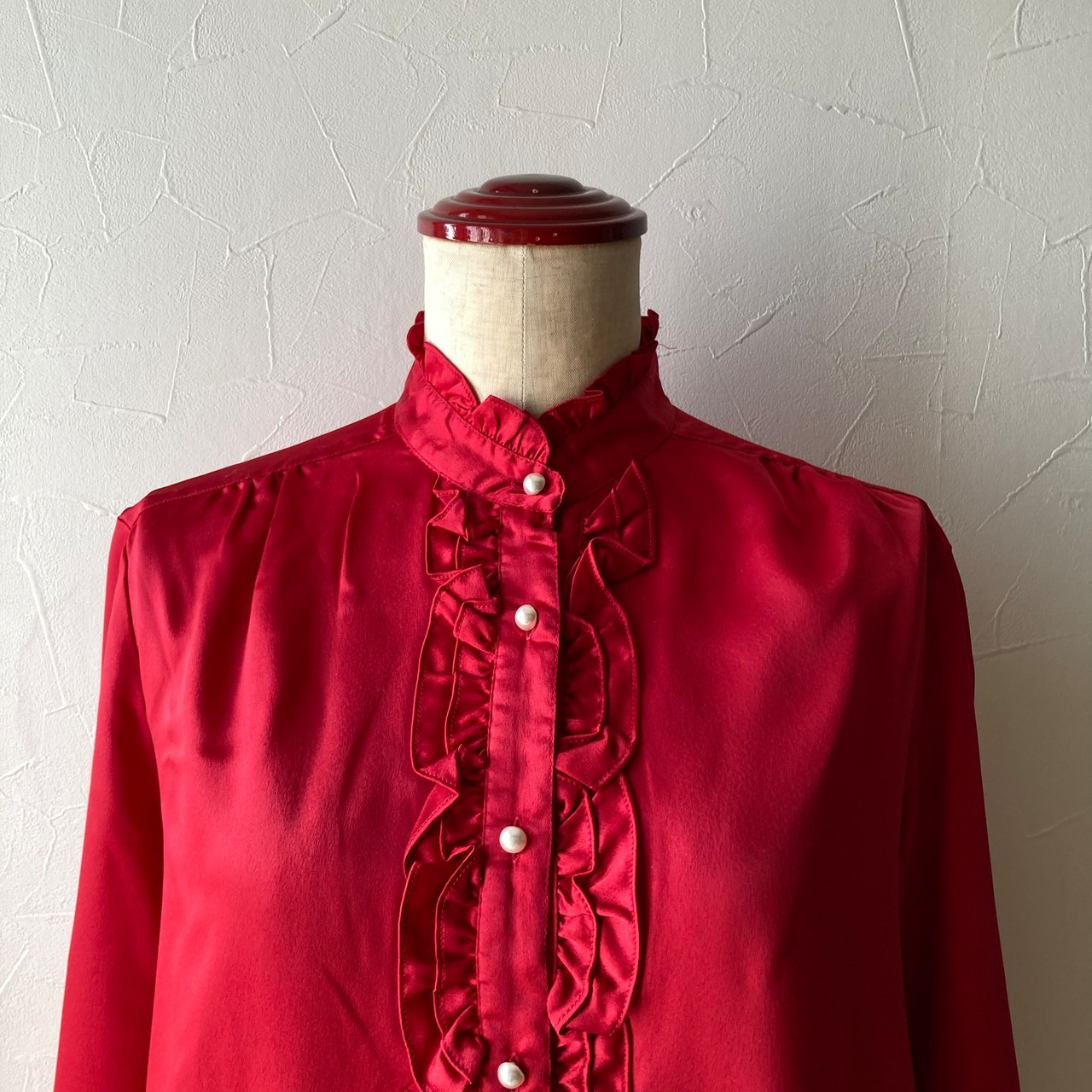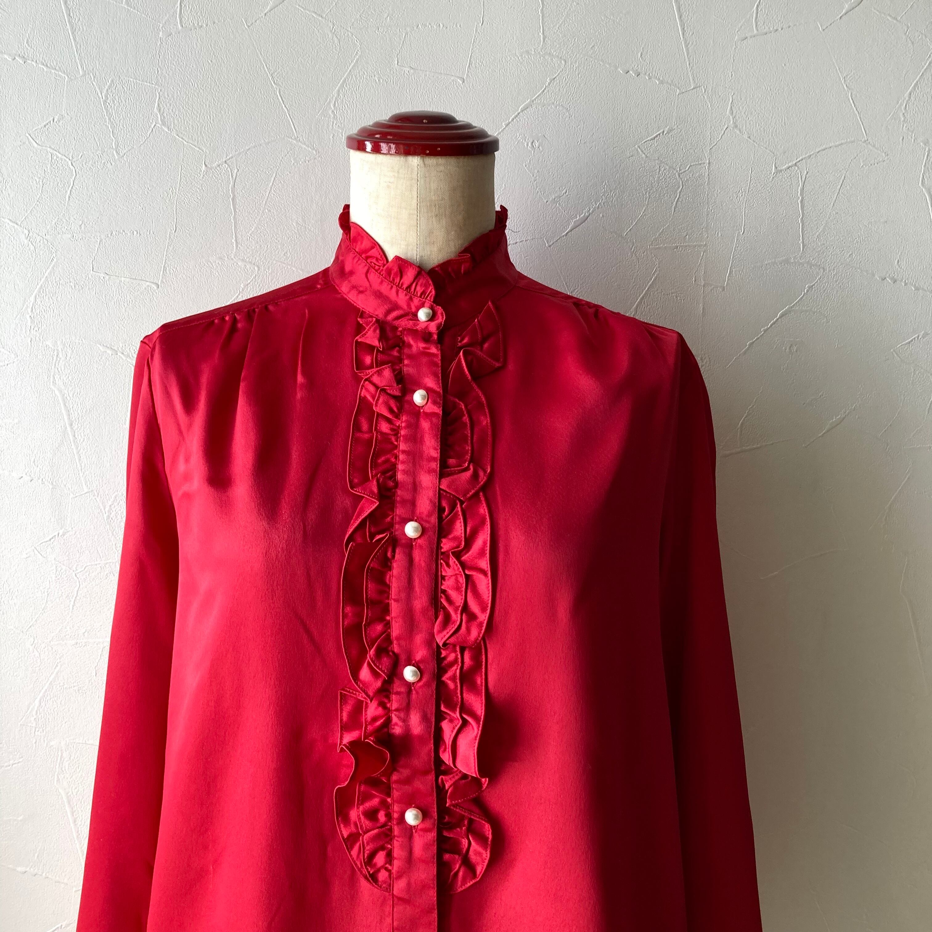 赤色フリルブラウス 昭和レトロ 古着 used vintage