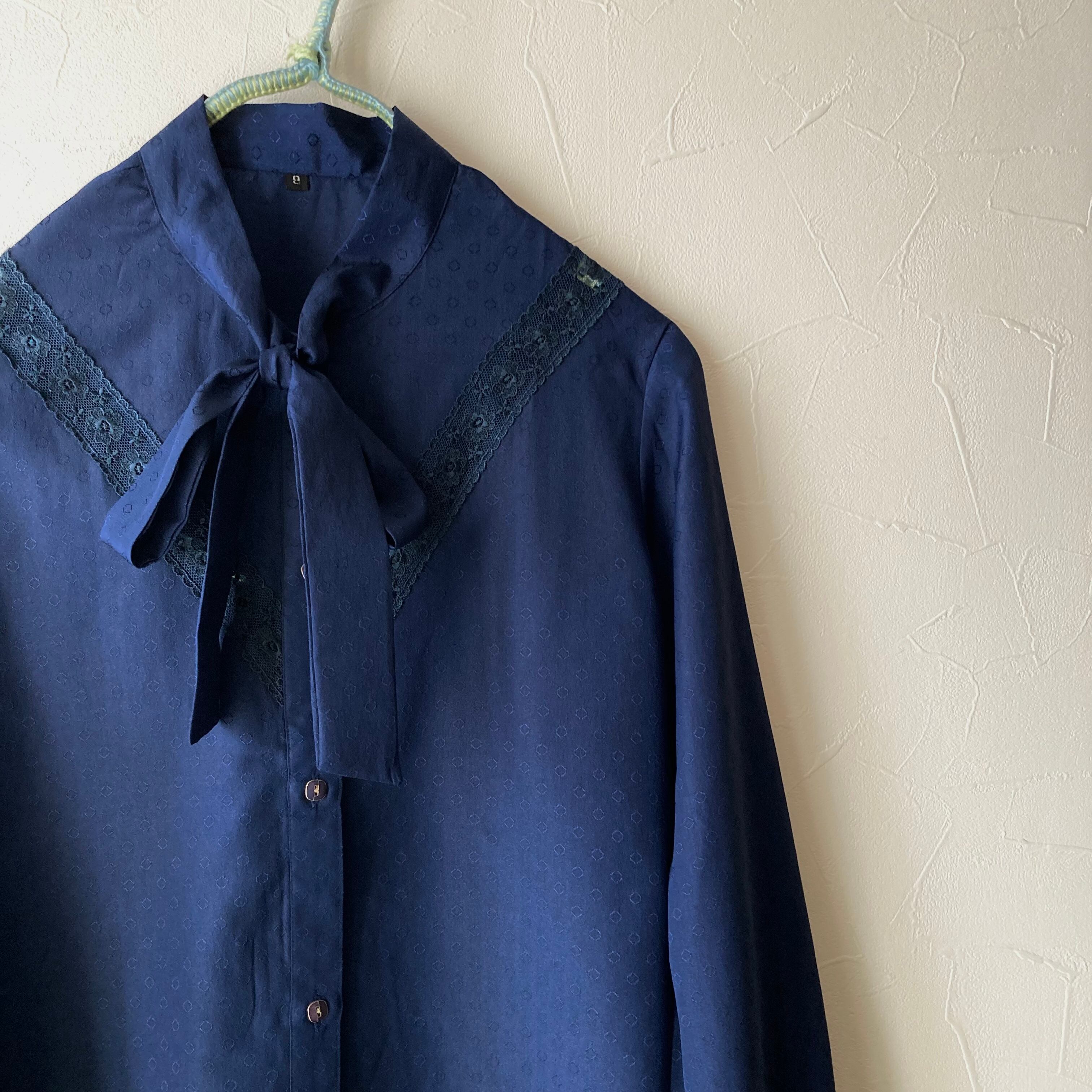 ネイビーレースリボンブラウス 昭和レトロ 古着 used vintage