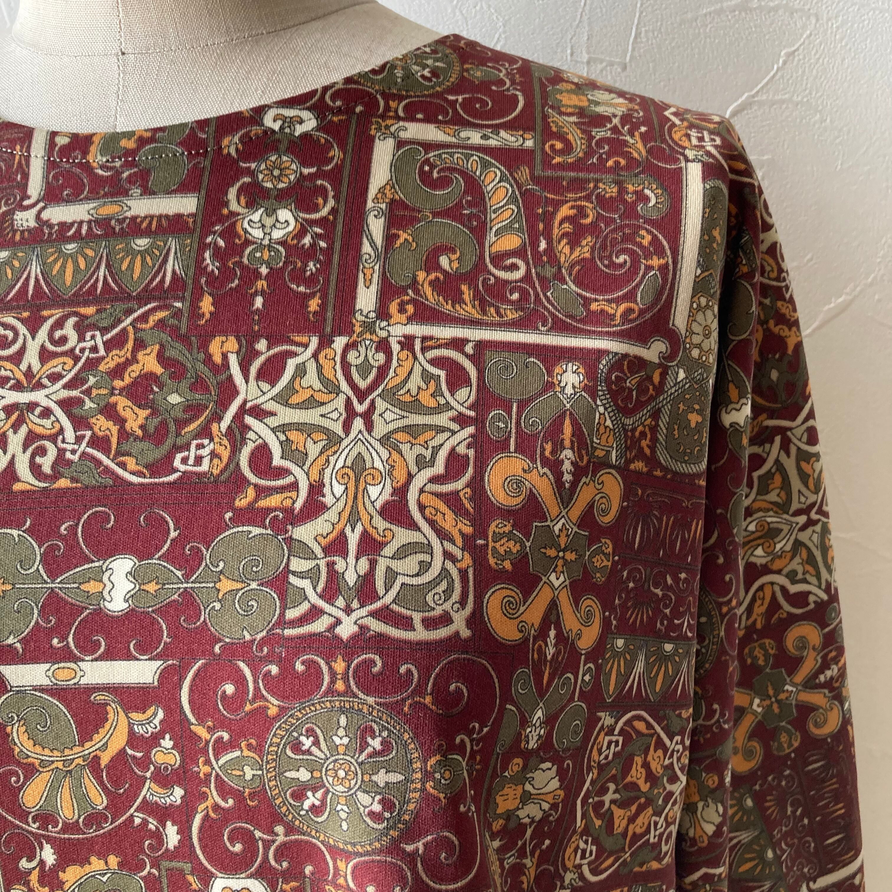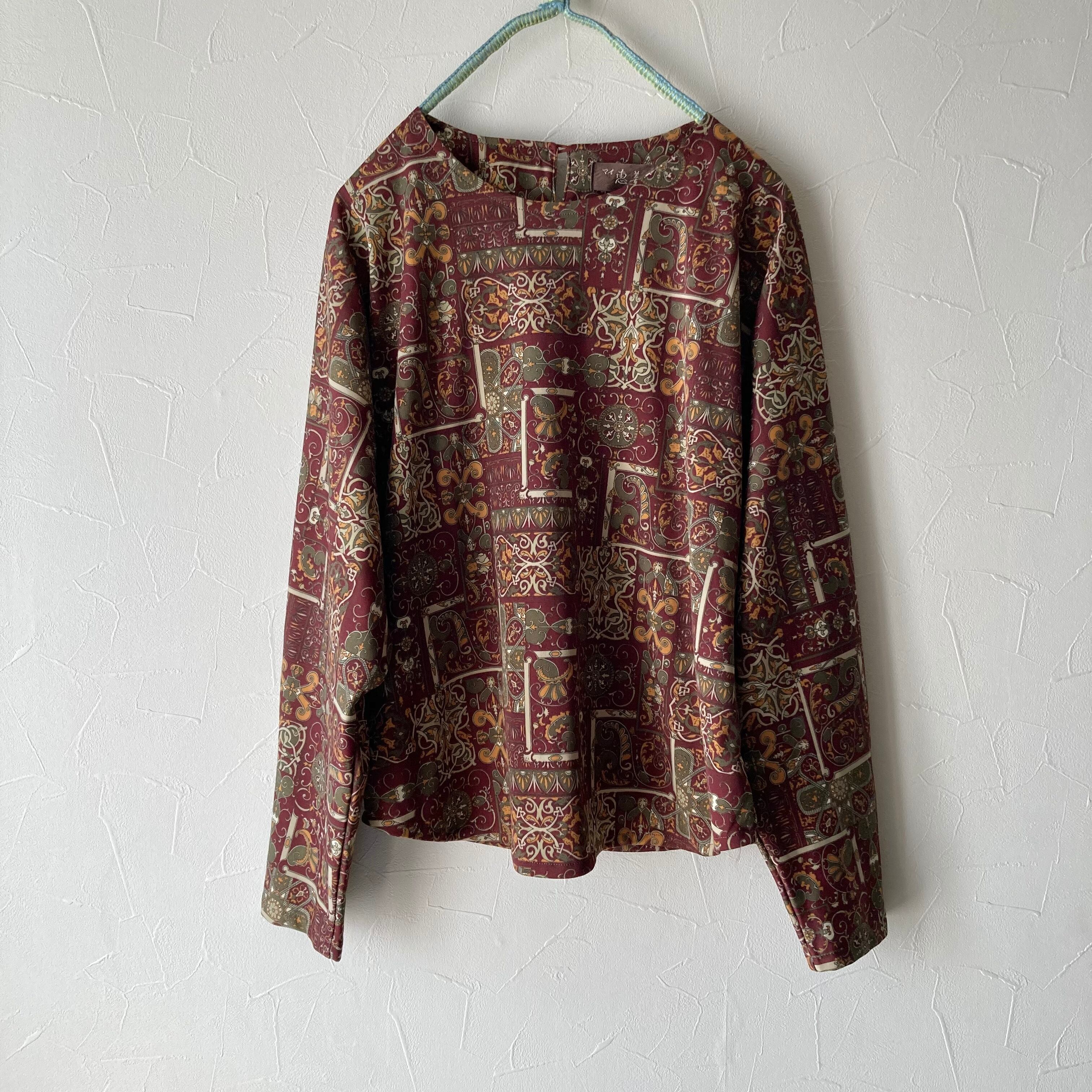 アラベスク柄ノーカラーブラウス 昭和レトロ 古着 used vintage