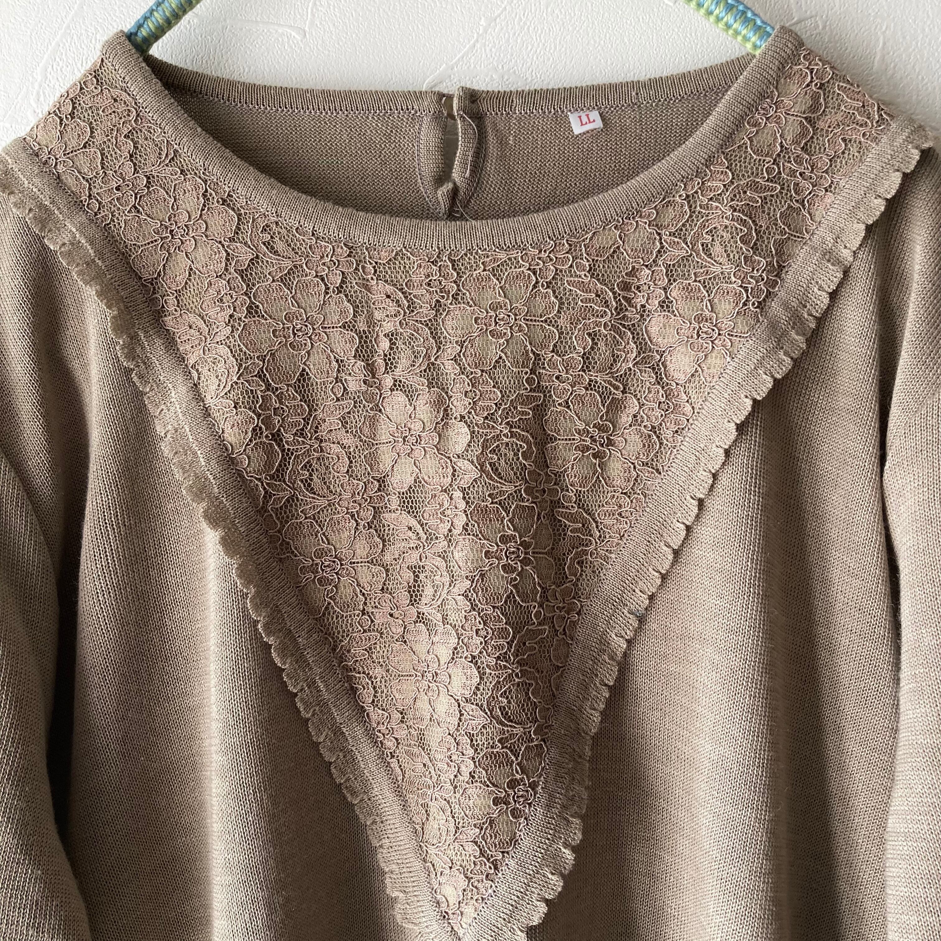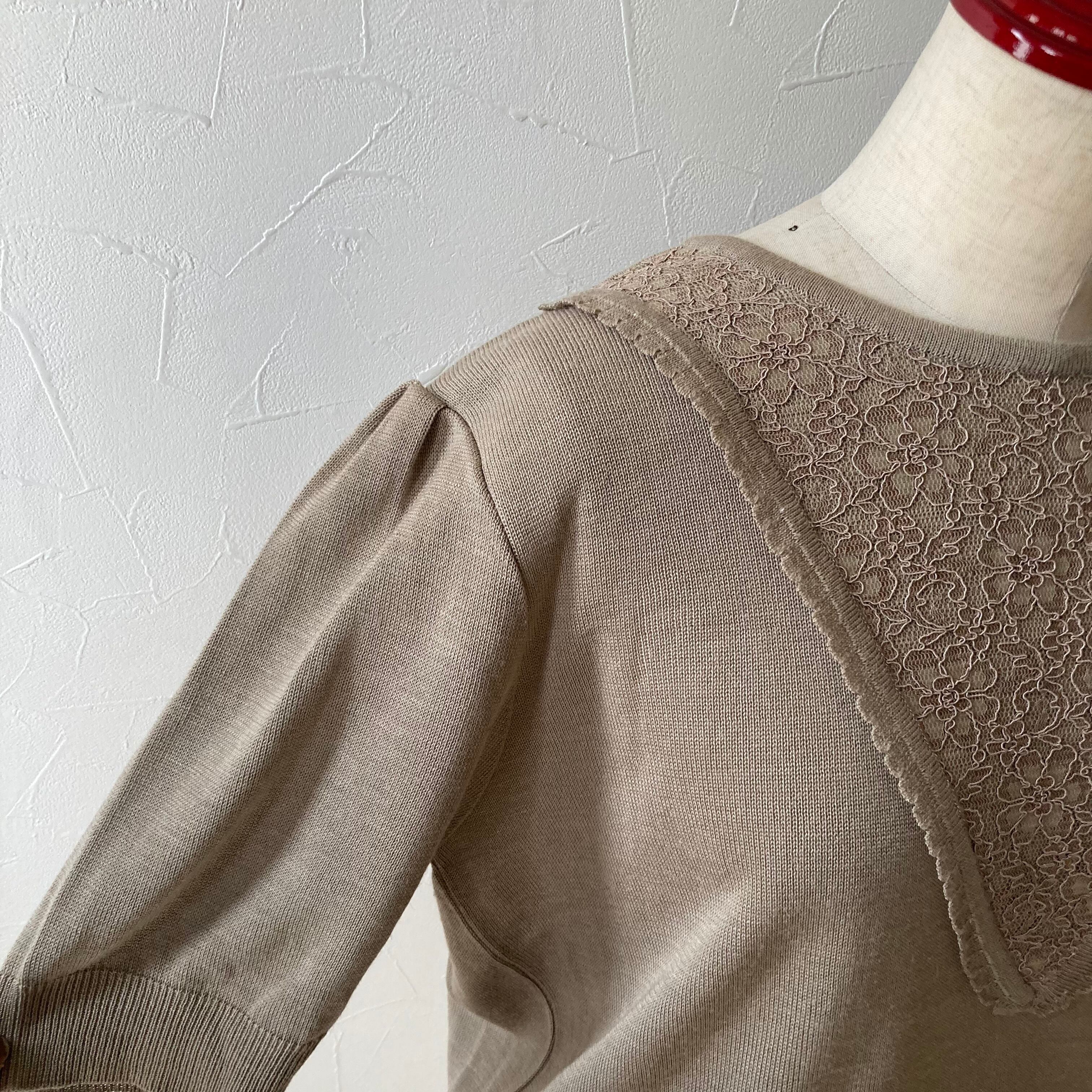 レースデザイン半袖ニットトップス 昭和レトロ vintage 古着 used