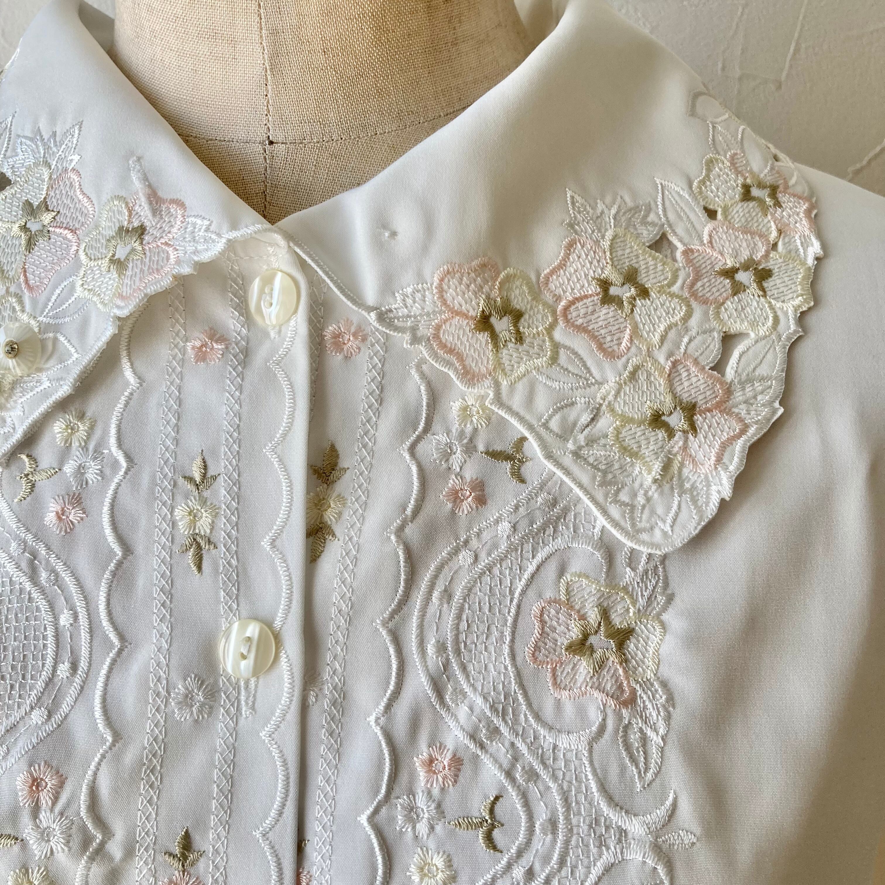 2way花刺繍襟ブラウス 昭和レトロ 古着 used viu