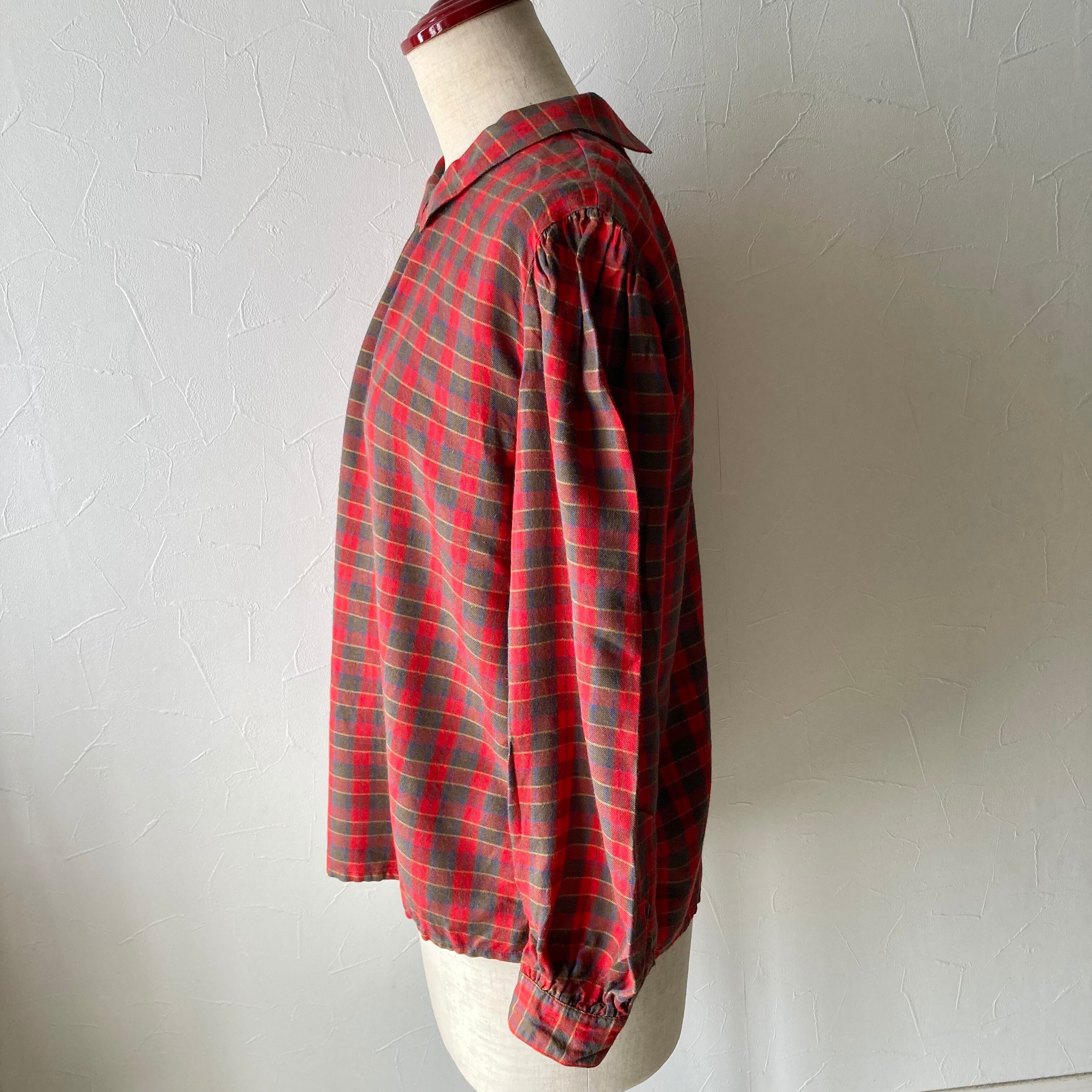赤とカーキのチェックブラウス 昭和レトロ 古着 used vintage