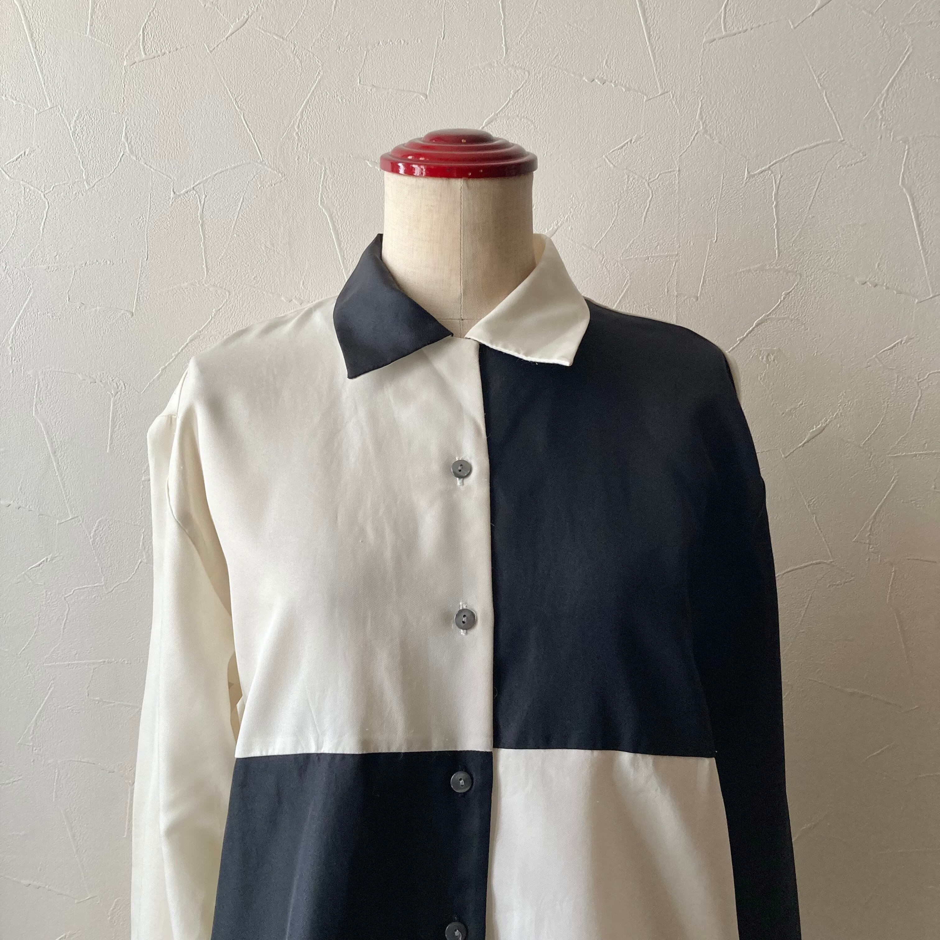 黒白バイカラーブラウス 昭和レトロ 古着 used vintage