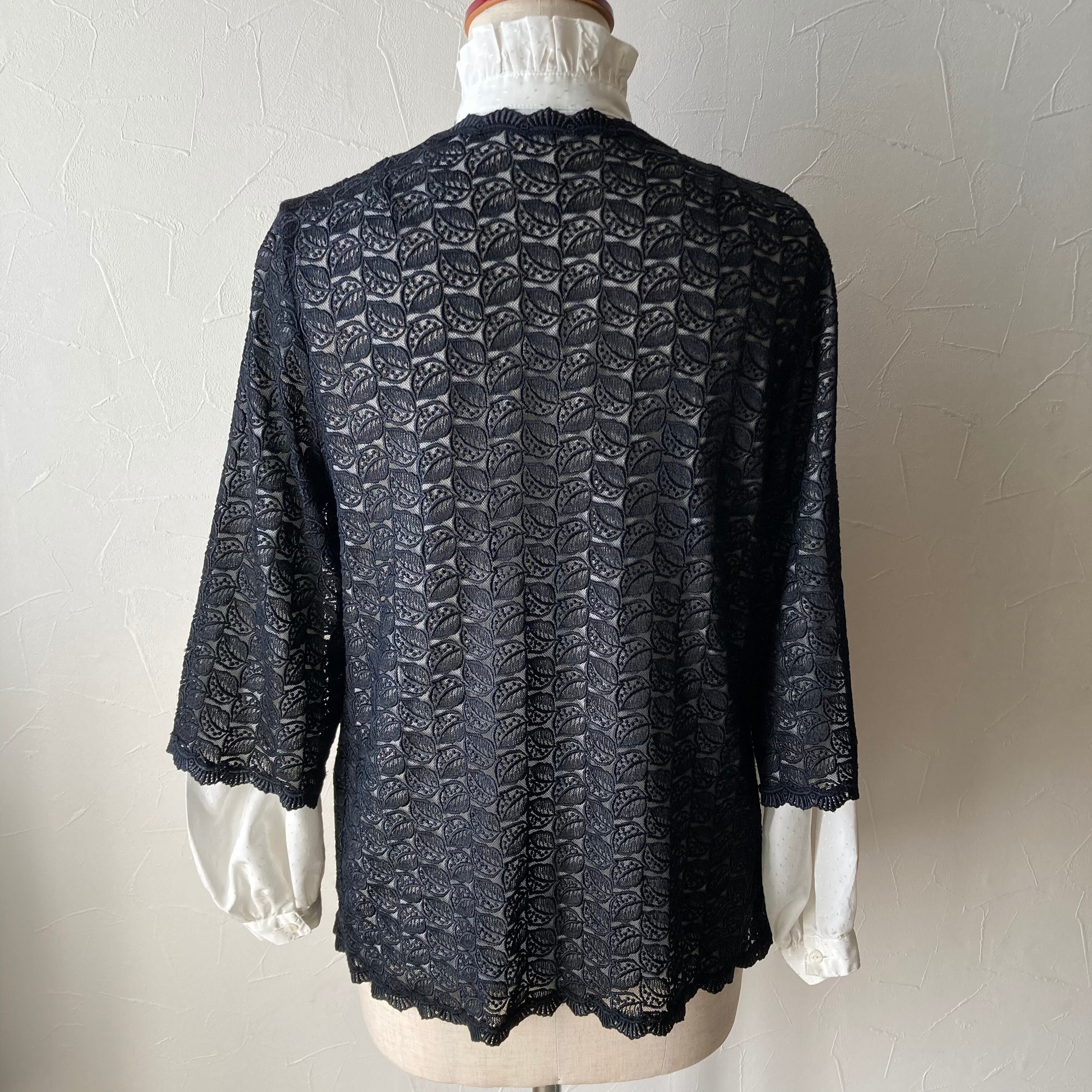 リーフレース刺繍カーディガン 昭和レトロ 古着 used vintage