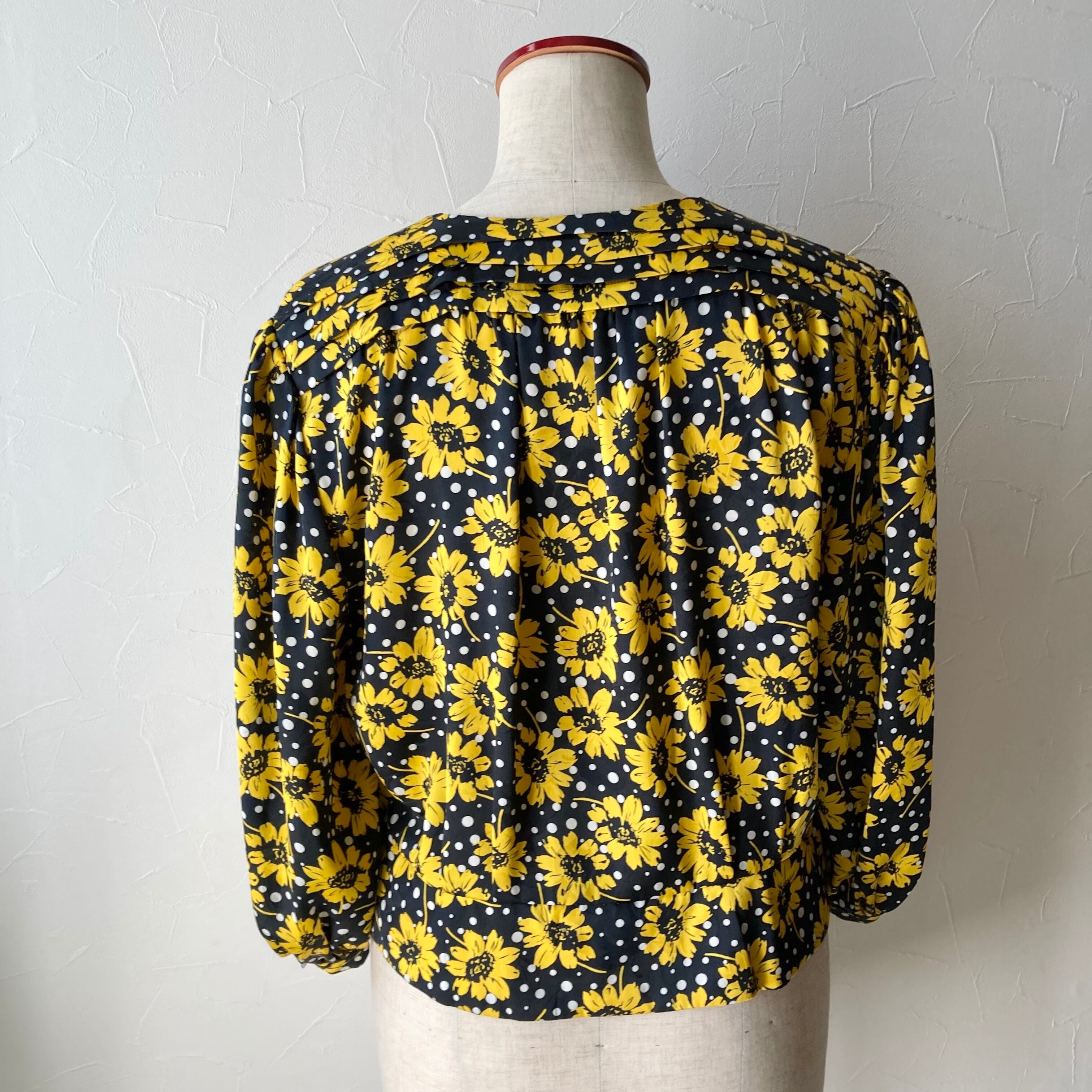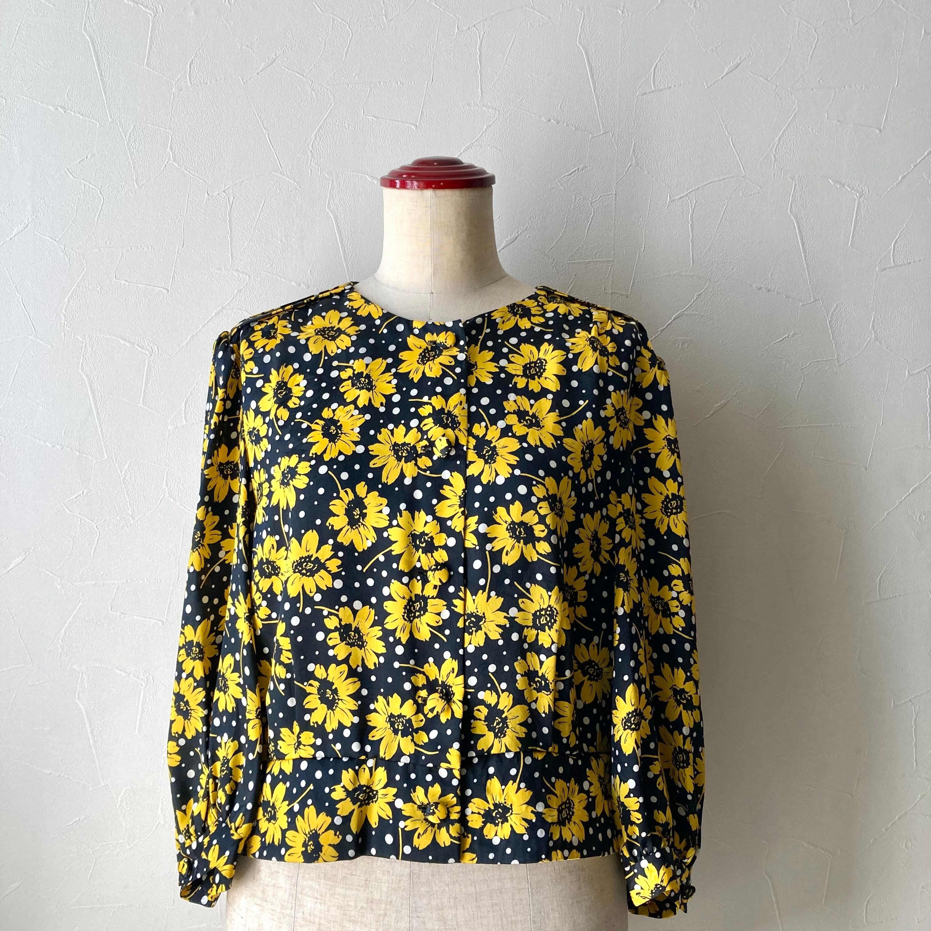 黄色いお花の七分袖ブラウス 昭和レトロ 古着 used vintage