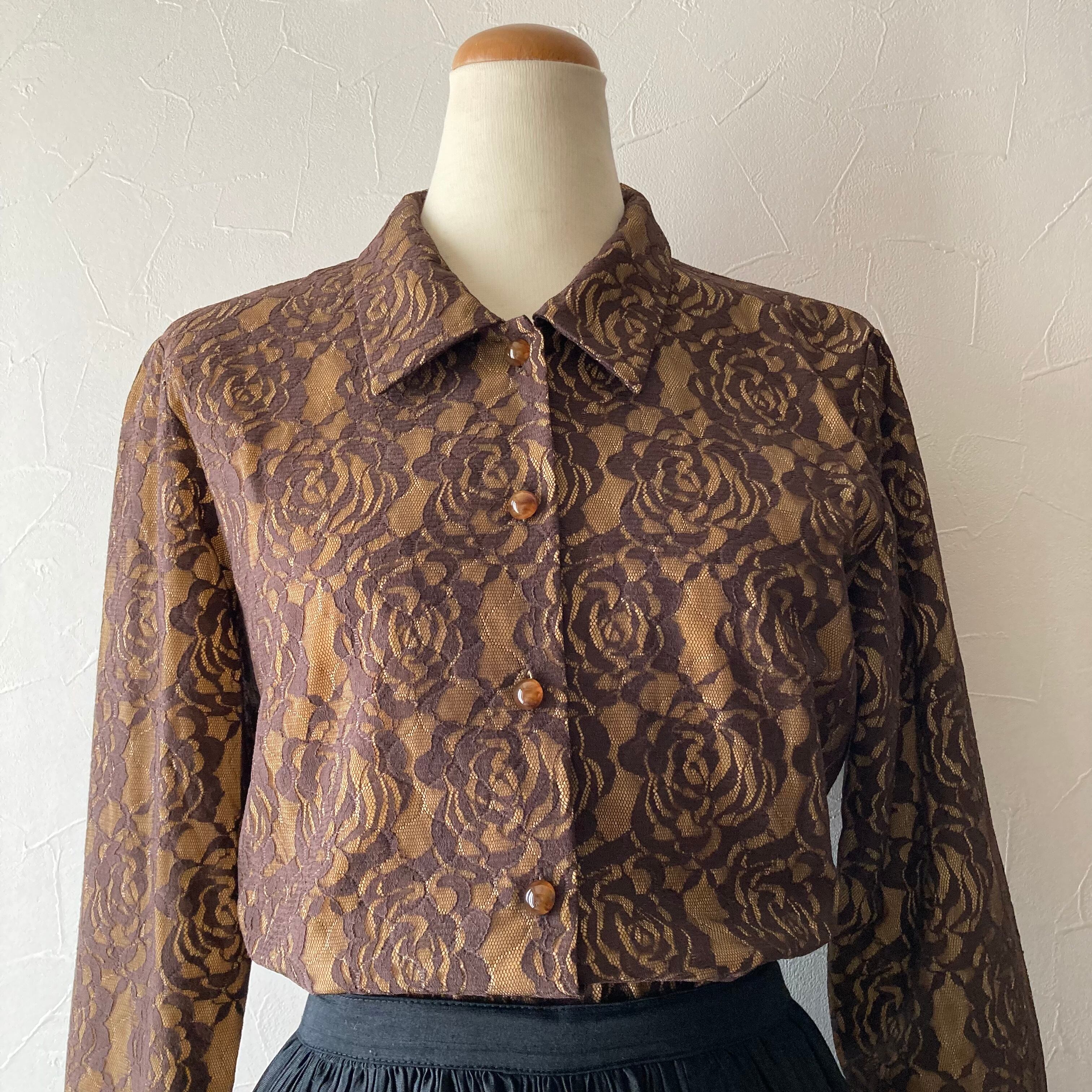 ブラウンのバラ模様のレースが素敵な東京ブラウス製ブラウス◯