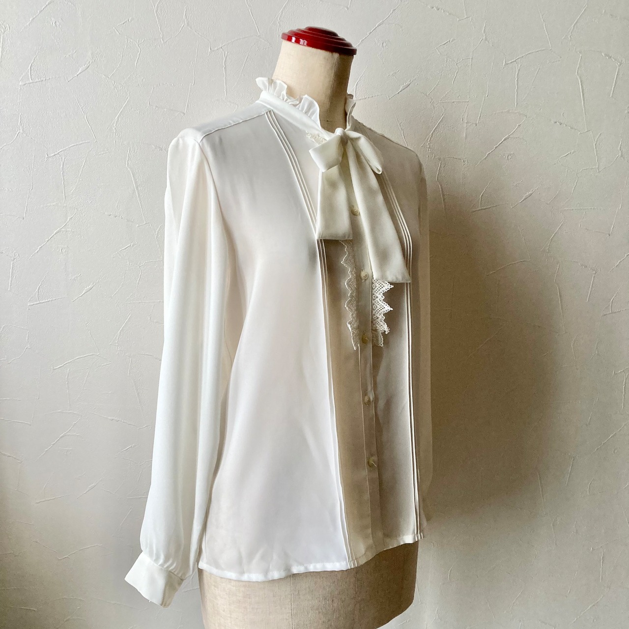 ホワイトレースリボンブラウス 昭和レトロ 古着 used vintage