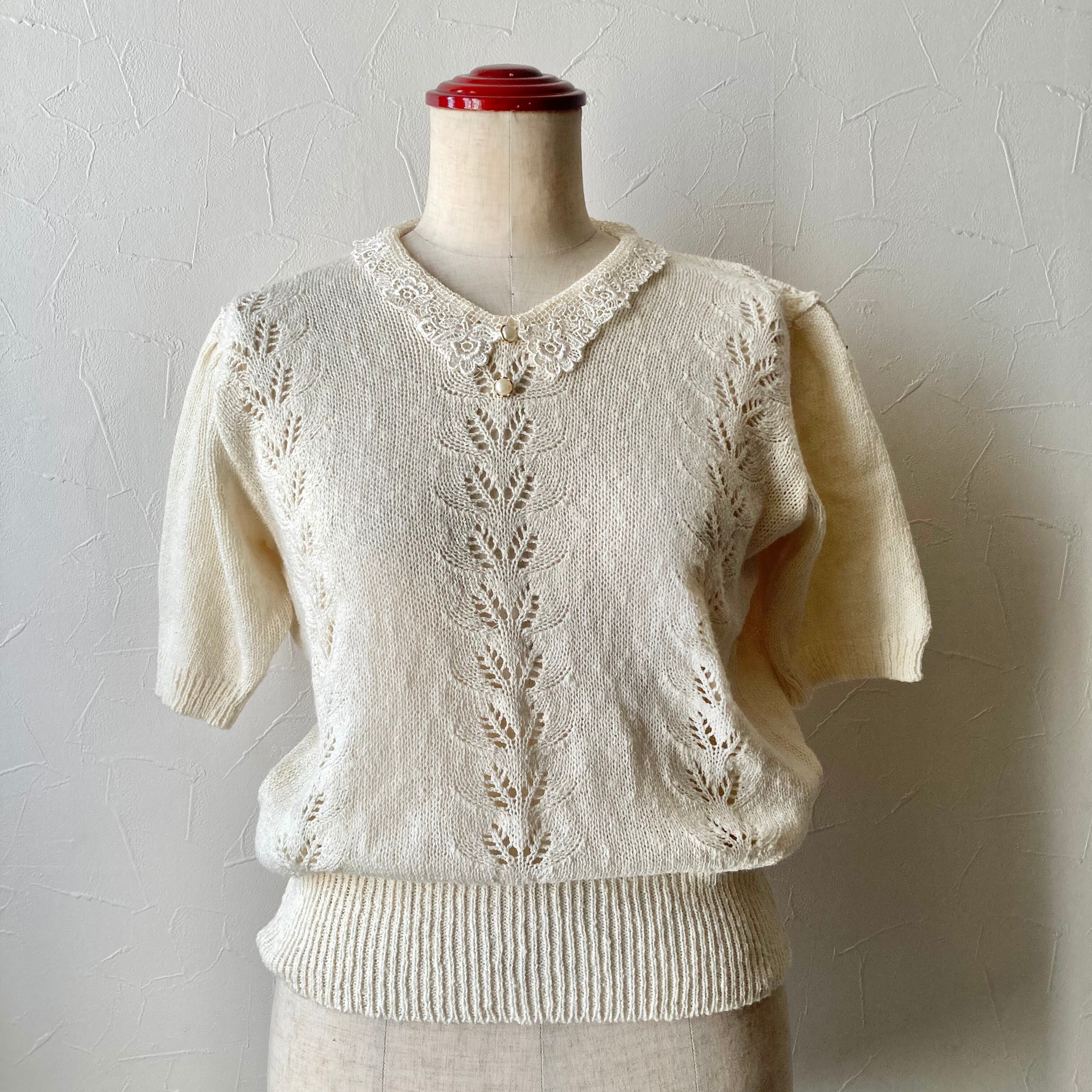 レース襟サマーニット 昭和レトロ 古着 used vintage
