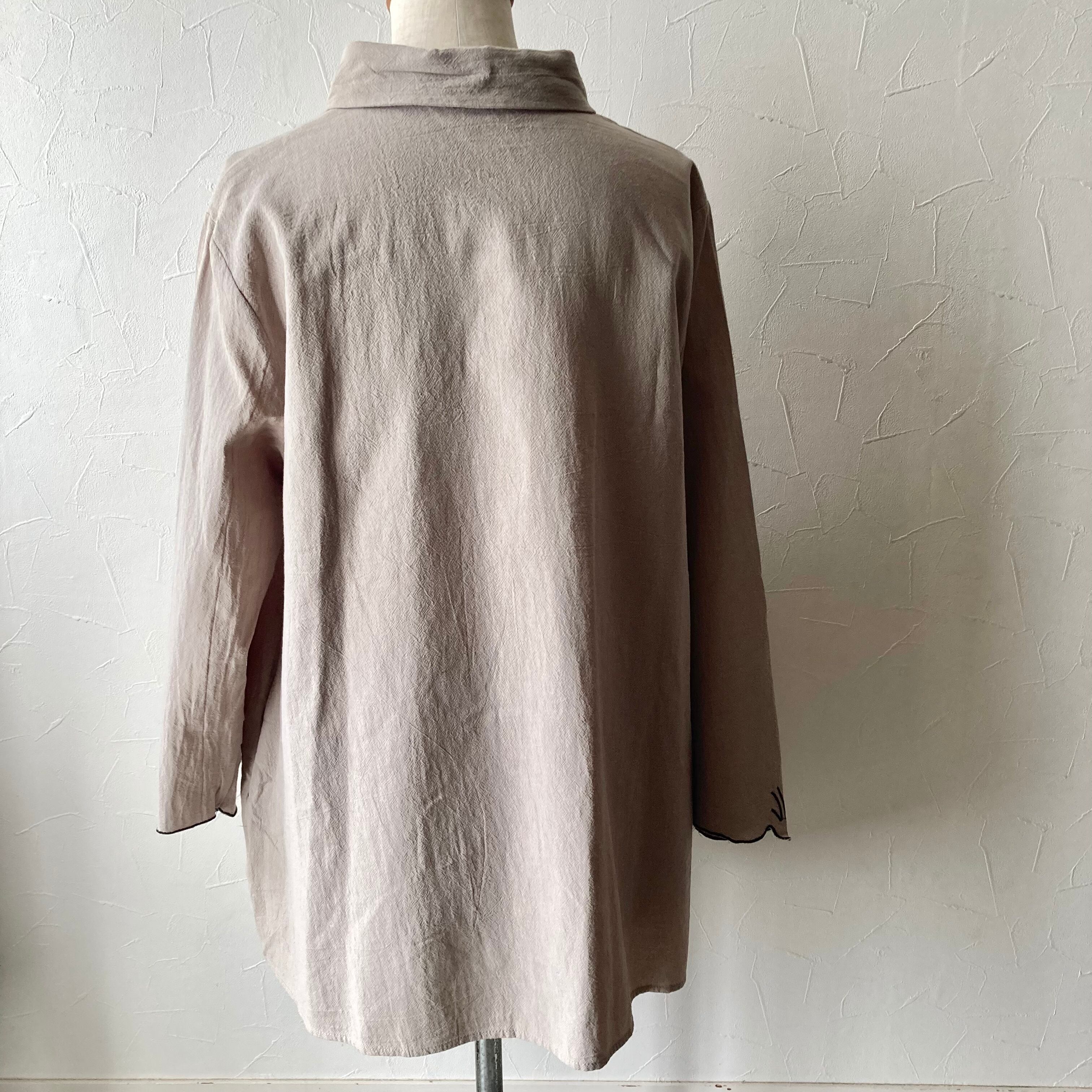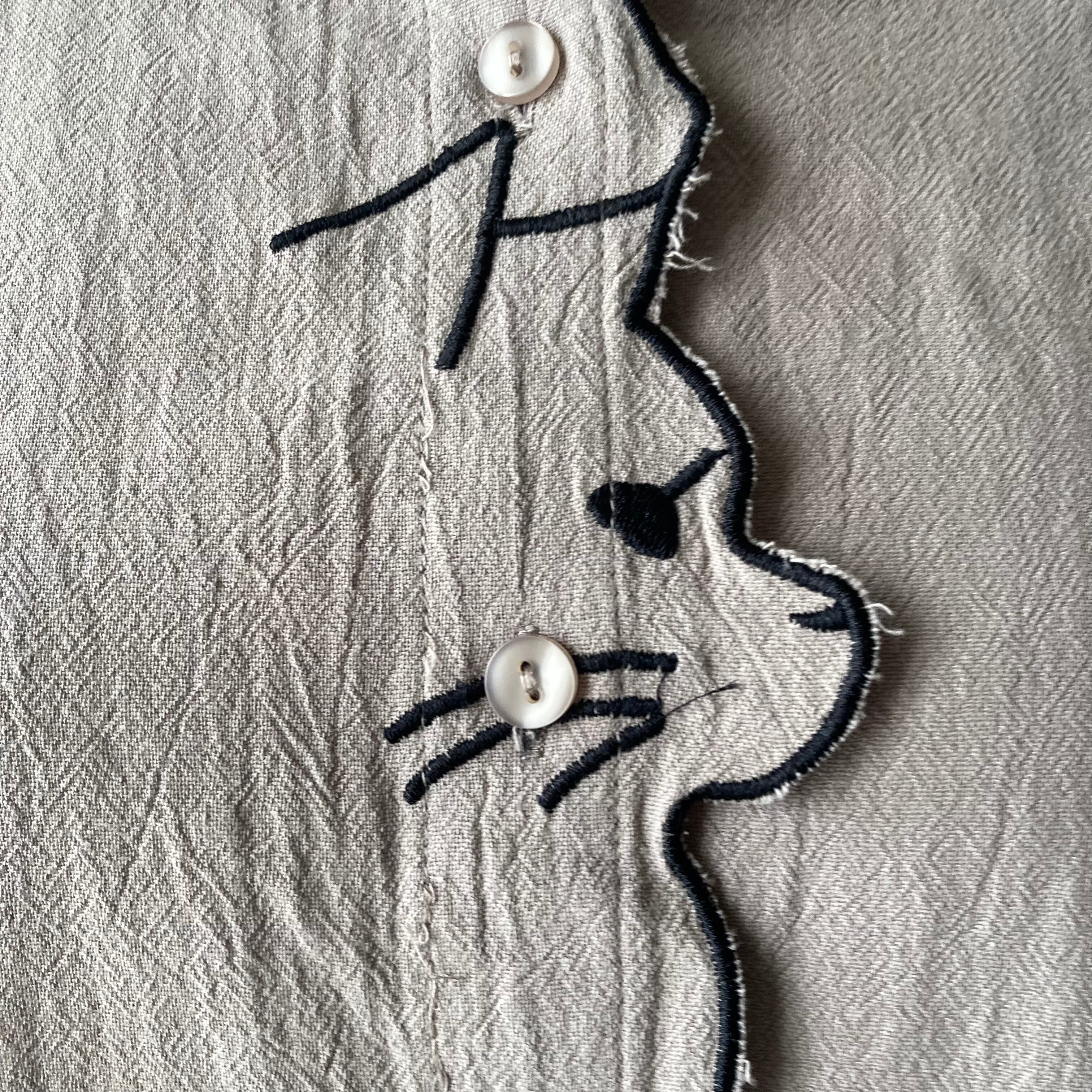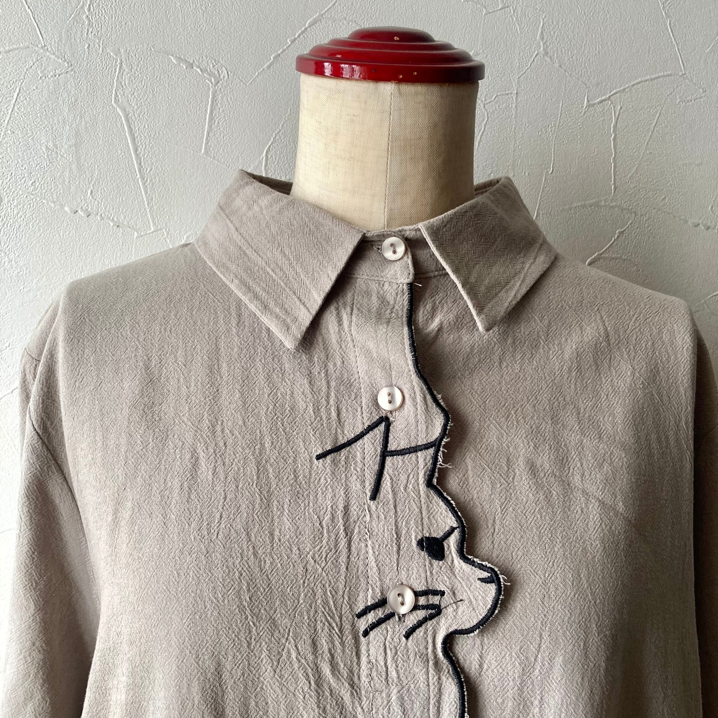猫ちゃんの横顔が並んだユニークな綿のブラウス◯ 袖にも猫ちゃんが刺繍されています♡