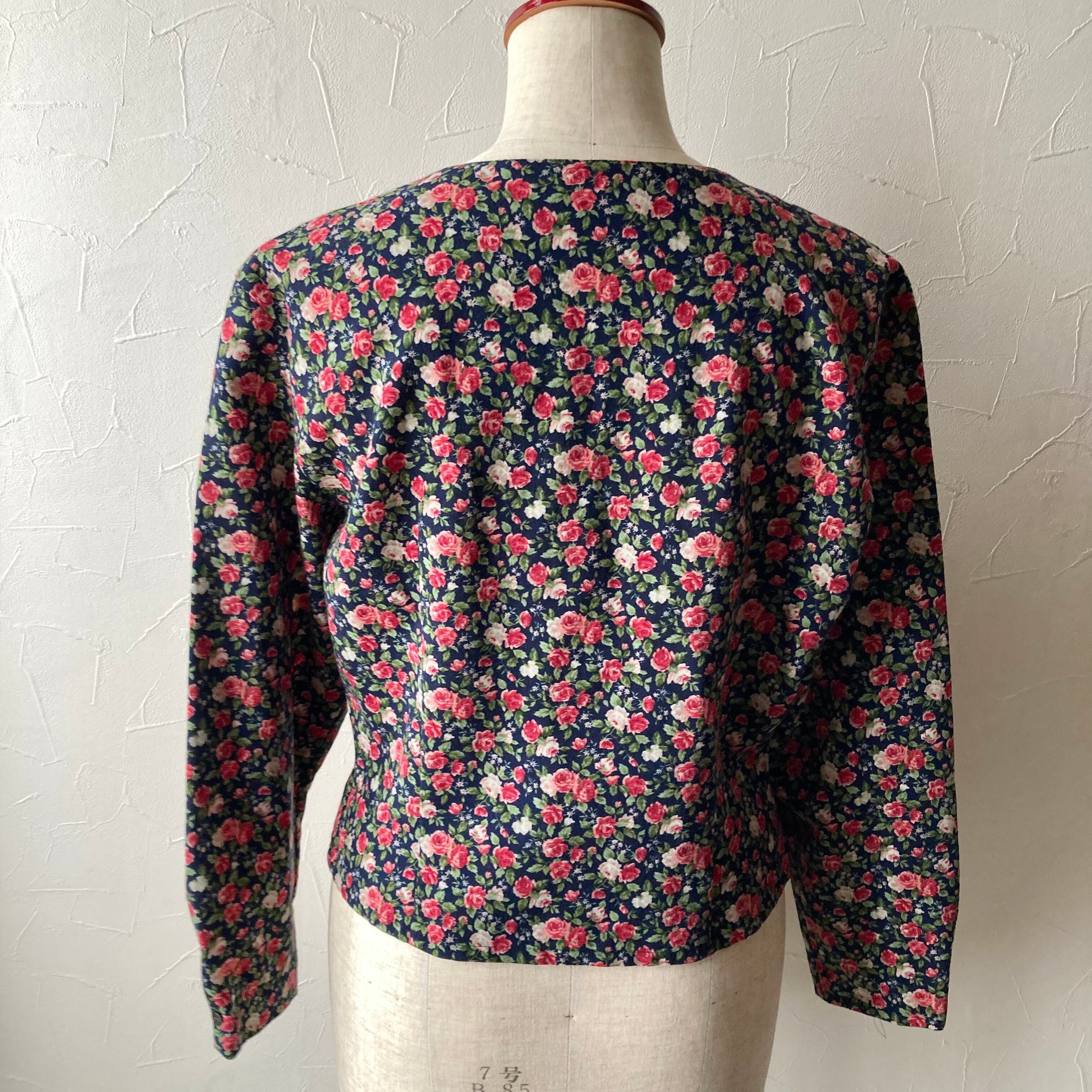 レトロ薔薇ノーカラーブラウス 古着 used 昭和レトロ