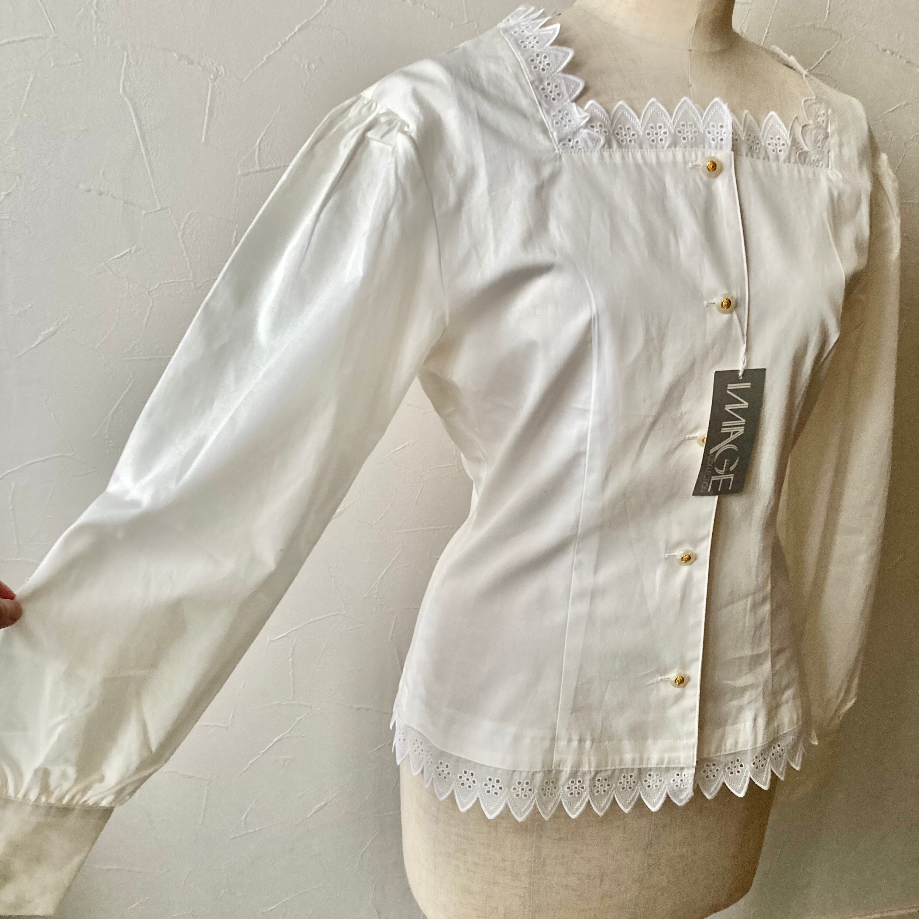 ◯未使用品◯ホワイトレースコットンブラウス 昭和レトロ 古着 used