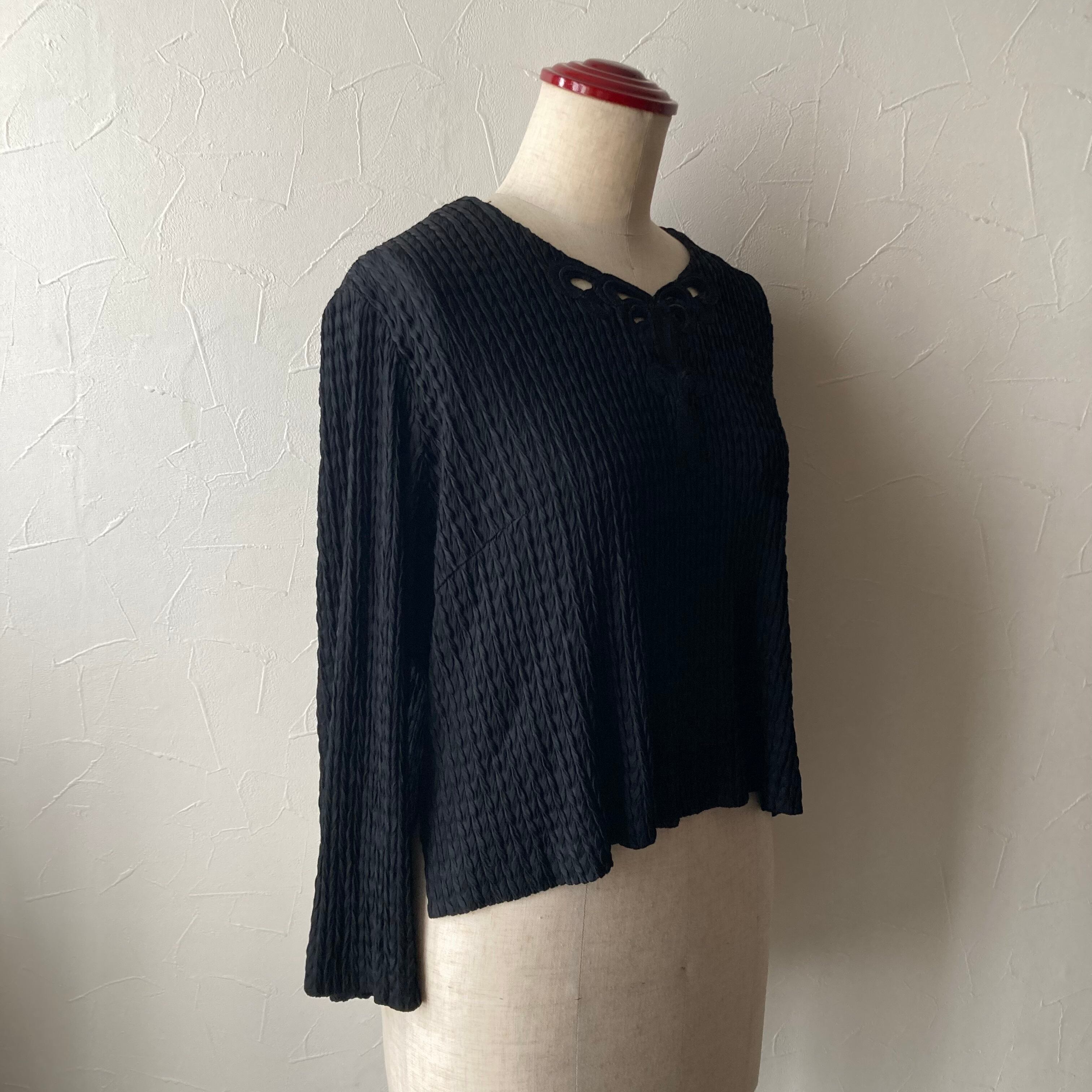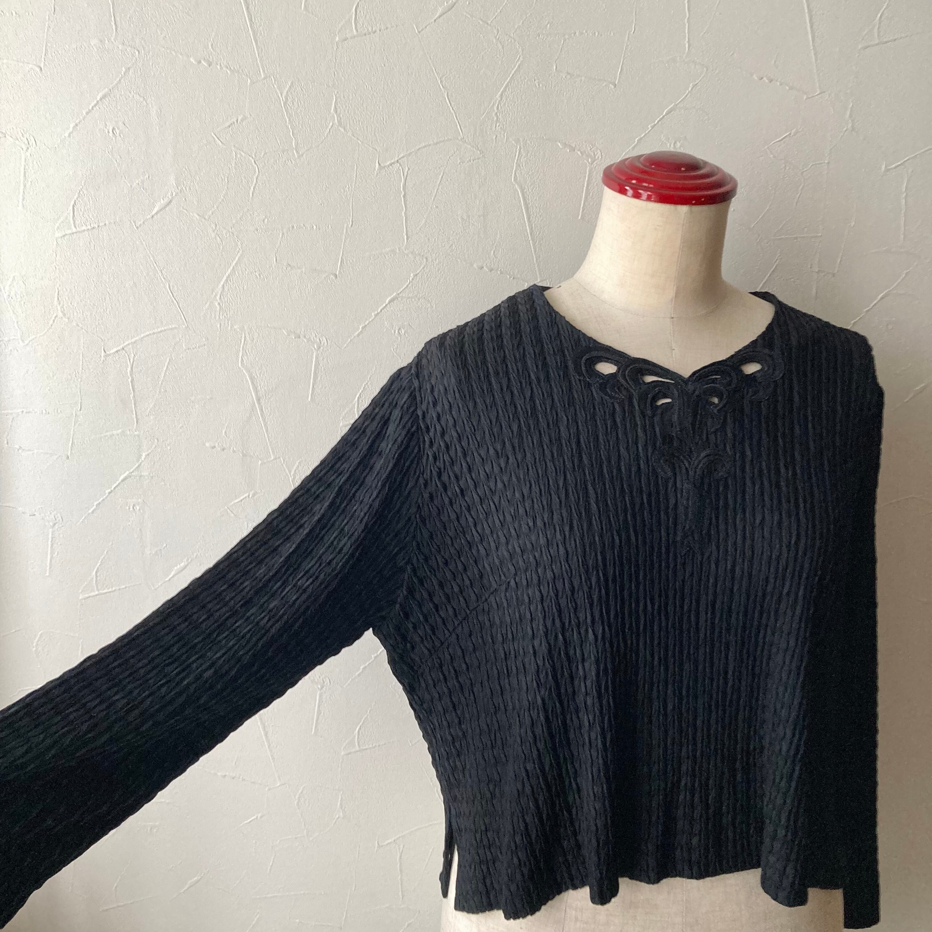 刺繍黒色トップス 昭和レトロ 古着 used vintage