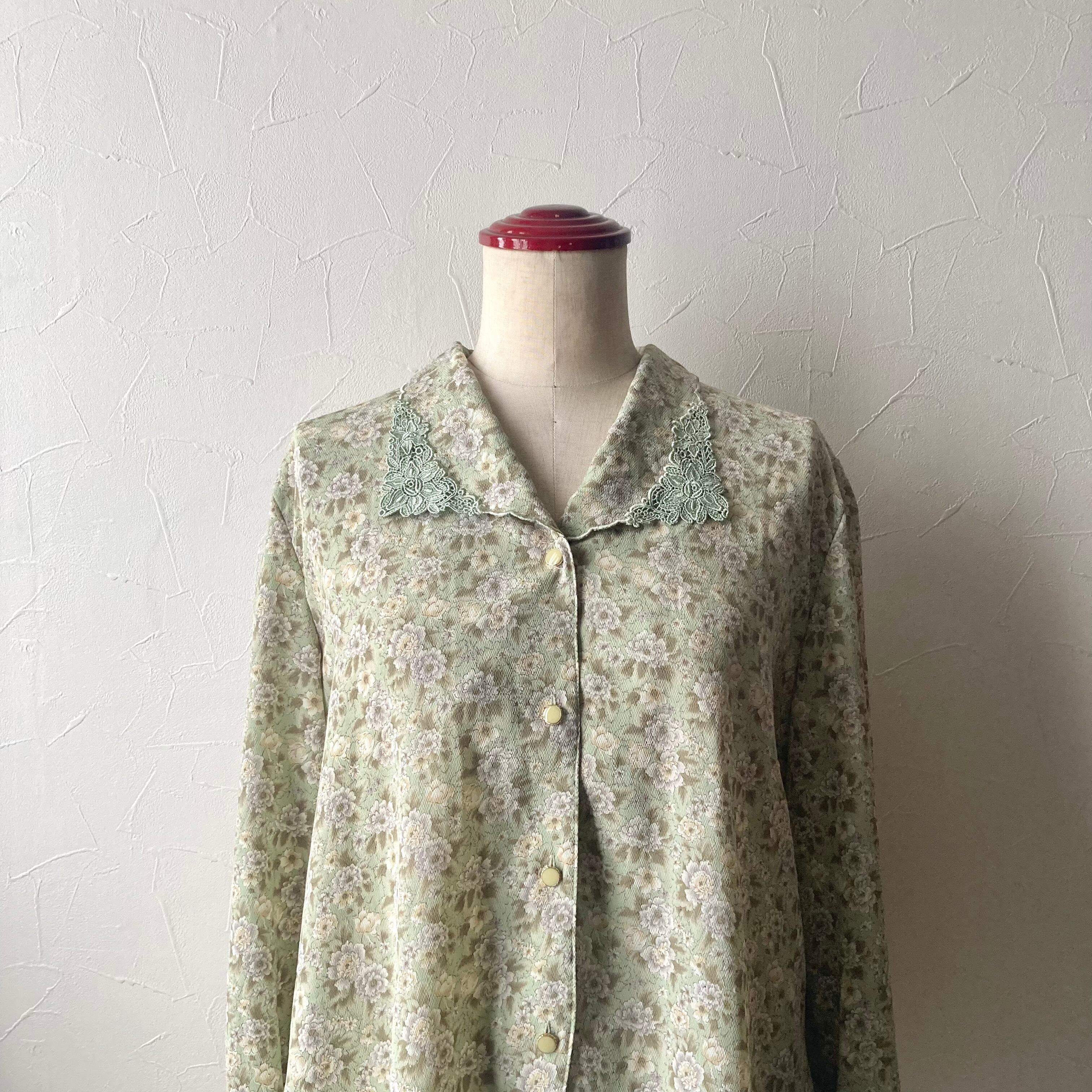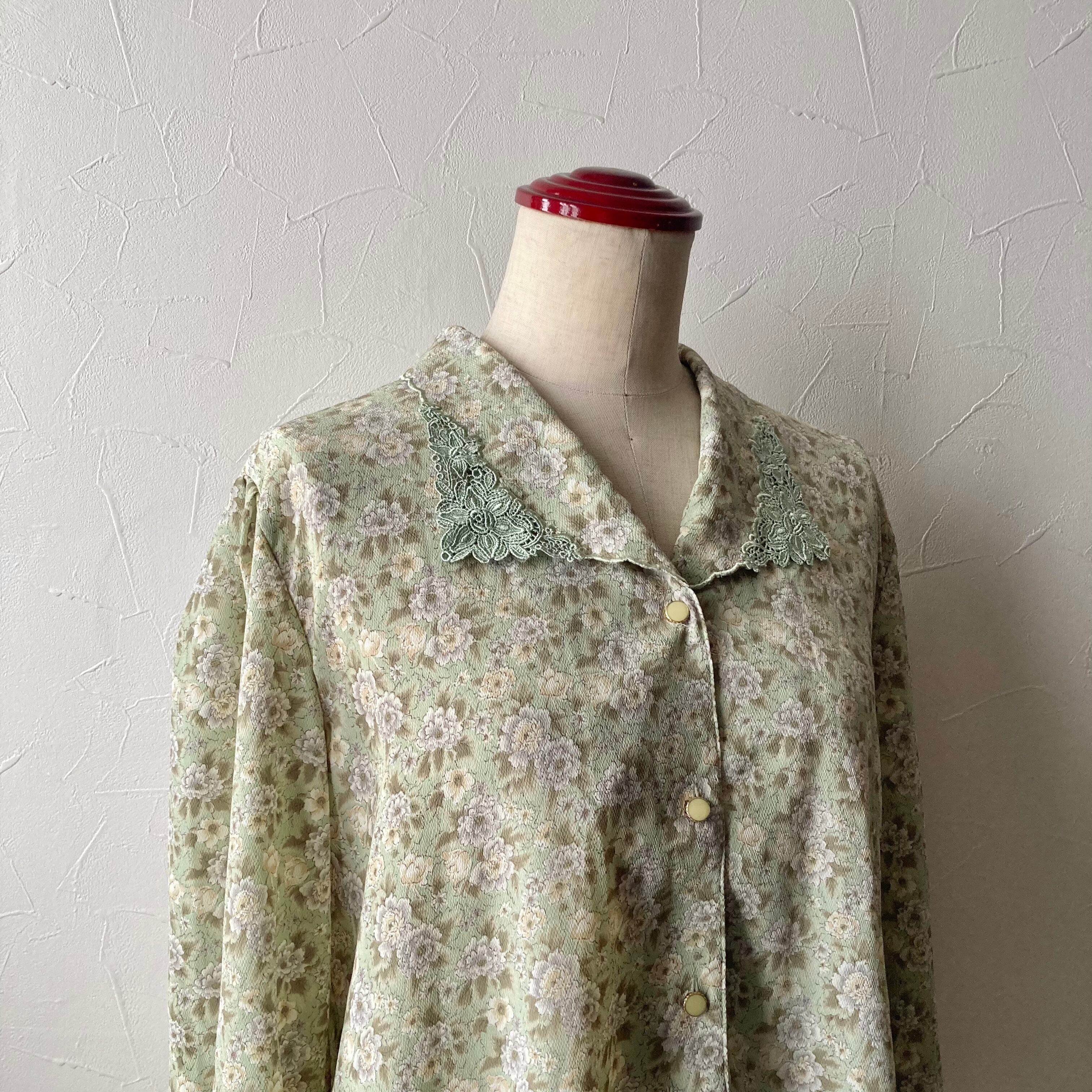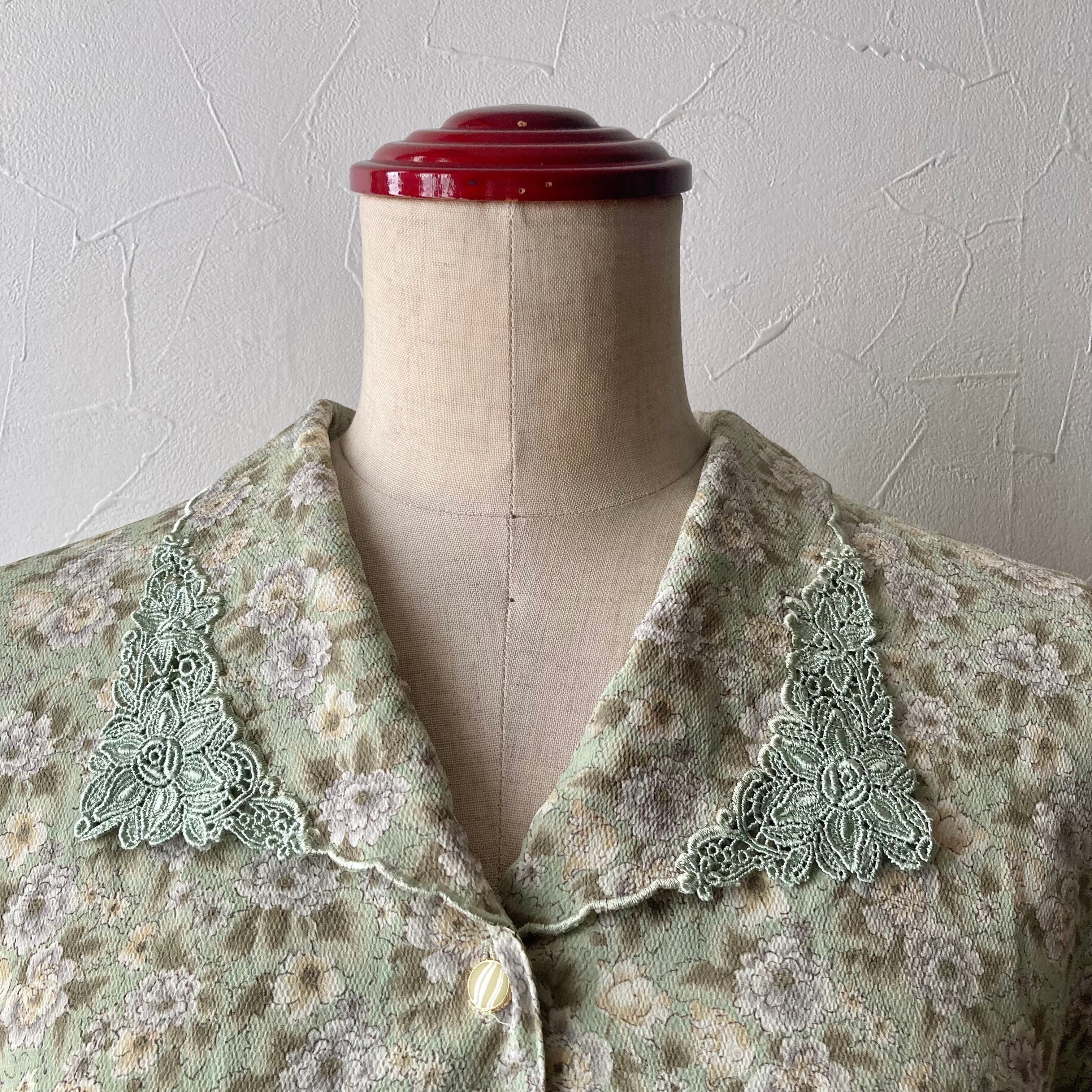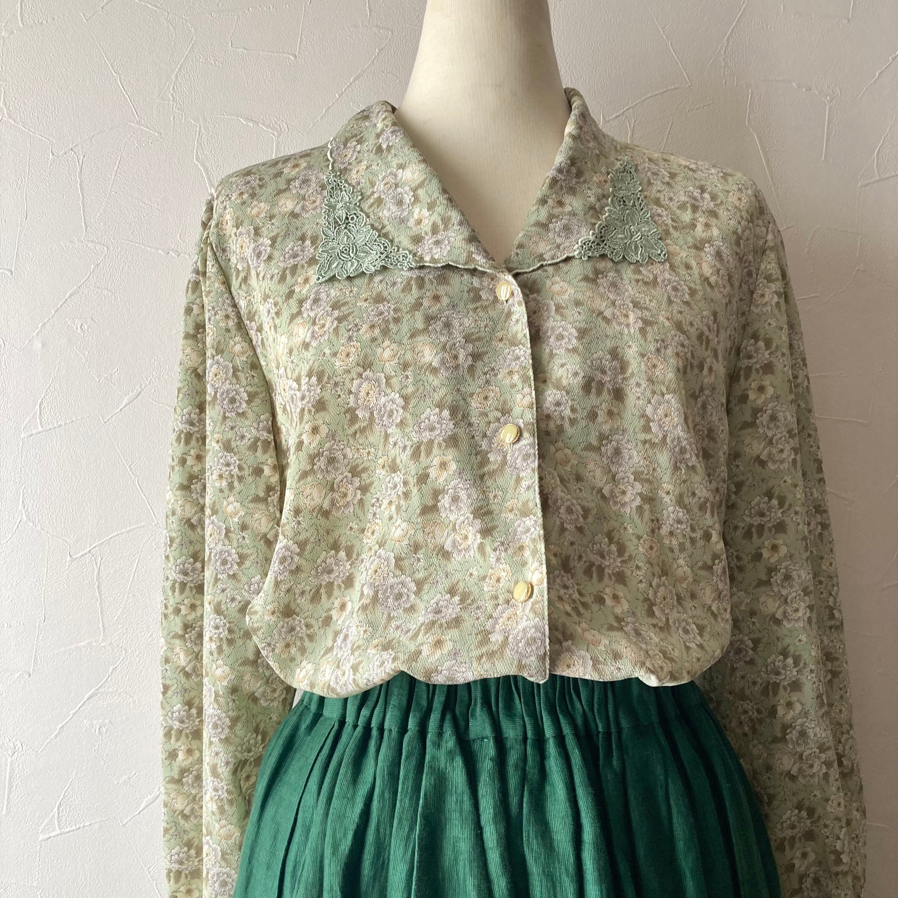 ライトグリーン花ブラウス 昭和レトロ 古着 used vintage