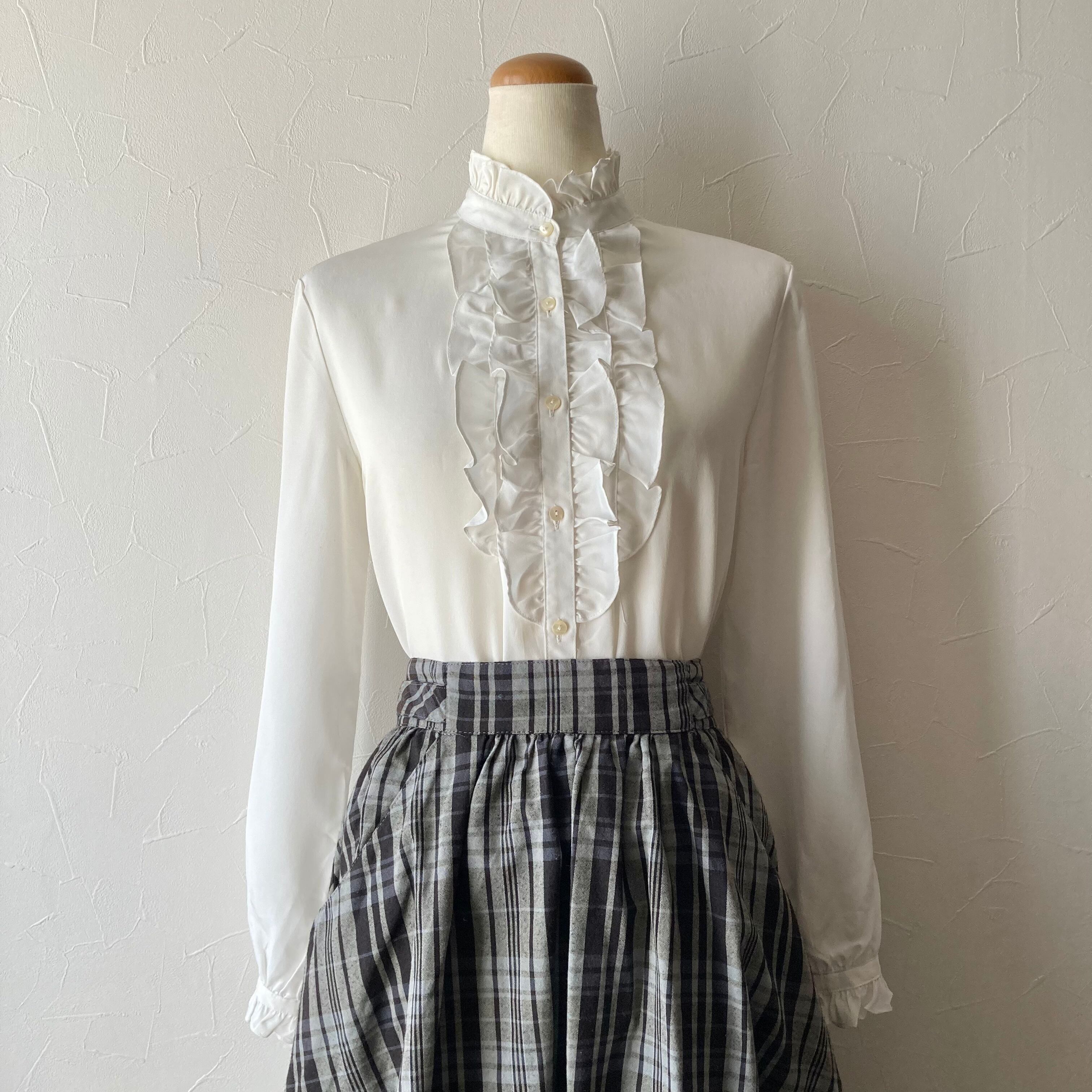 ホワイトフリルブラウス 昭和レトロ 古着 used vintage