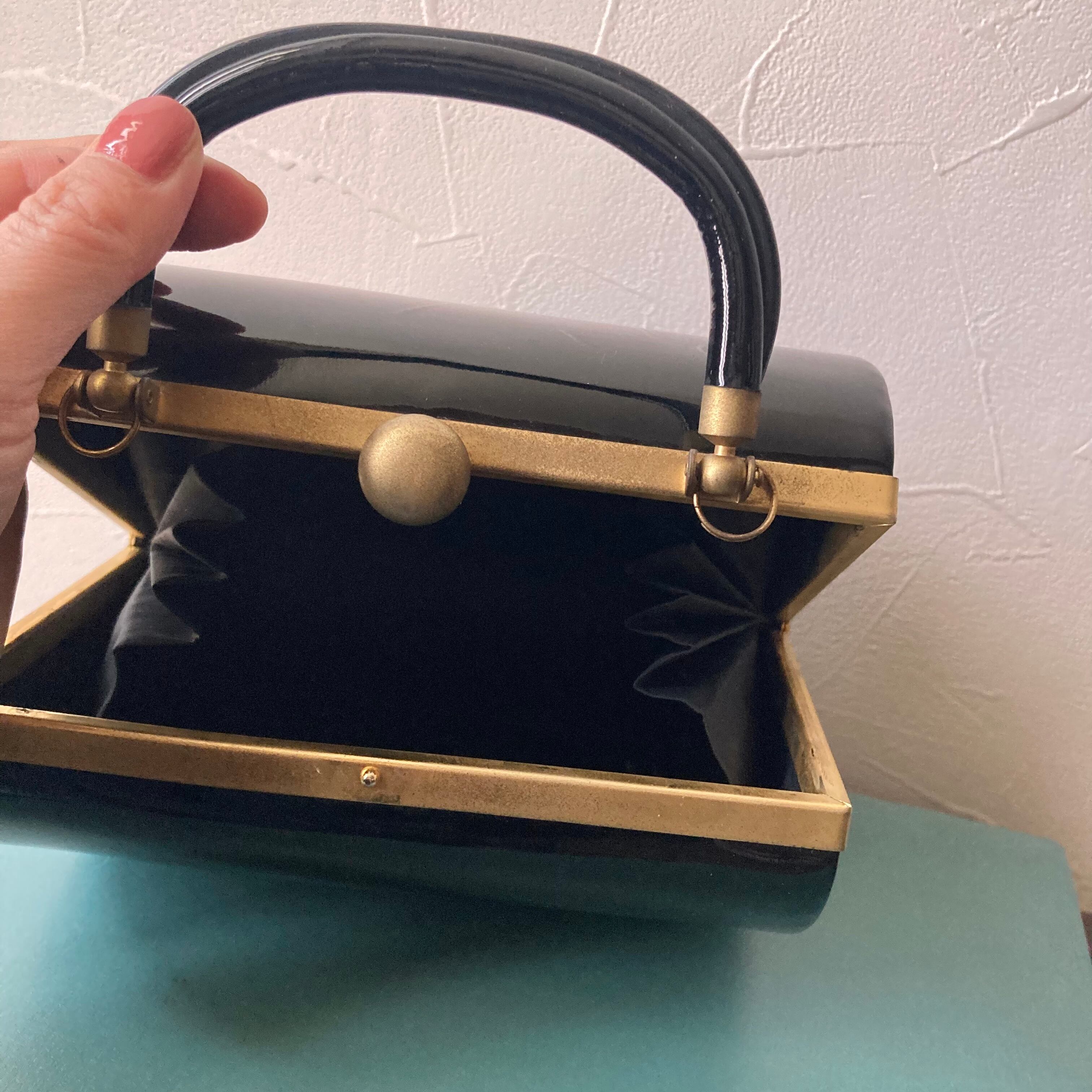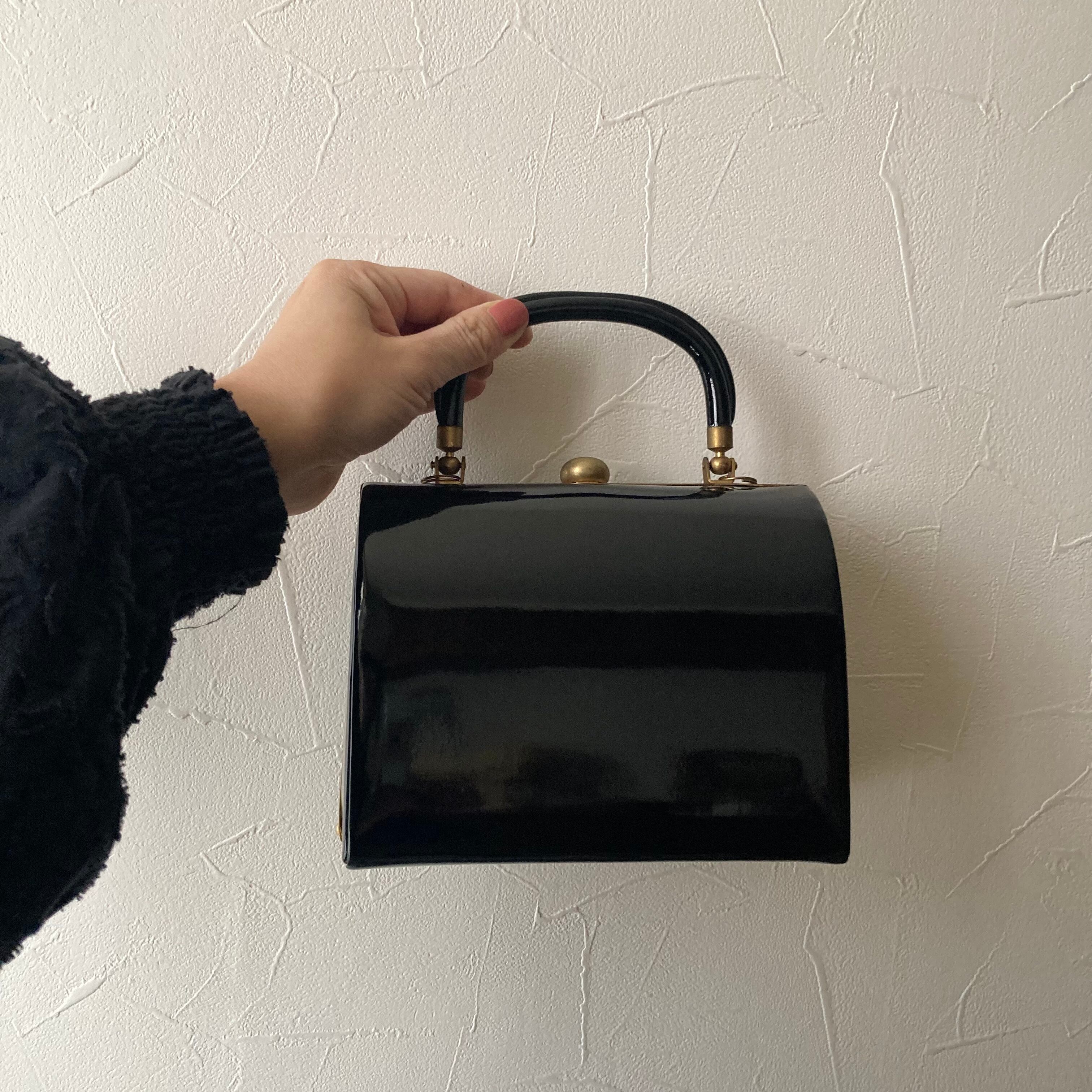 箱型の黒エナメルがモードでお洒落ながま口バッグ◯ 60sなファッションやきちんとしたお出かけなど、一つ持つだけで古着コーデがまとまるステキなアイテムです♡