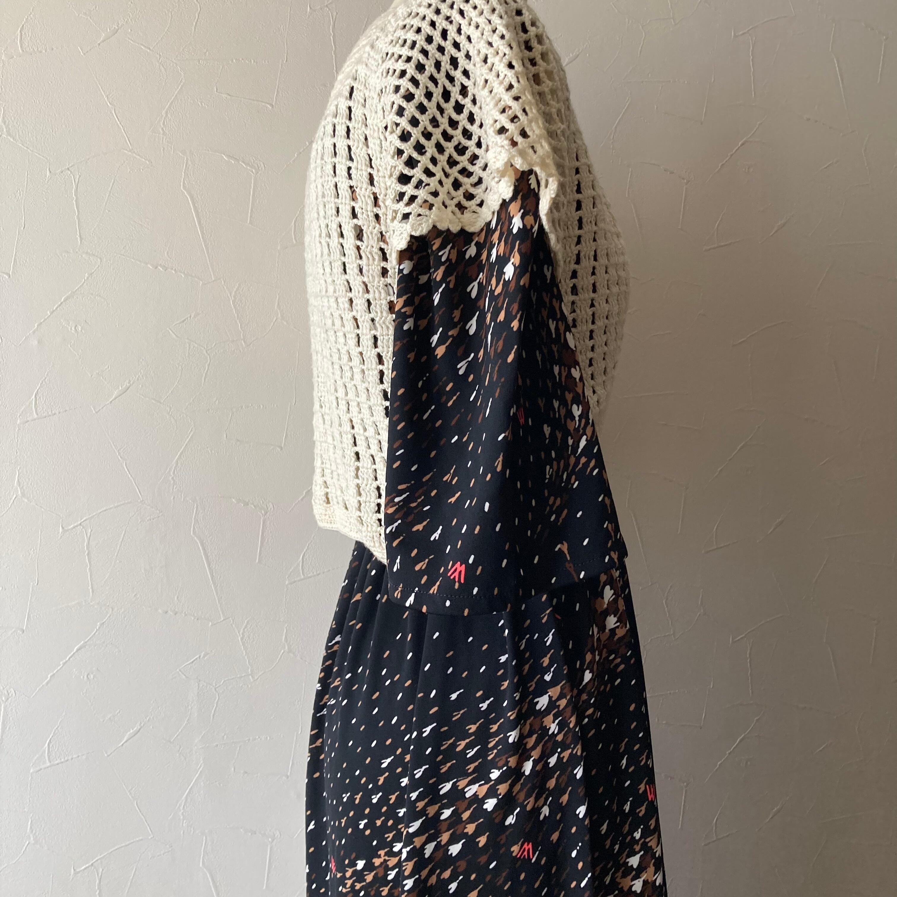 さりげなく広がる袖と短めの丈が可愛らしいボレロ◯ ノースリーブのワンピースや長袖にも、今の季節から冬まで着ていただける一枚。合わせやすいアイボリーでコーデのアクセントに可愛く活躍してくれます。